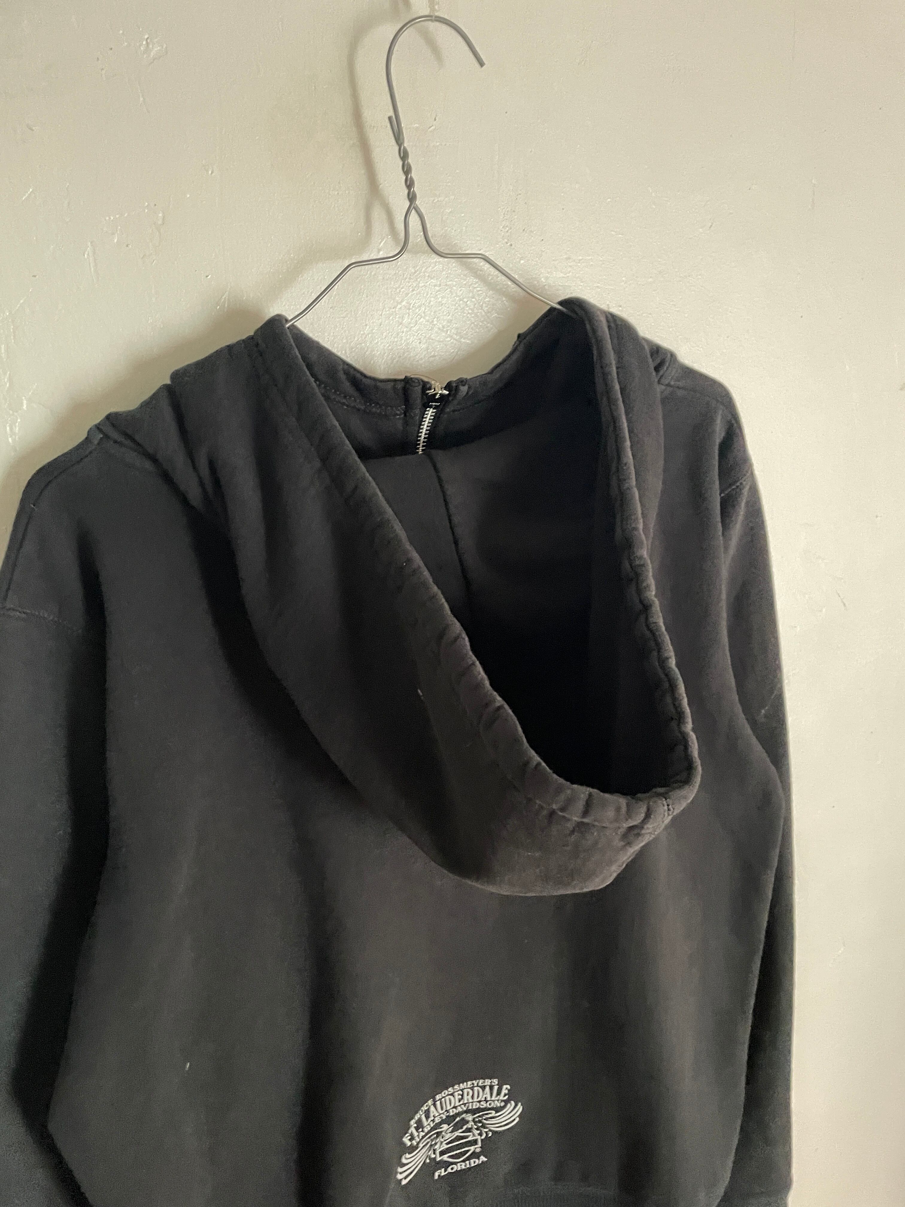 Old HARLEY-DAVIDSON Black Printed Half Zip Hoodie
