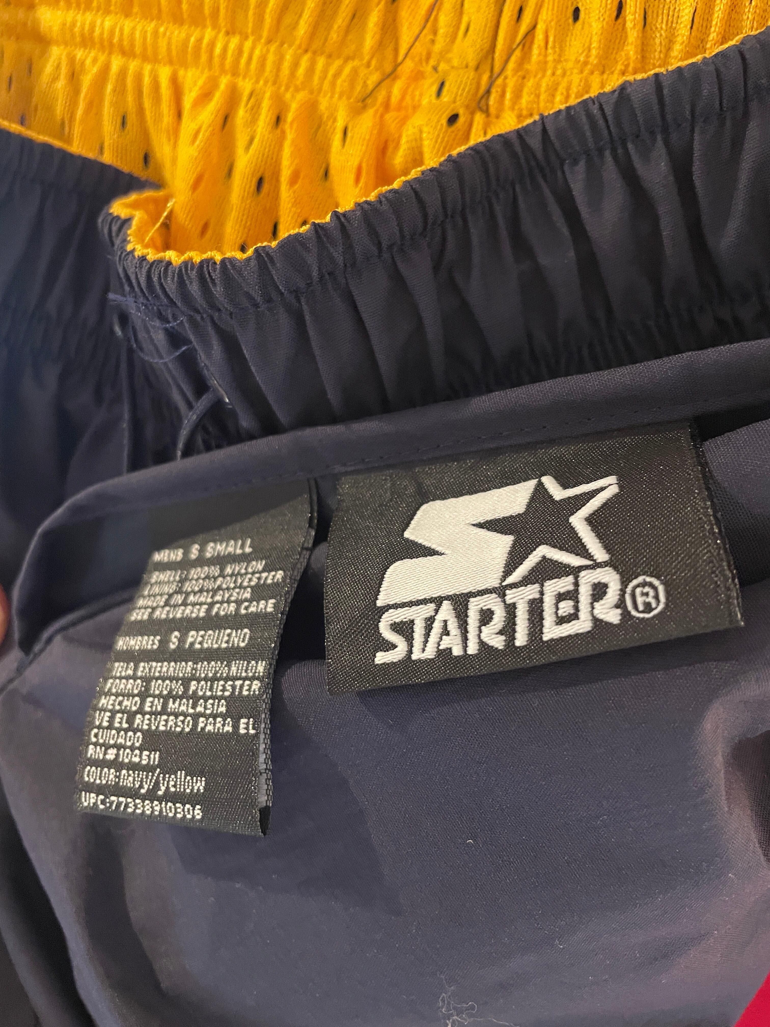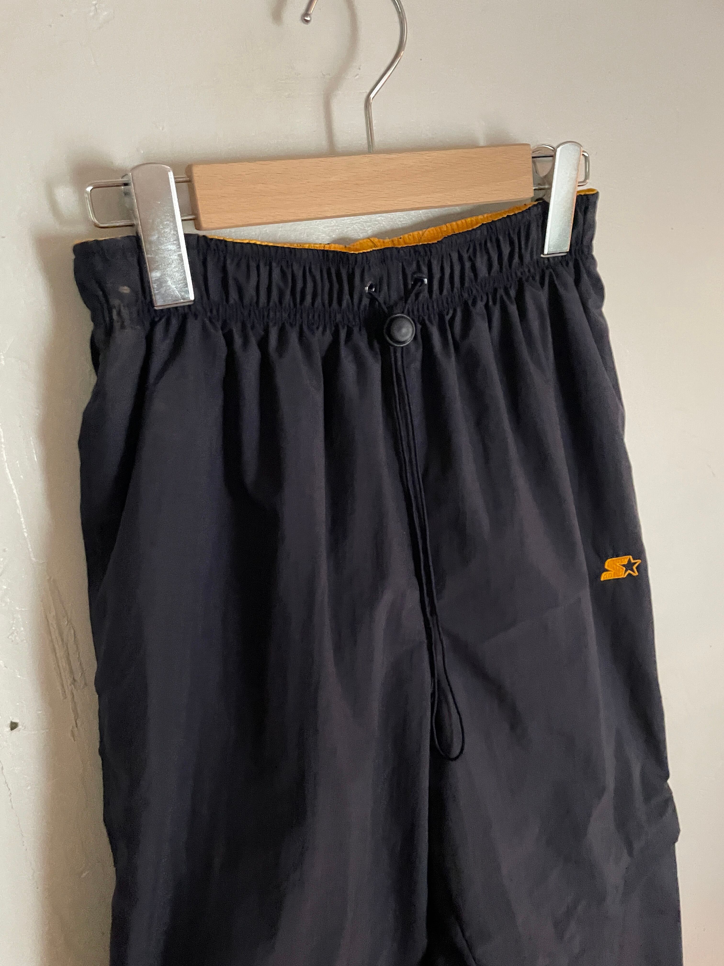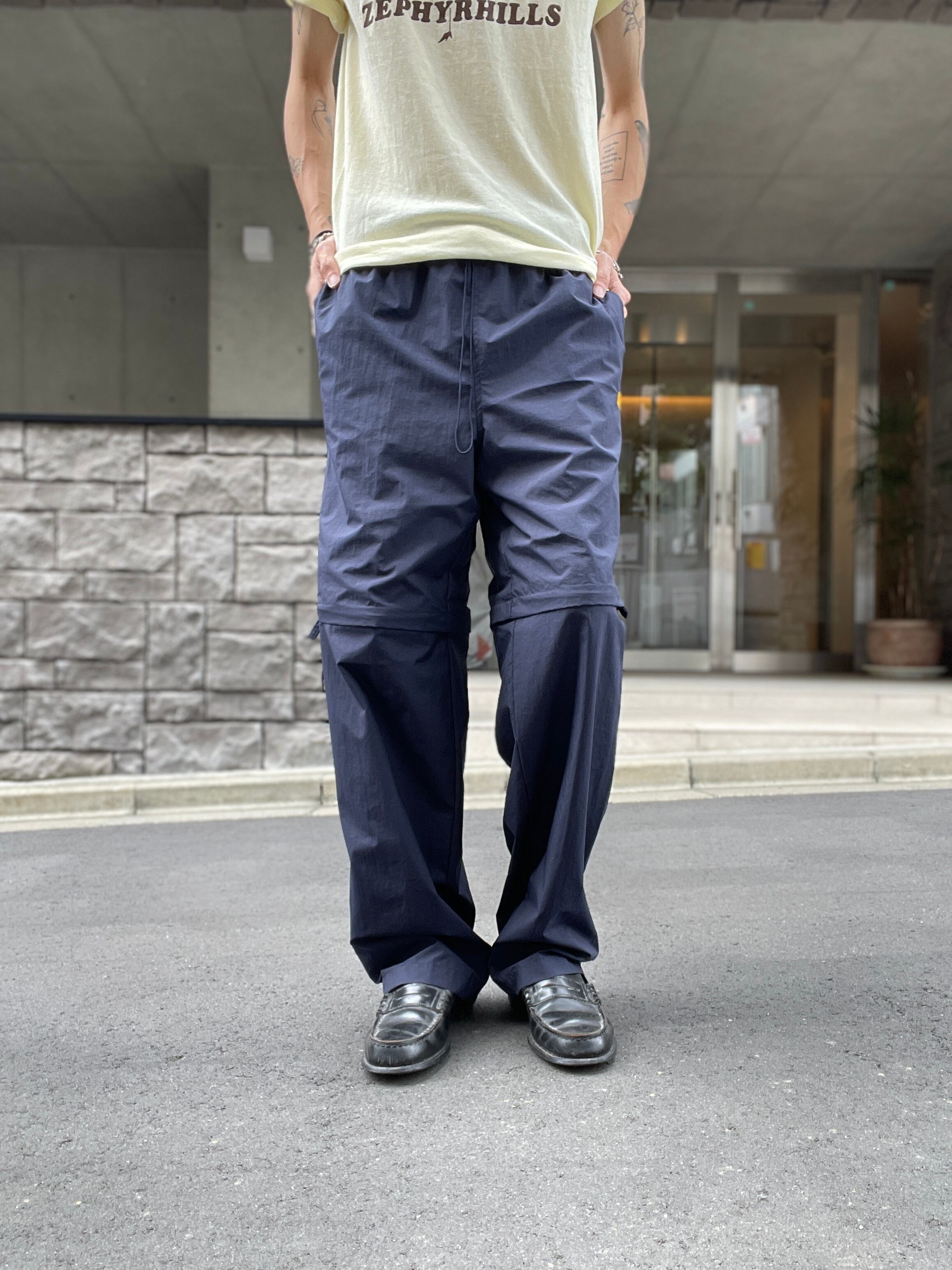ネイビーカラーで、気分によって使い分けられる2Way仕様の、スターターナイロンパンツ。膝部分にジップ付きで、ショーツとしても履けます。ショーツにする事によって、リバーシブルでも履けちゃう、機能性抜群の一本。3パターン楽しめるパンツはなかなかありませんよね。ウエスト部分にはドローコード付きで、楽に履けるのも魅力的です。男女共におすすめできるパンツです。