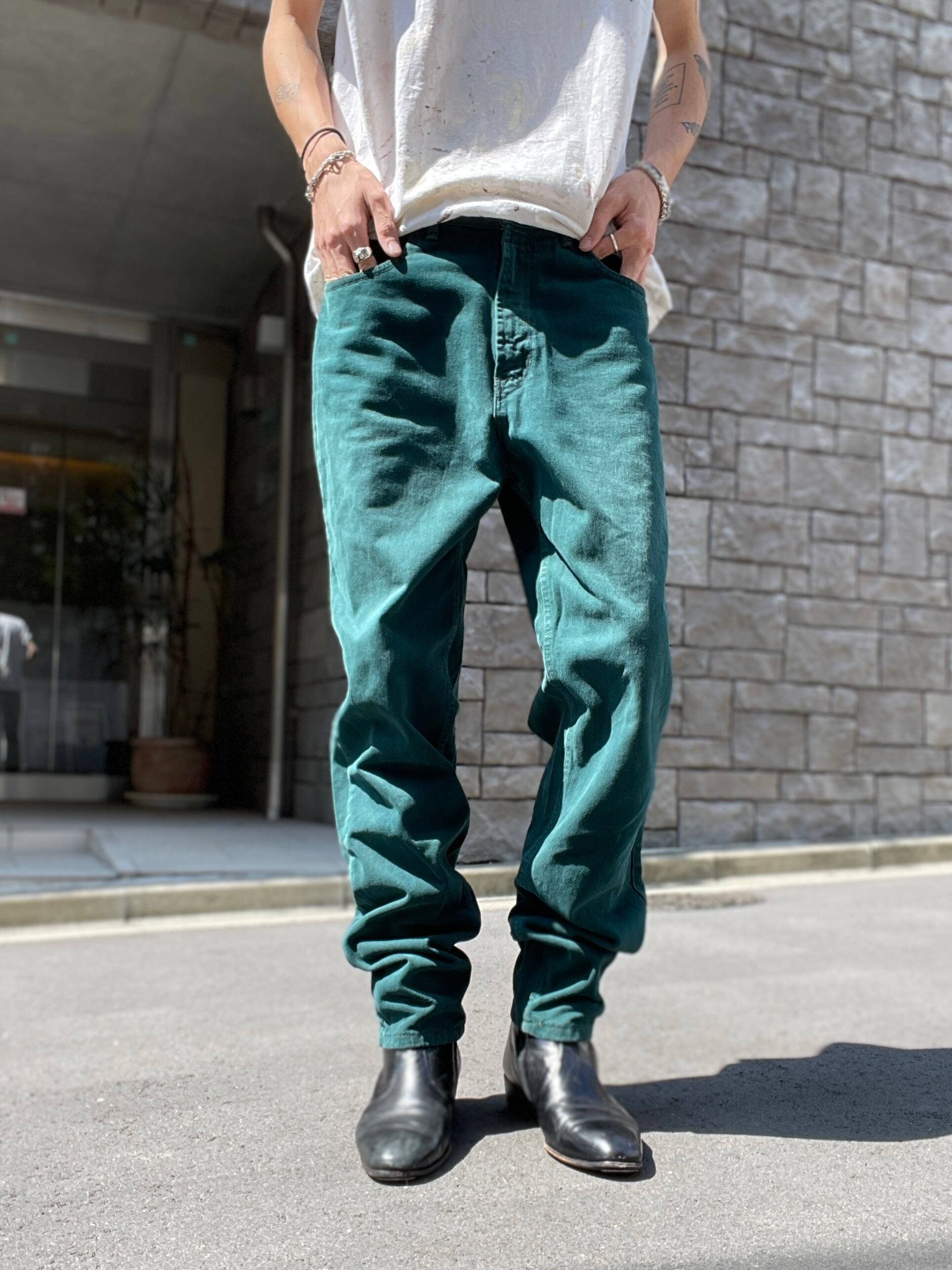 上手く後染めされたグリーンカラーが絶妙に綺麗な、ギャップのデニムパンツ。太過ぎず、細過ぎないテーパードシルエット。レングスは長めなので、靴にしっかりと溜まってくれます。こういったカラーパンツは、ファッションのバリエーションをグッと広めてくれます。USA製なのも魅力的です。
