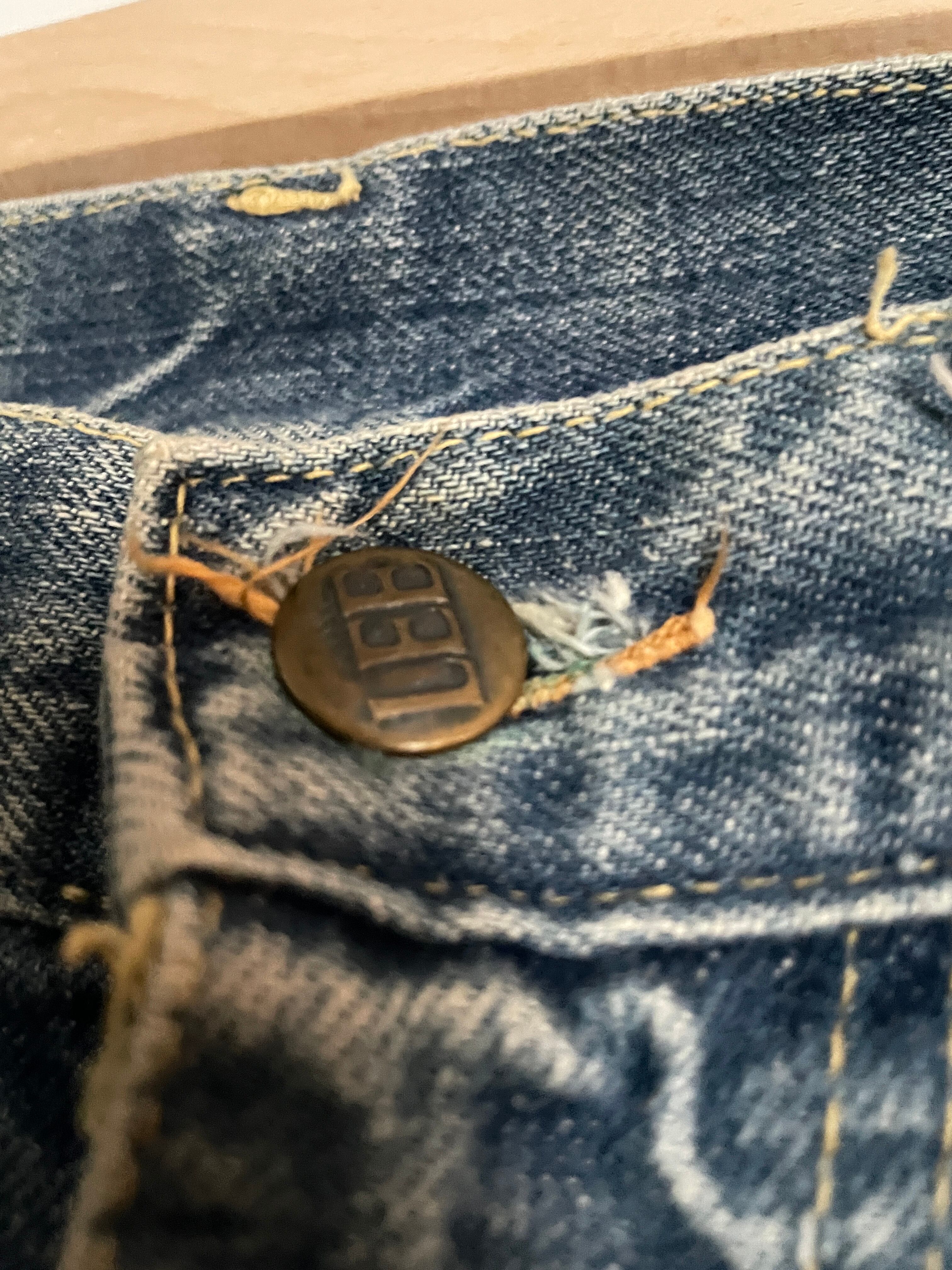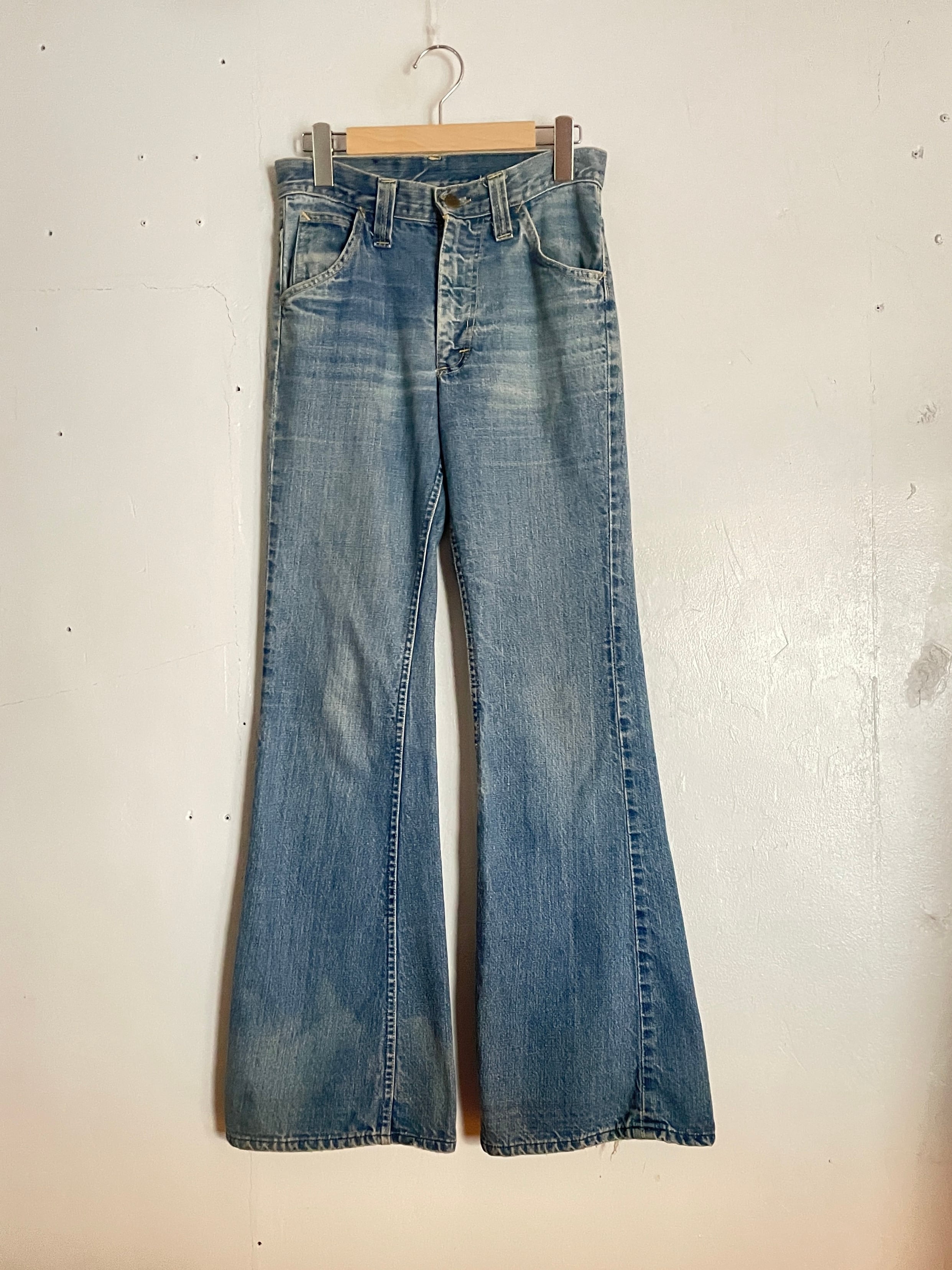 褪せ方、シルエット、どれをとっても完璧な、リーのベルボトム。タグを見ると、大文字タグで、ジップは42タロン。70年代のアイテムだという事が分かります。ローライズで、裾がベルのように広がったシルエット。まさに70年代の良さががっつりと感じられる一本です。年々高騰の激しいLEEですが、目立った汚れ、ダメージは無く、希少なアイテムかと思います。もちろんUSA製です。