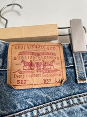 やや褪せた色味で、程良いダメージが加えられた、リーバイス517デニムパンツ。程良くフレアした綺麗なシルエットが魅力的です。W33でL31とかなり良いサイズ感。タイトめなトップスにはもちろんですが、ゆったりめのジャケットなどと合わせても、お洒落かと思います。