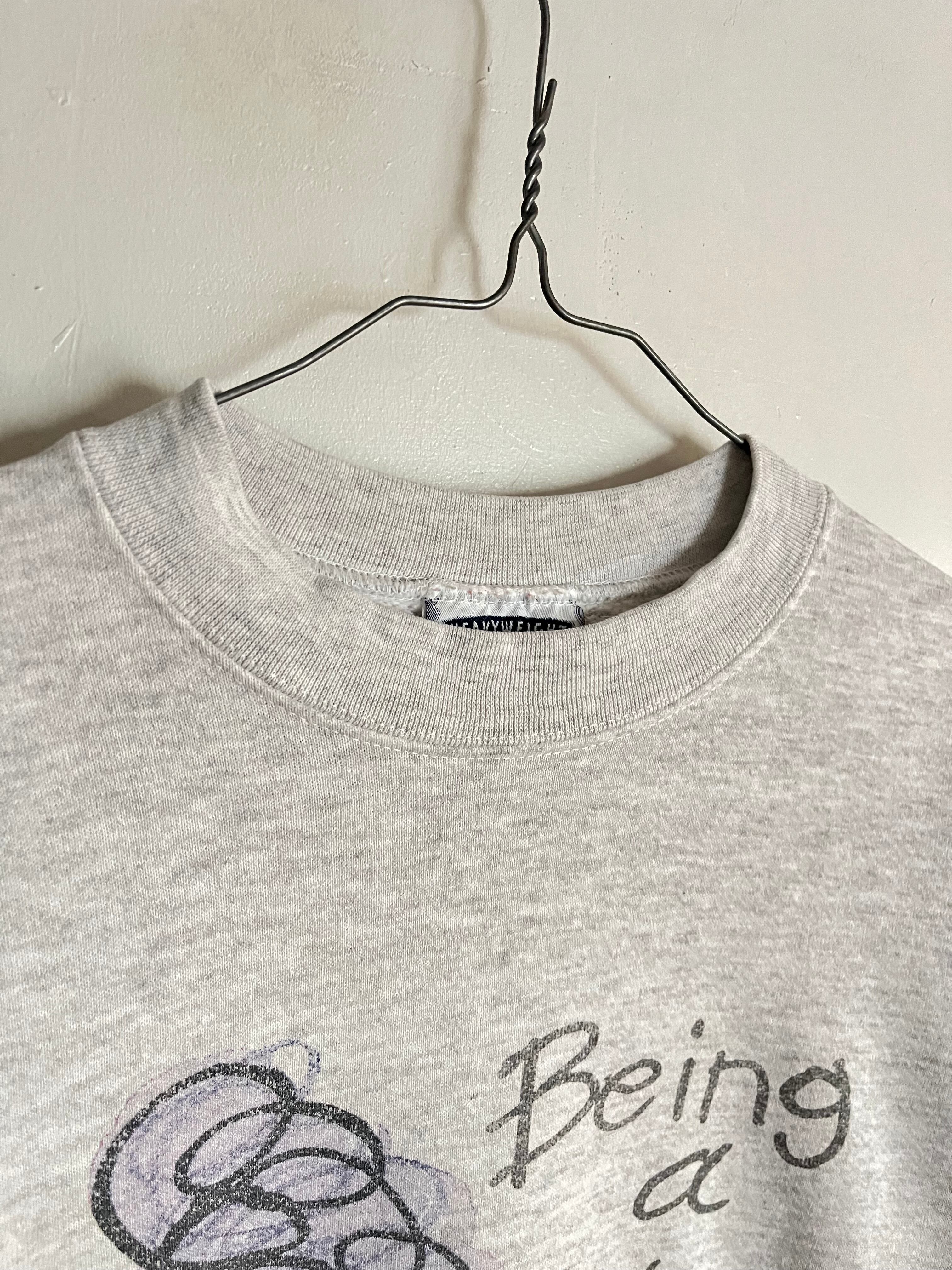 生地が厚くしっかりとしているので、これからの秋の季節にこのスエット一枚でも過ごしやすいと思います。フロントにはユニークなデザインがされており、色合いとしても紫や緑といった他の色と合わせやすくなっているため、シンプルになりがちなスエットを使ったファッションでも個性を出しやすいアイテムとなっております。