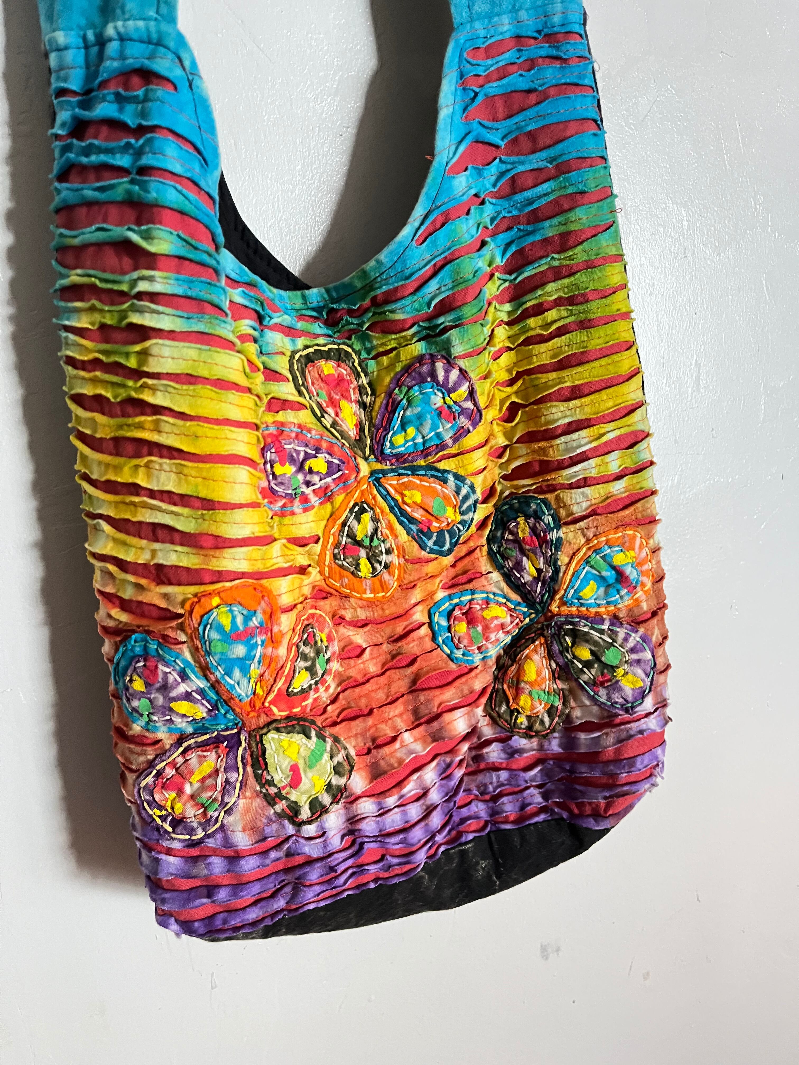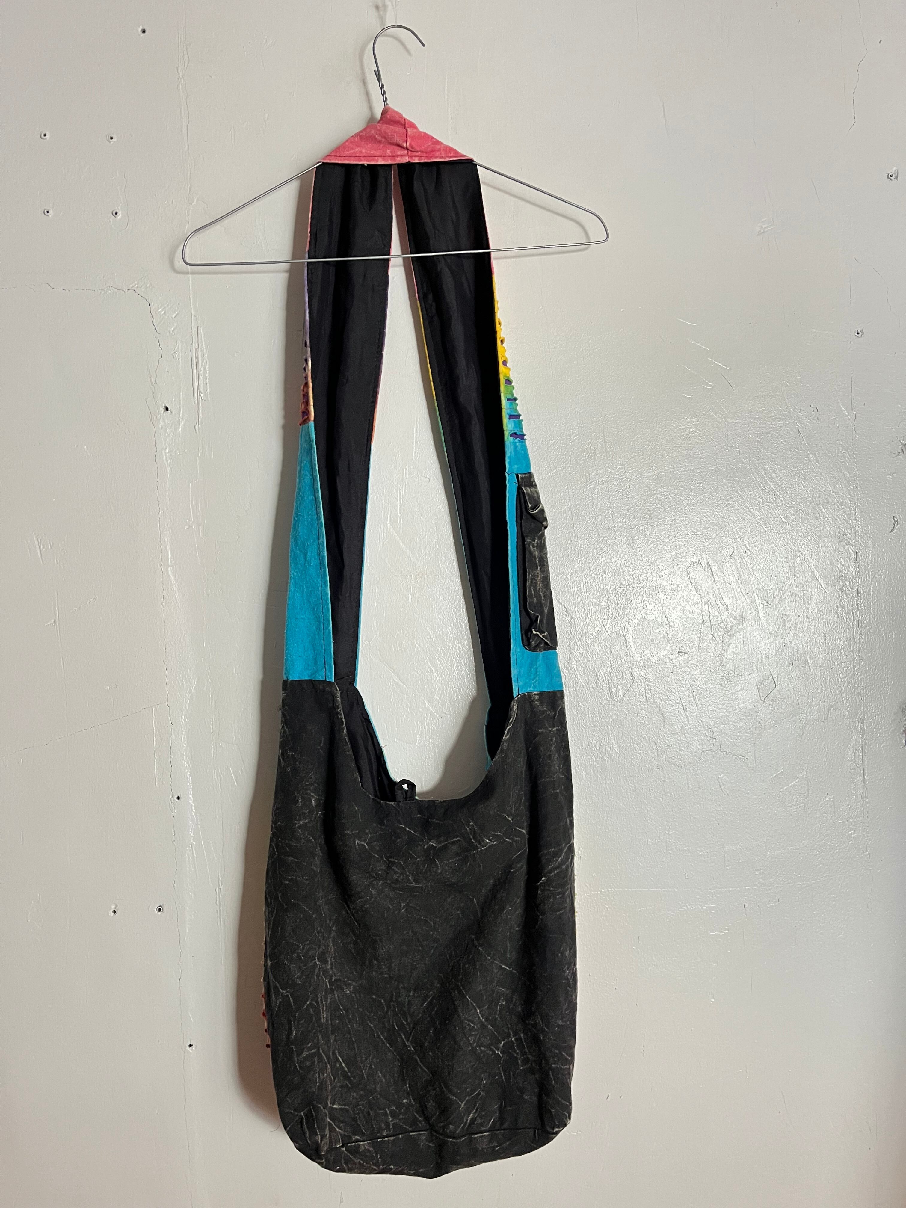 Old Multicolor Embroidered Design Zip Shoulder Bag