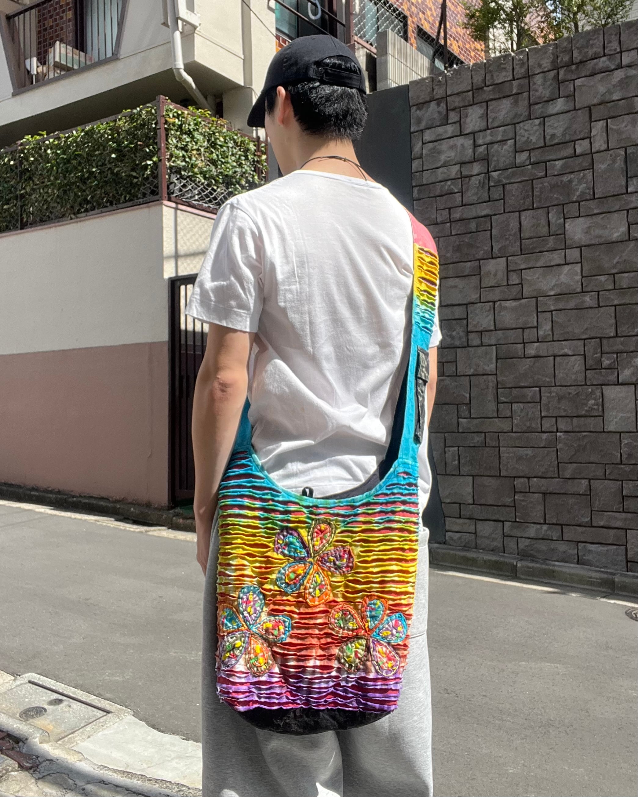 ポップな刺繍や個性のあるデザインがお洒落なショルダーバッグとなっています。切り込みがされており、少し民族のようなお花をイメージされた刺繍がポイントです。斜めがけバッグが流行っている今だからこそ誰とも被らない自分だけのバッグを持ってみてはいかがでしょうか。また、容量的にもたくさん入るので、多くの荷物を持ち歩く方におすすめです。