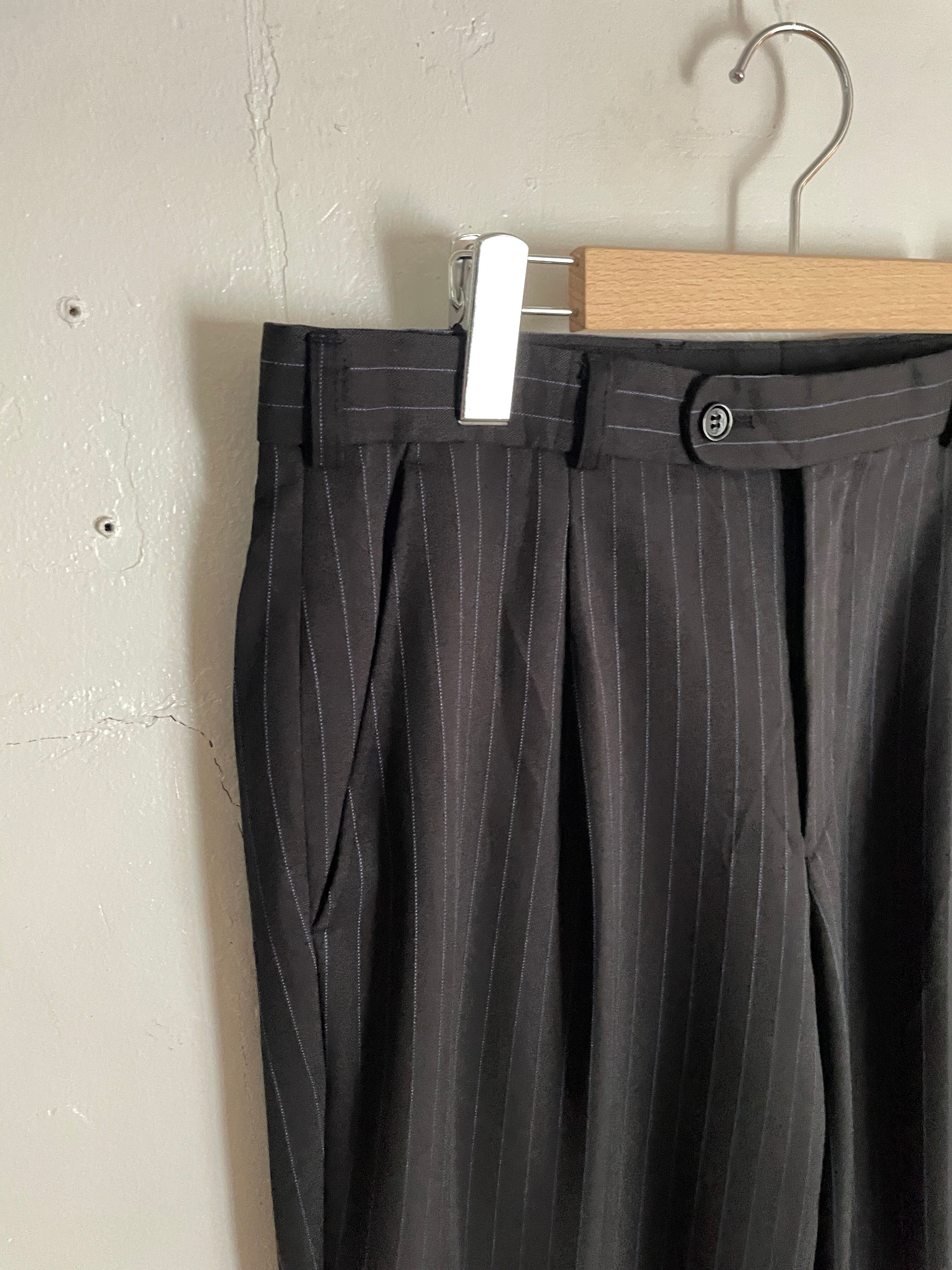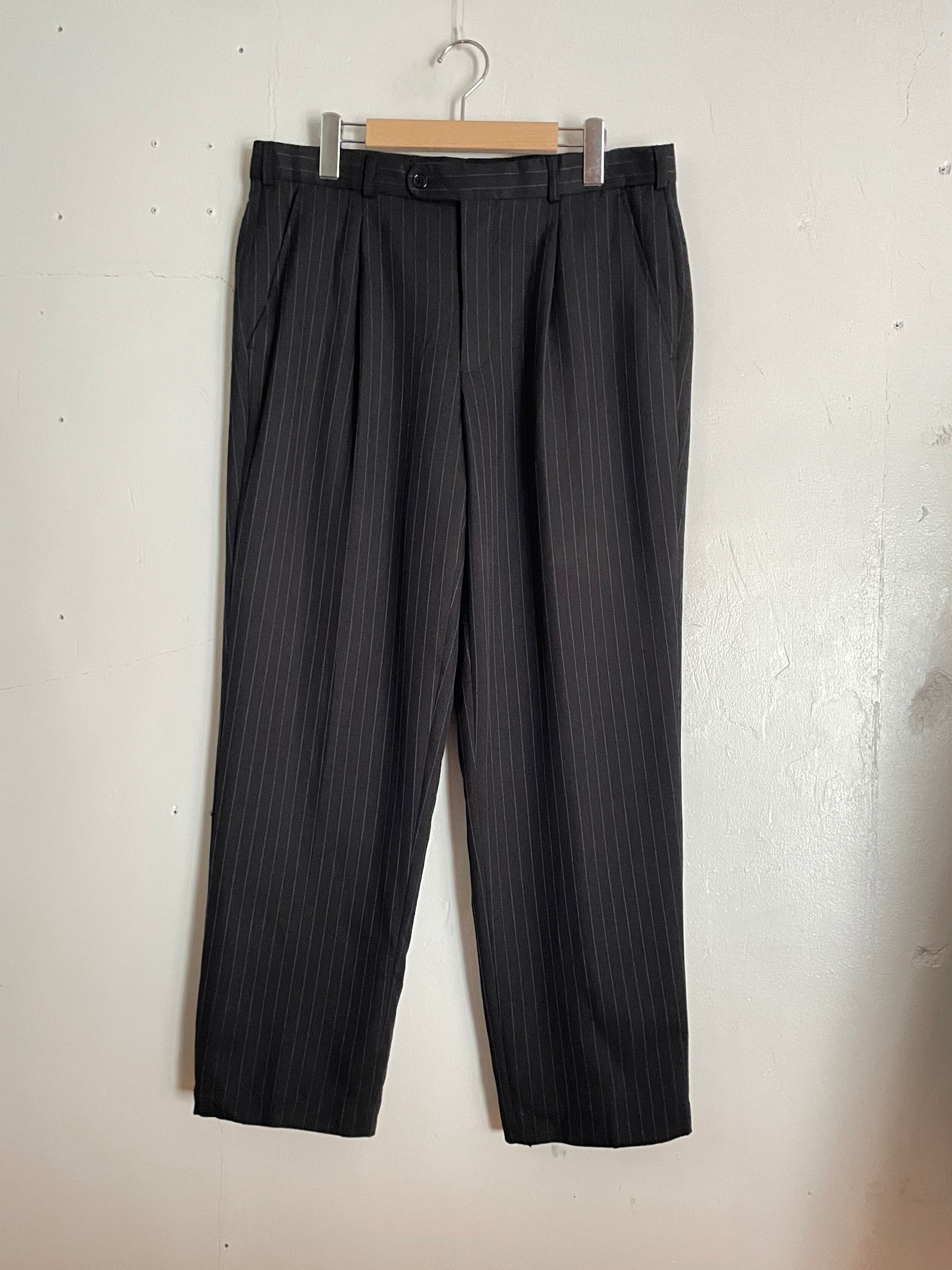 Old Duke of Dunkan Black Stripe Pattern Tack Wide Slacks