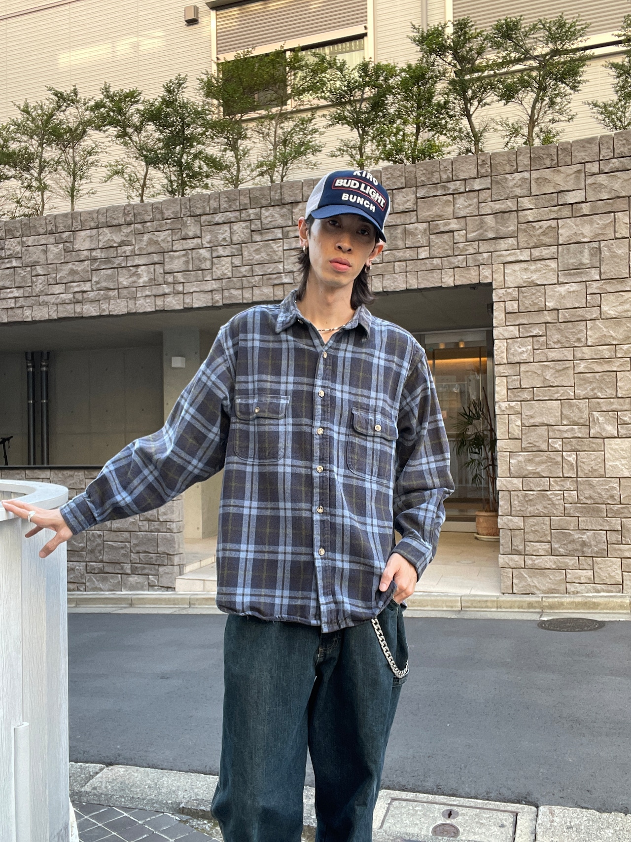 ネイビーをベースに、配色抜群のチェック柄デザインが施された、フランネルチェックシャツ。ヘビーウェイトなので、しっかりと厚みのあるコットン素材です。文句なしの配色になっています。ゆったりとしたビッグサイズで、一枚でラフに着られそうです。ストリートやアメカジなど、様々なファッションに取り入れやすい一着です。