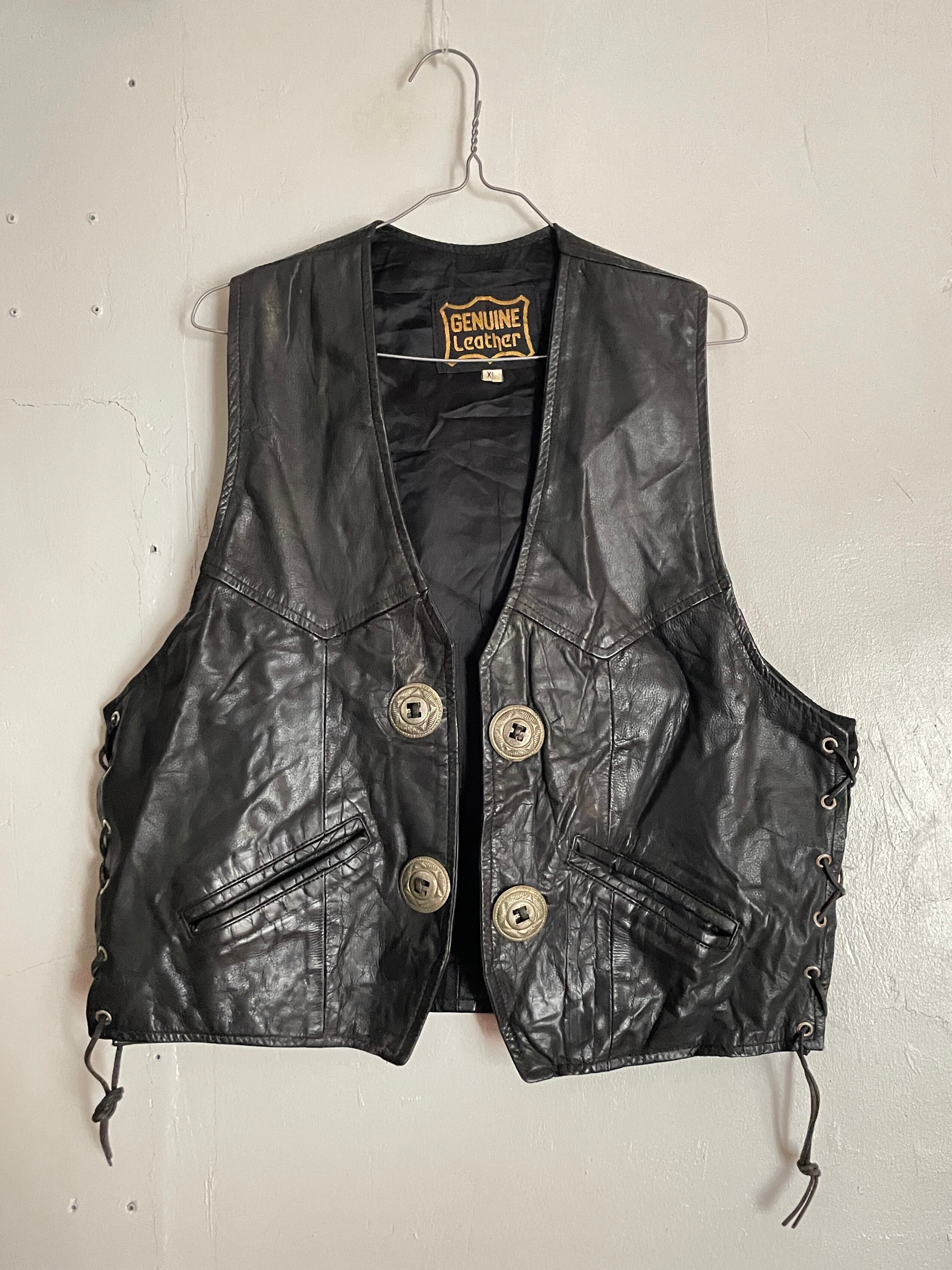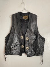Old Black Concho&Lace Up Design Leather Vest
