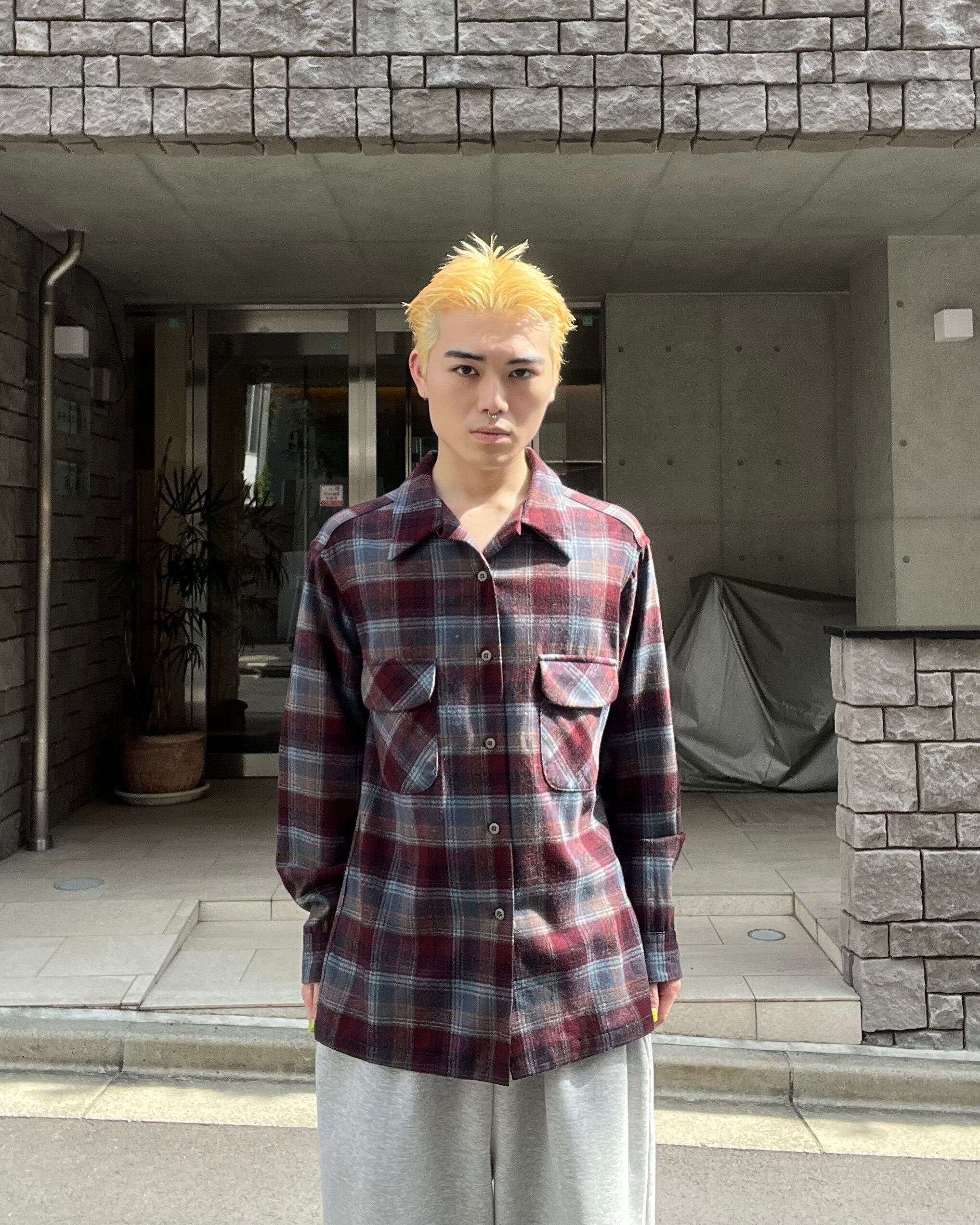 燕脂色をベースとしたチェック柄のシャツです。生地がバージンウール100%となっているので、これからの季節でもシャツ一枚で着れるアイテムとなっています。また、襟が大きなデザインとなっているので、着た時のインパクトやエレガントな印象を与えられます。