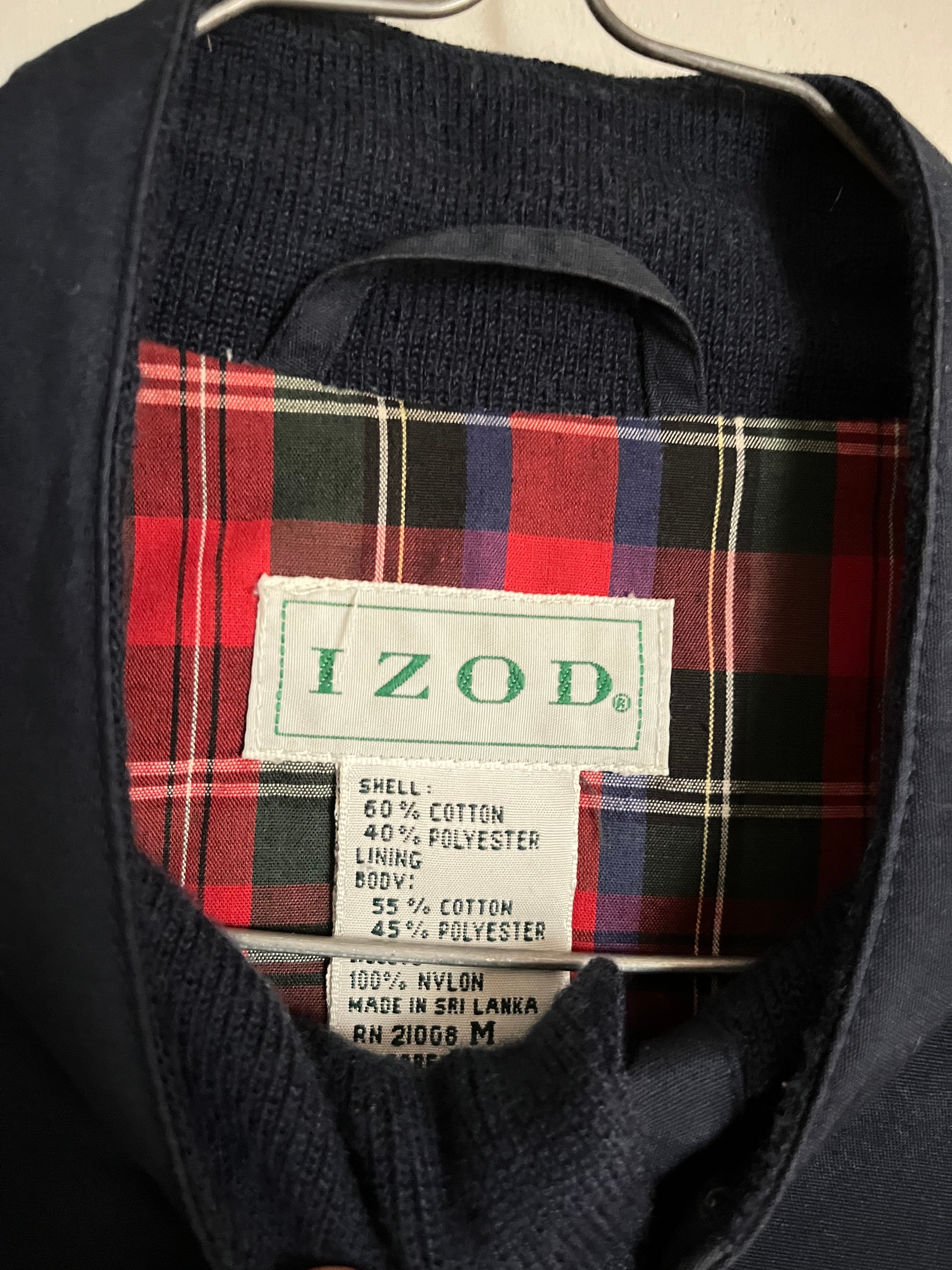 Old IZOD Navy Embroidery Design Zip Up Stand Collar Blouson