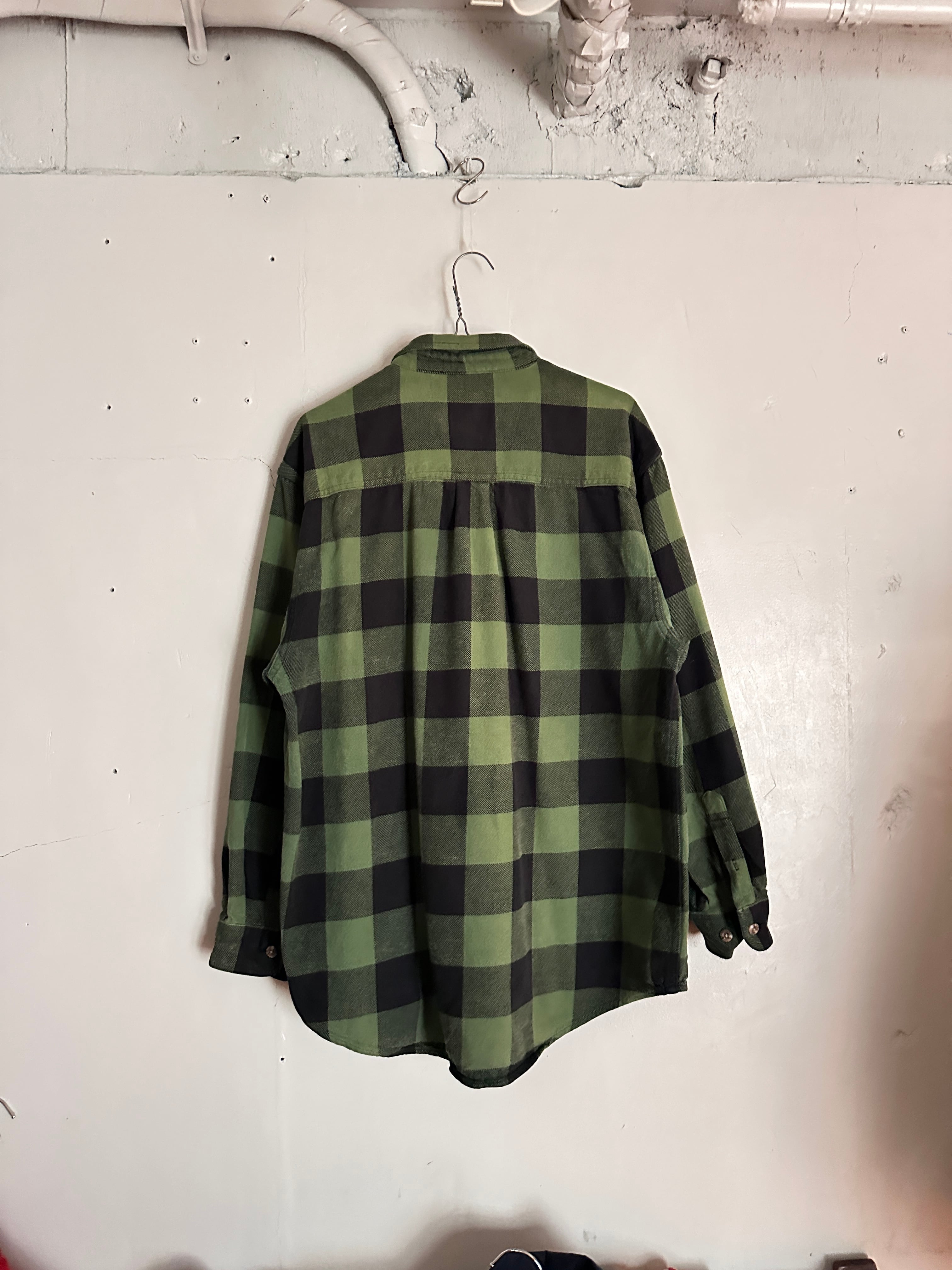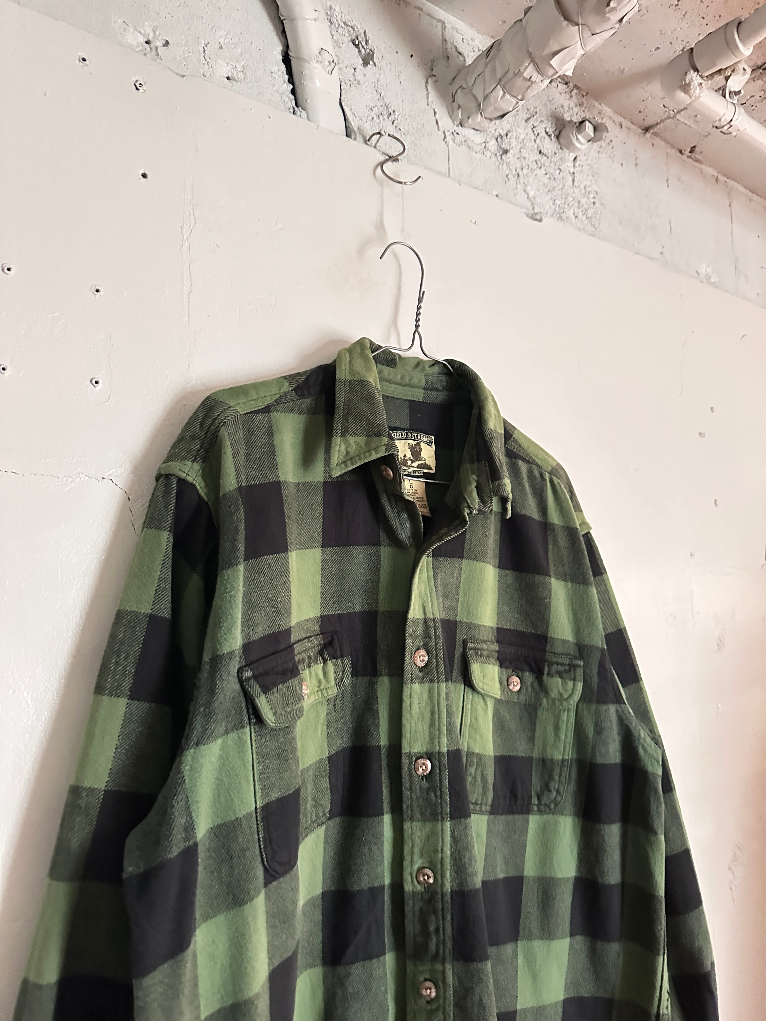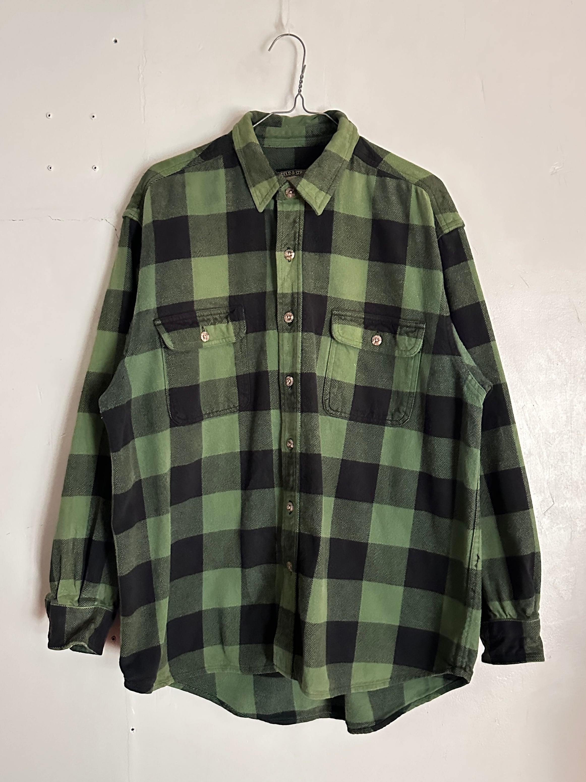 グリーンとブラックのチェックヘビーネルシャツ。秋の定番といえばネルシャツと言われるくらい人気のアイテムで、1枚で着てもインナーとして着ても充分活躍してくれます。色味がグリーンとブラックなのでストリート感があり、太めのチノやバギーデニムなどと合わせると様になります。もちろん、レザージャケットやスウィングトップなどのアウター類の中に仕込むのも、首元のアクセントになるのでおすすめです。