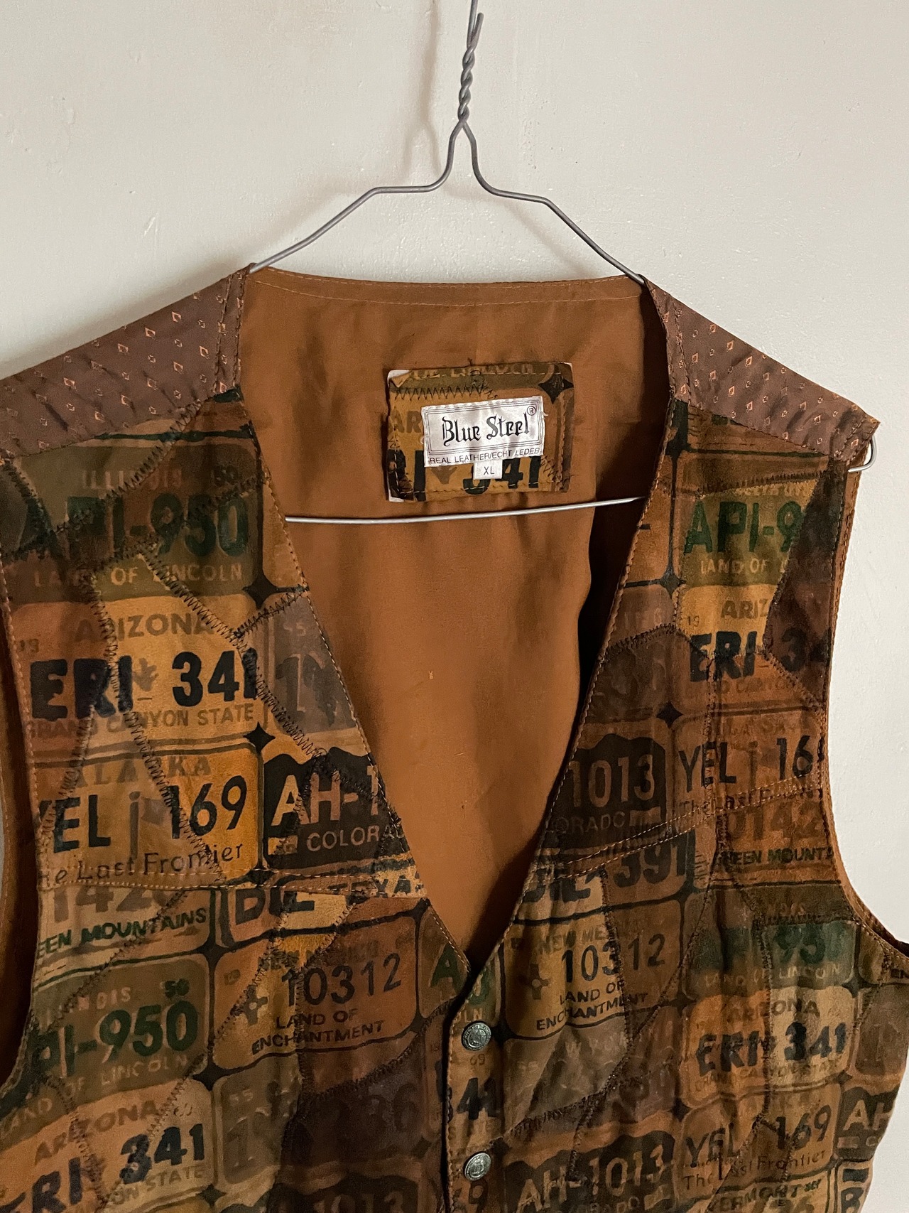Old Blue Steel Number Plate Pattern Suede Leather Swiching Vest