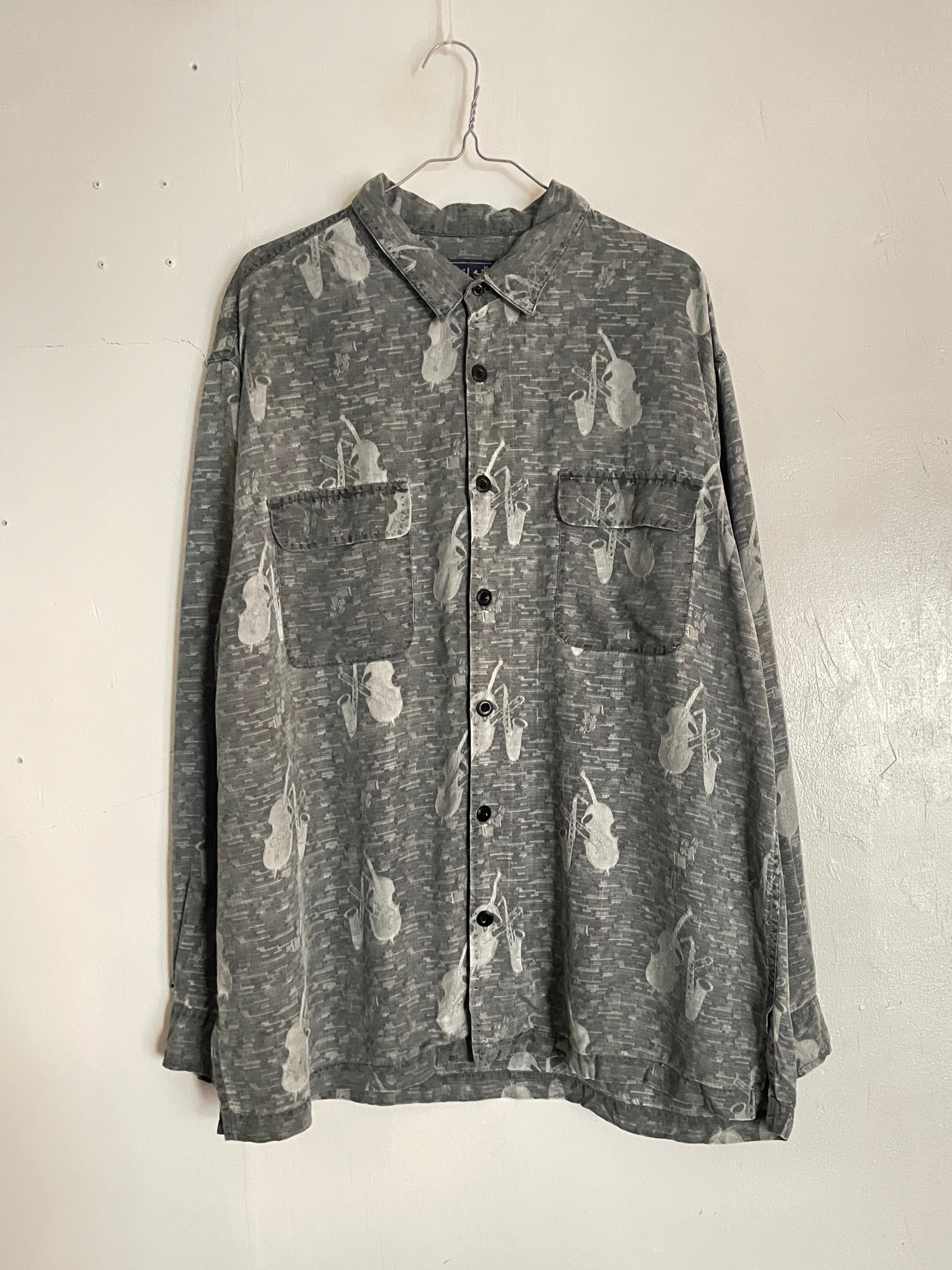 Old Nat Nast Gray Instrument Pattern Silk L/S Shirt