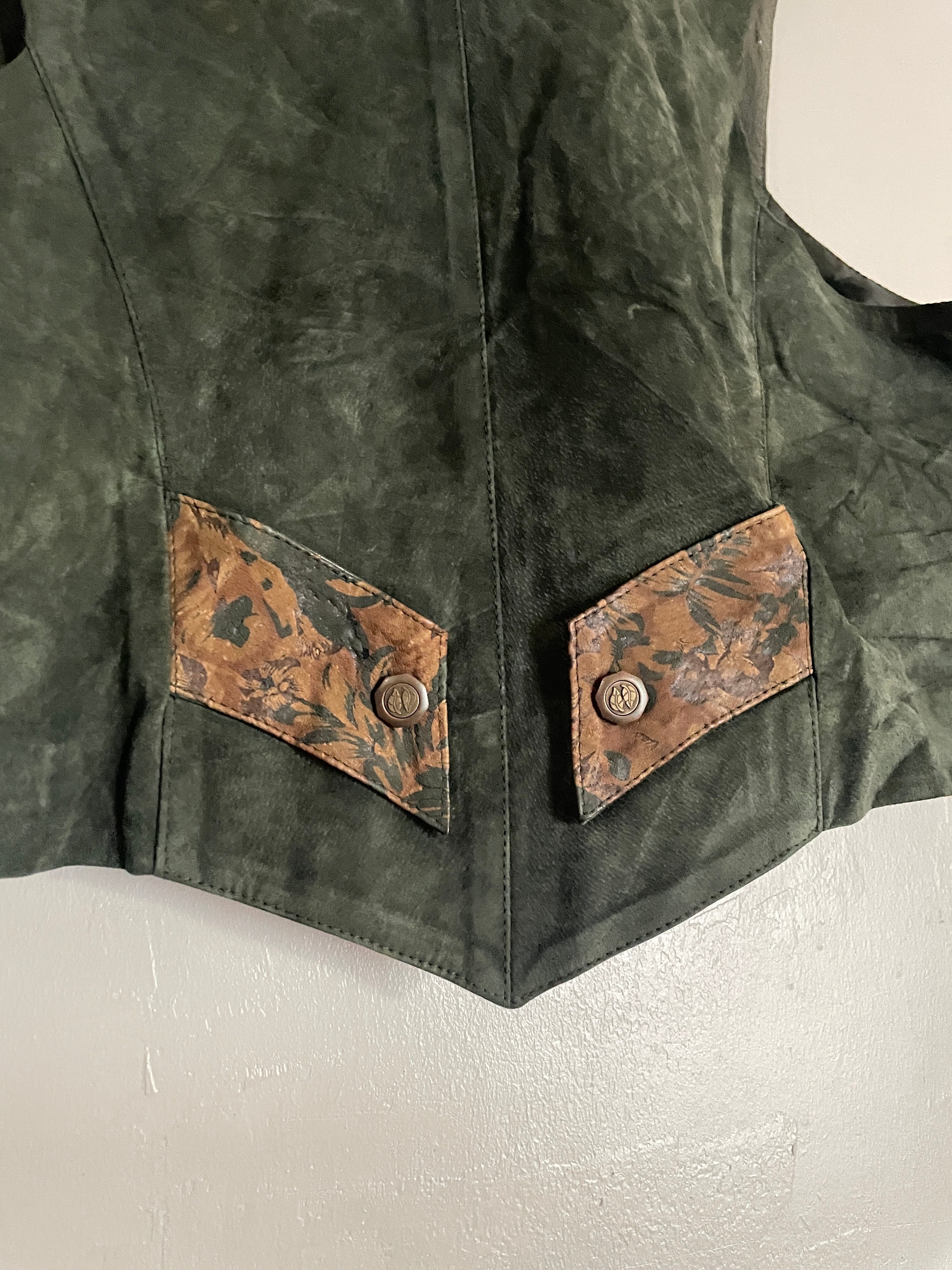 Old Green×Flower Pattern Swiching Design Leather Vest