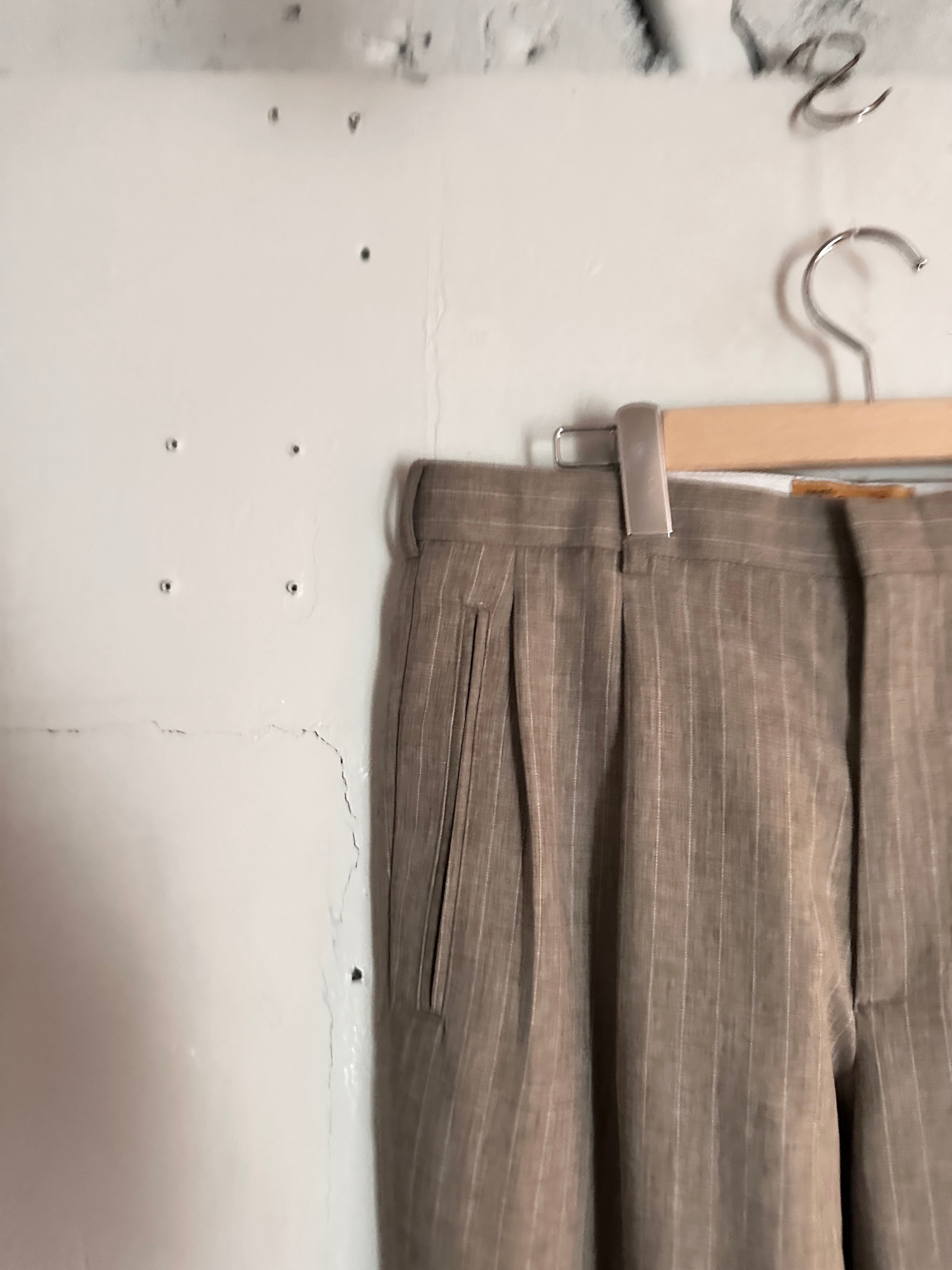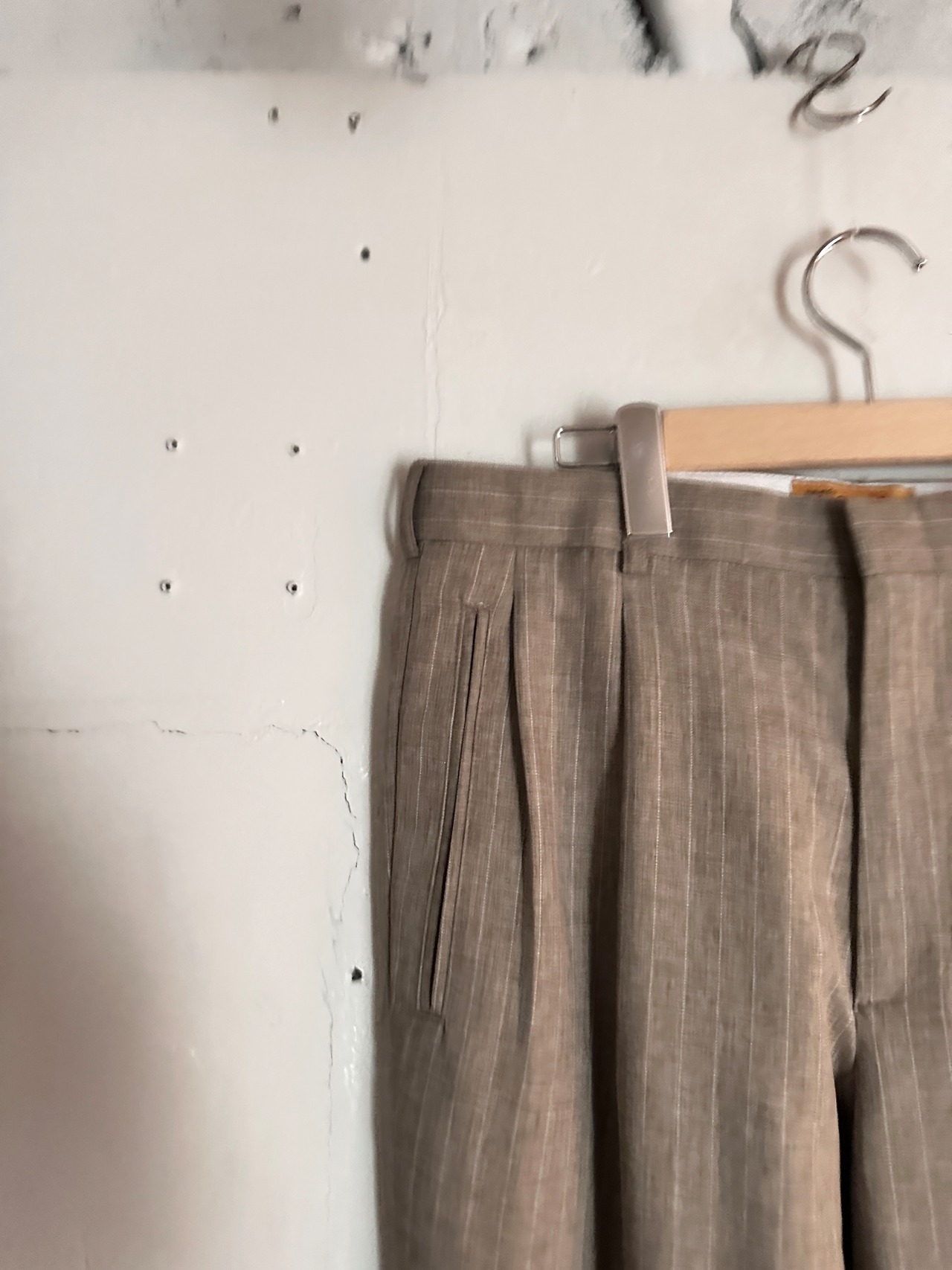 シンプルなベージュのスラックス。ややフレアなシルエットで、秋の綺麗めなスタイリングに最適なスラックスです。テーラードジャケットやレザージャケット、ローファーやブーツなどと相性が良く、デニムとは違ったスタイリングをお楽しみいただけます。秋のボトムスに迷っている方にはぜひ手に取っていただきたいアイテムです。
