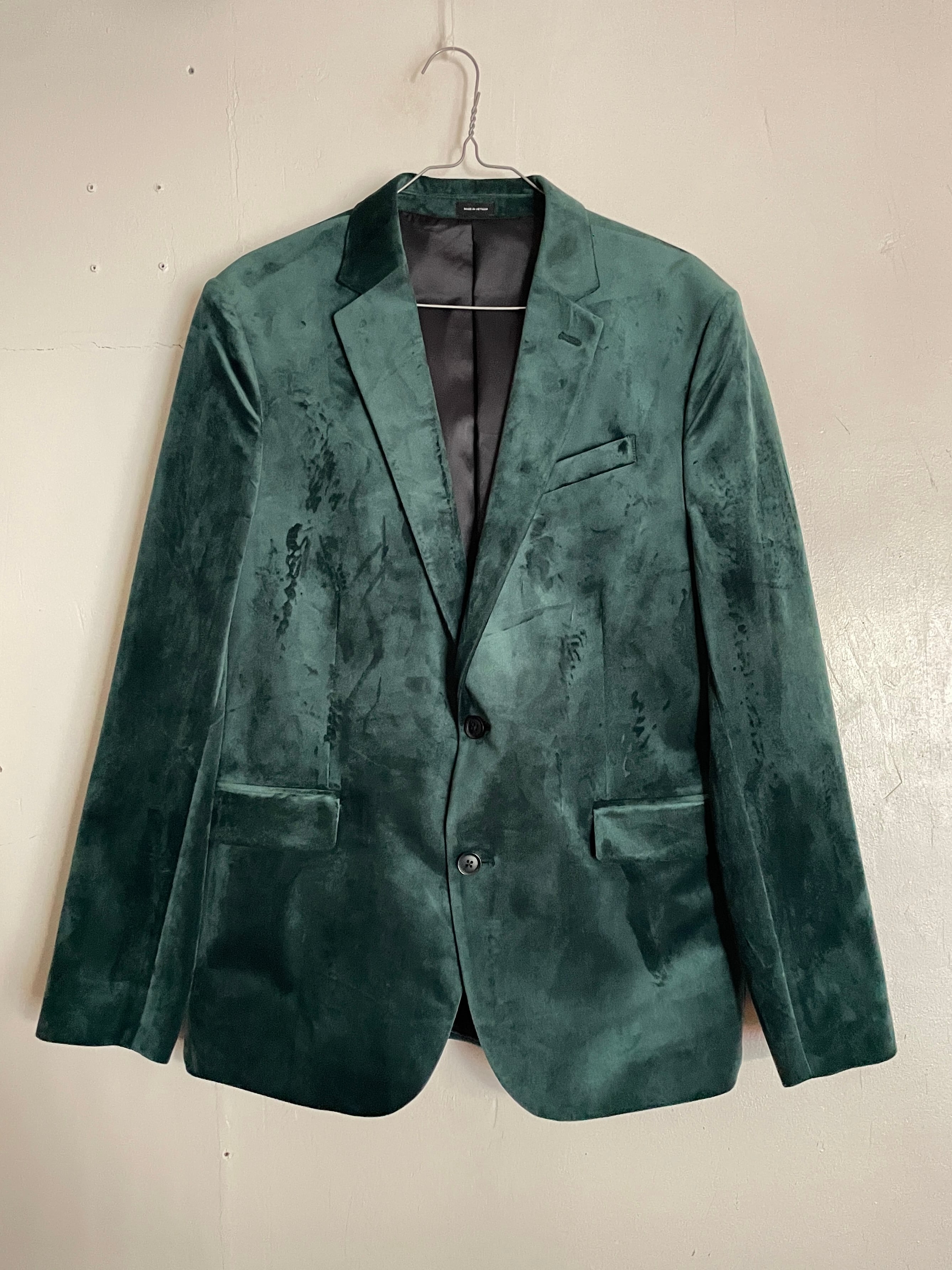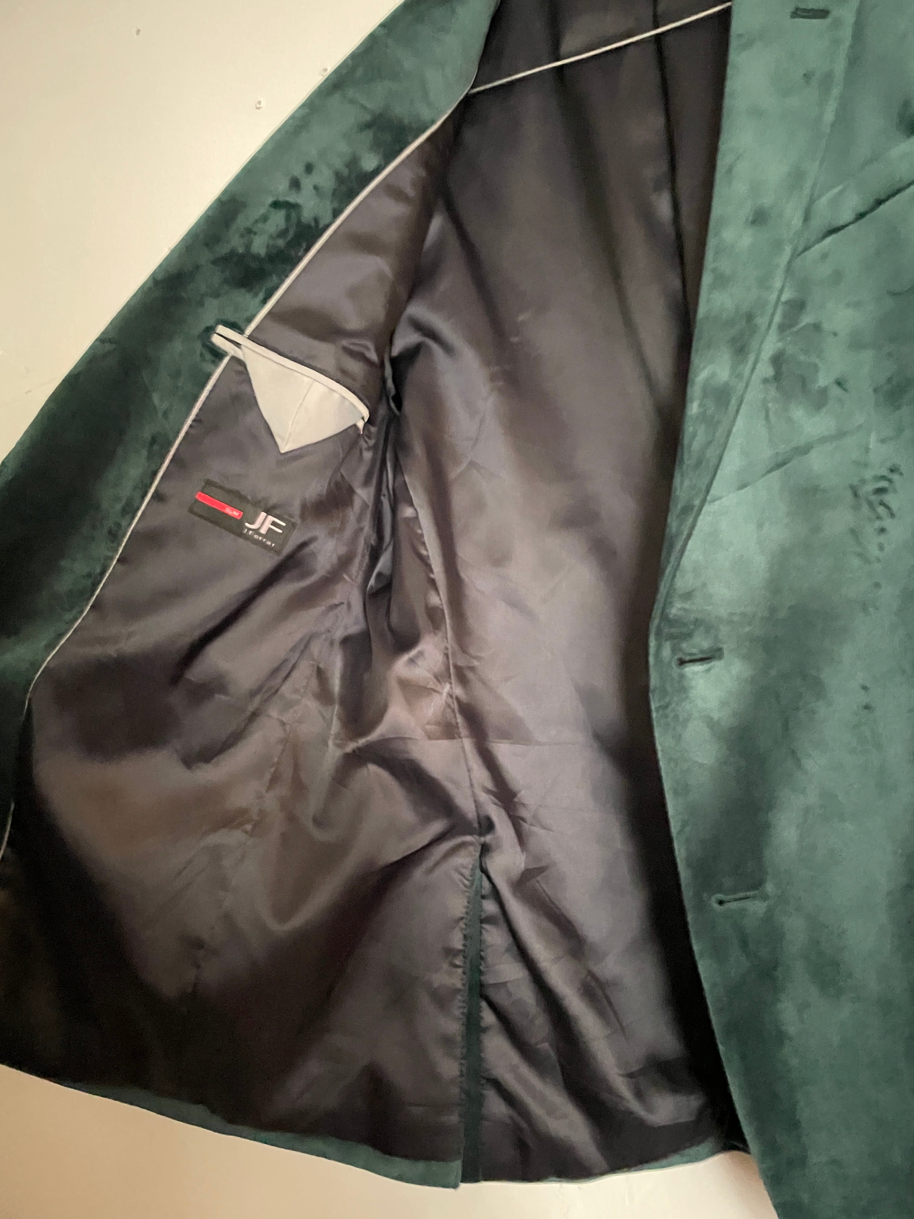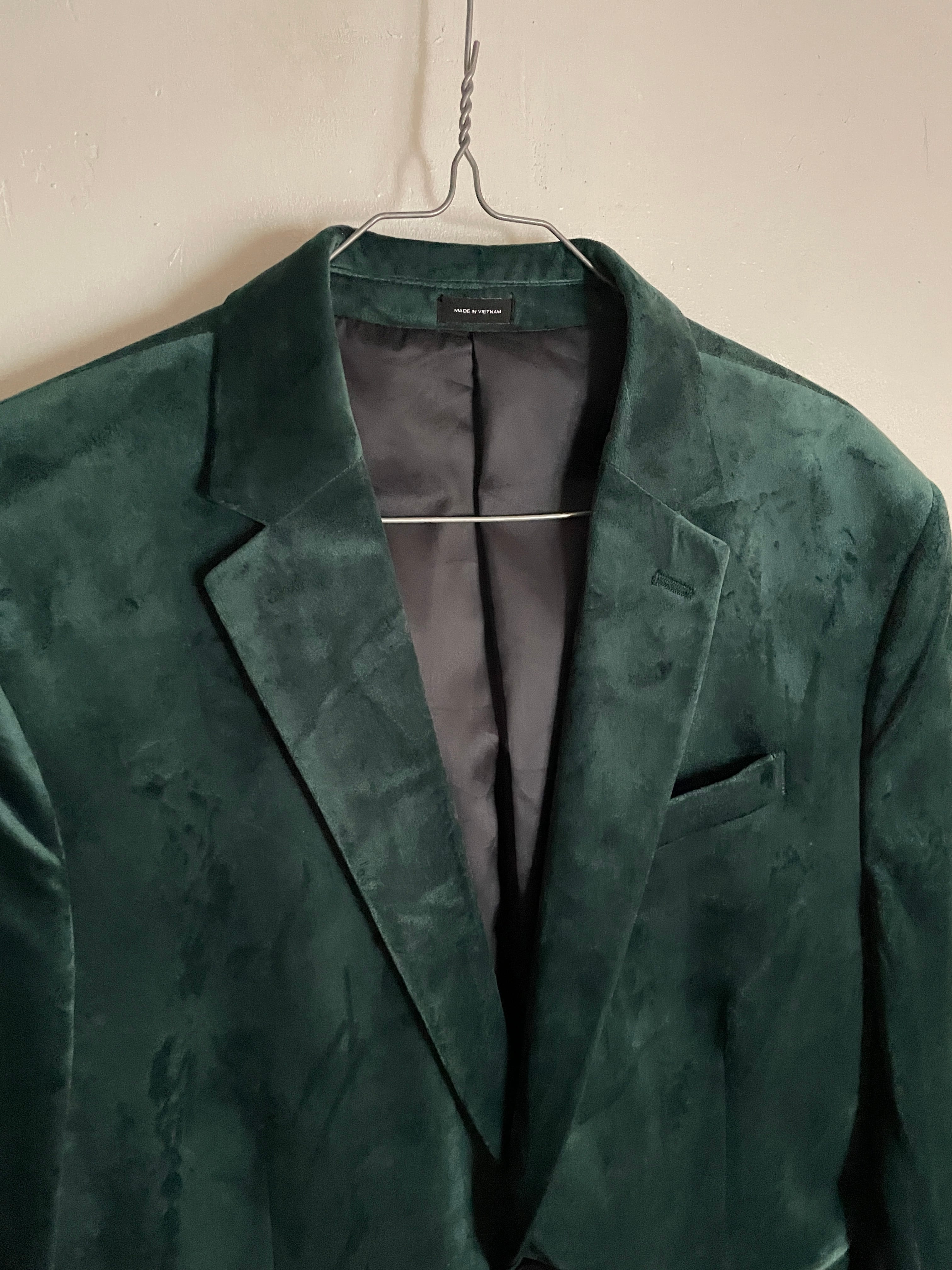 艶のある綺麗なグリーンボディが、魅力的な、ベロアテーラードジャケット。上品で高級感溢れるディテールになっています。間違いなくオーラの出る一着かと。触り心地抜群のベロアで、裏地はサラッとしたポリ素材。縦長の綺麗なシルエットです。秋ファッションの主役になる事間違いなしのグッドなアイテムです。