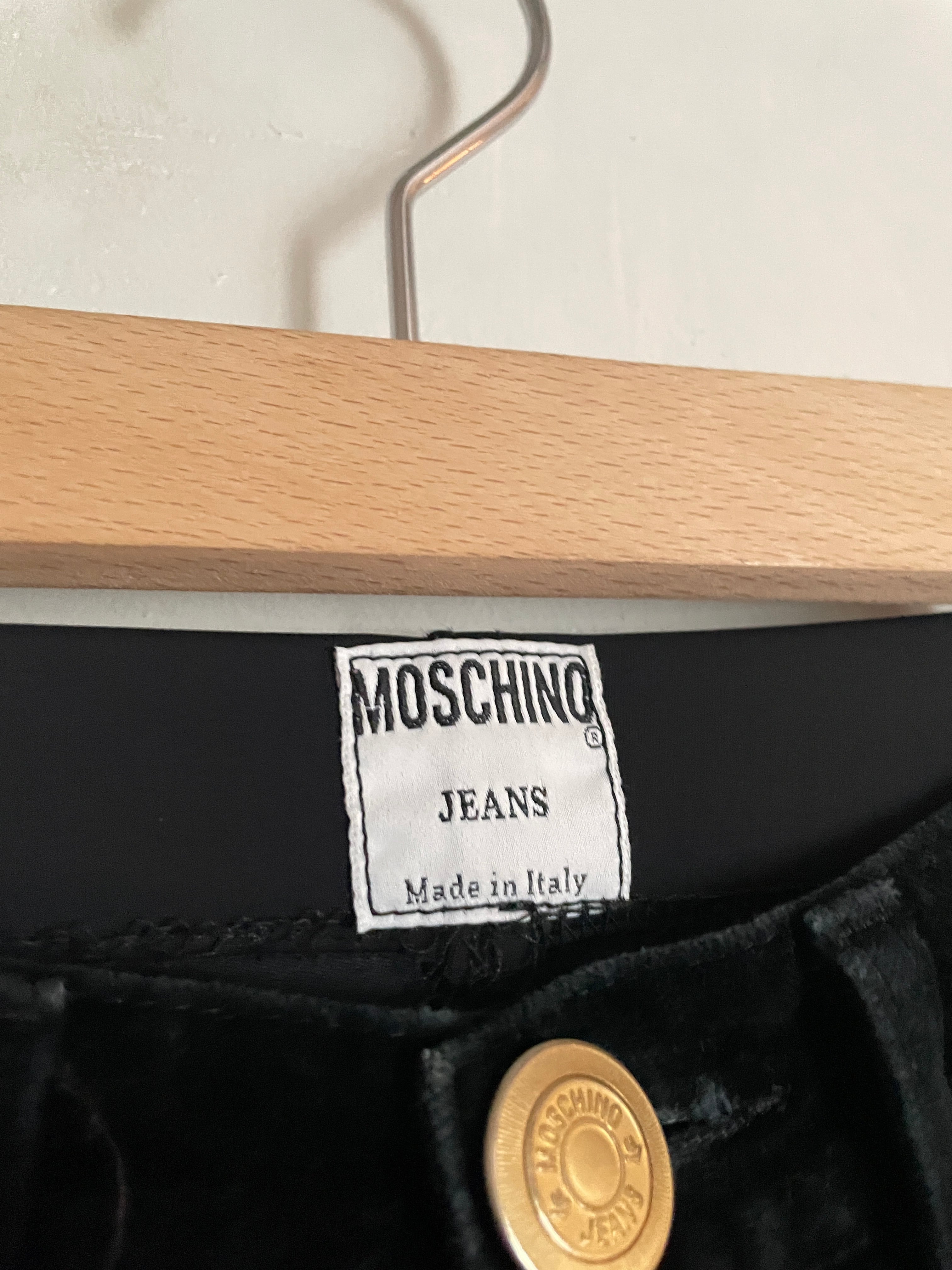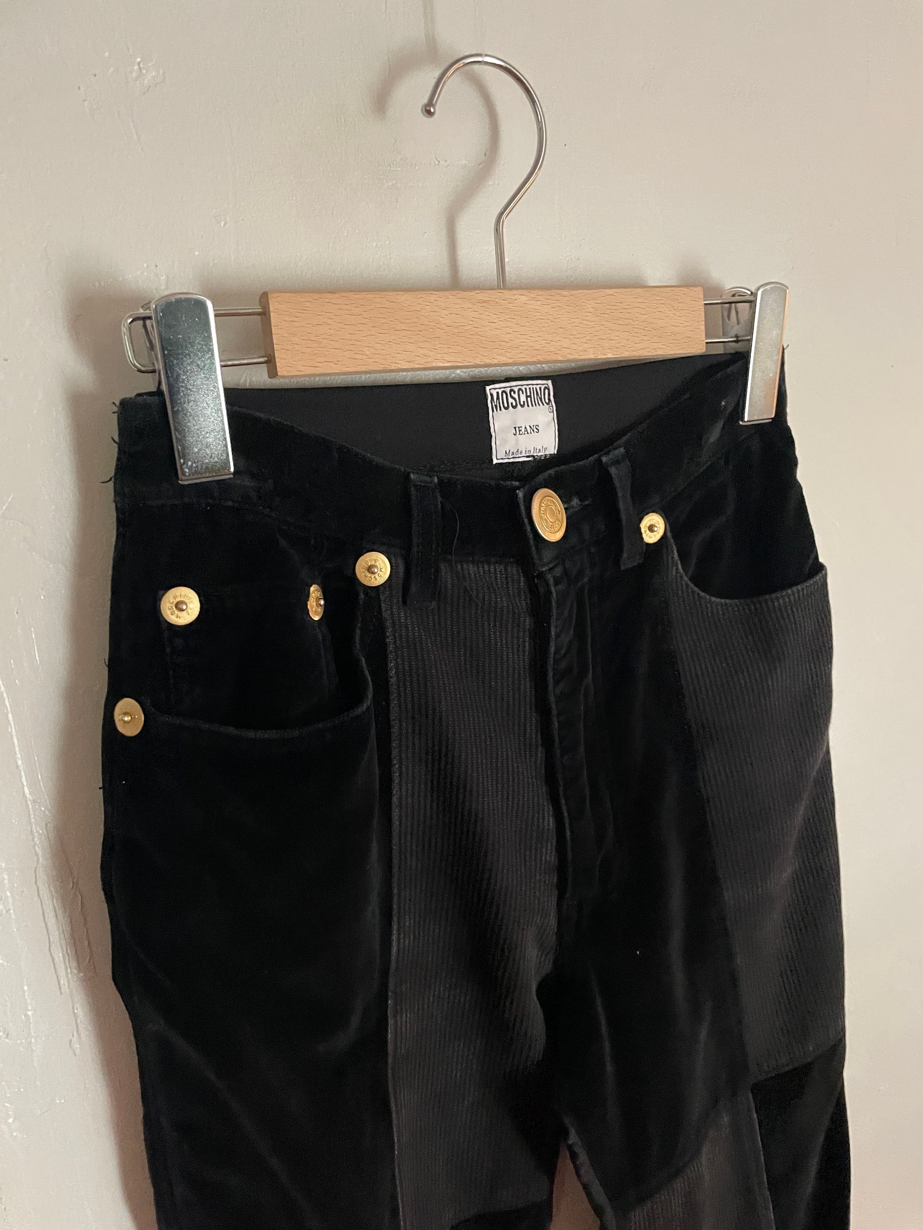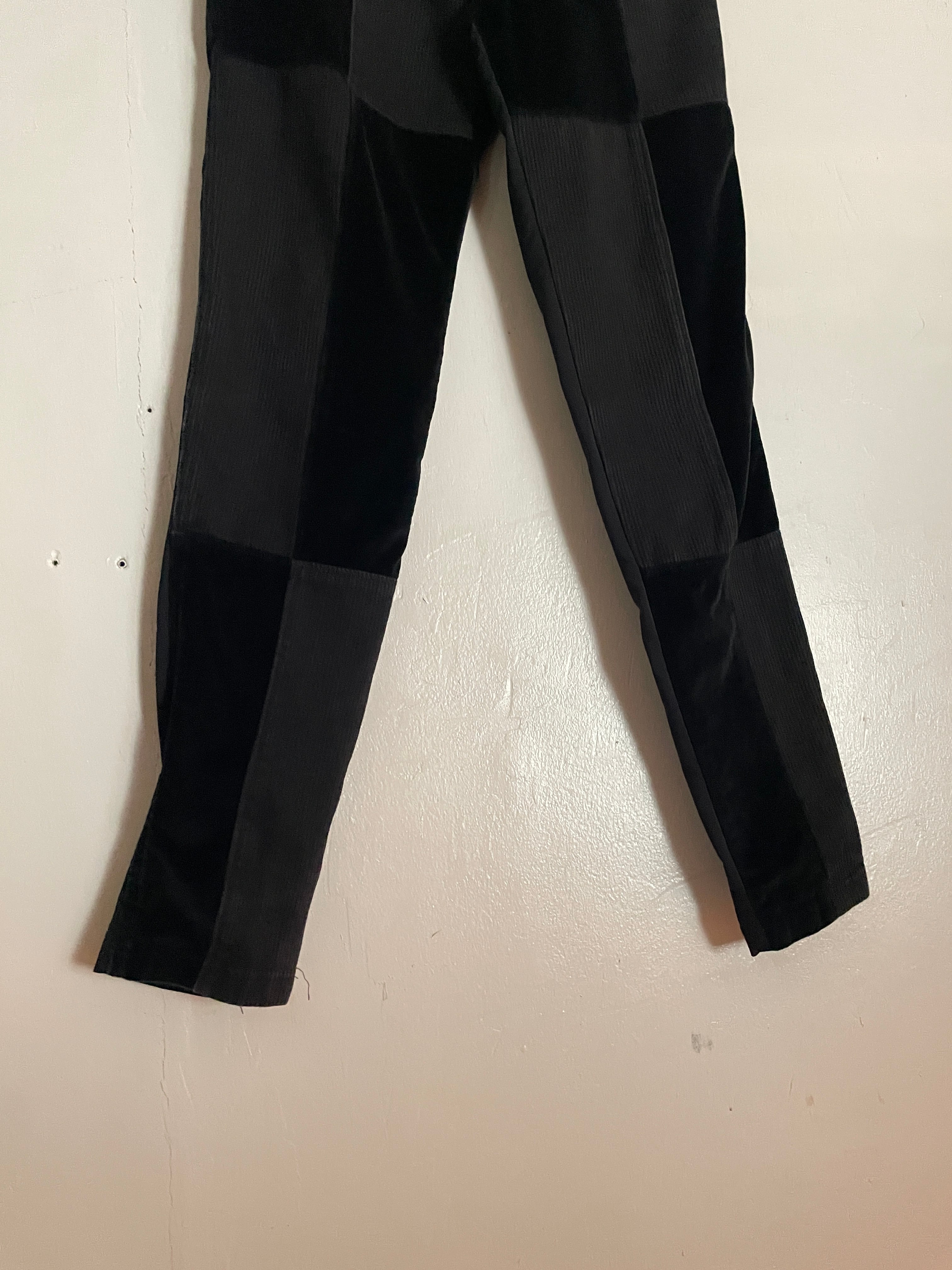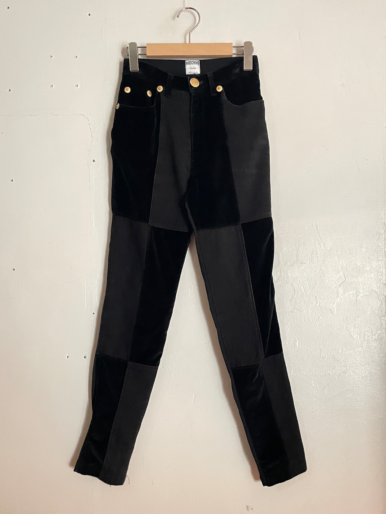 Old MOSCHINO Black Corduroy×Velor Docking Design Skinny Pants