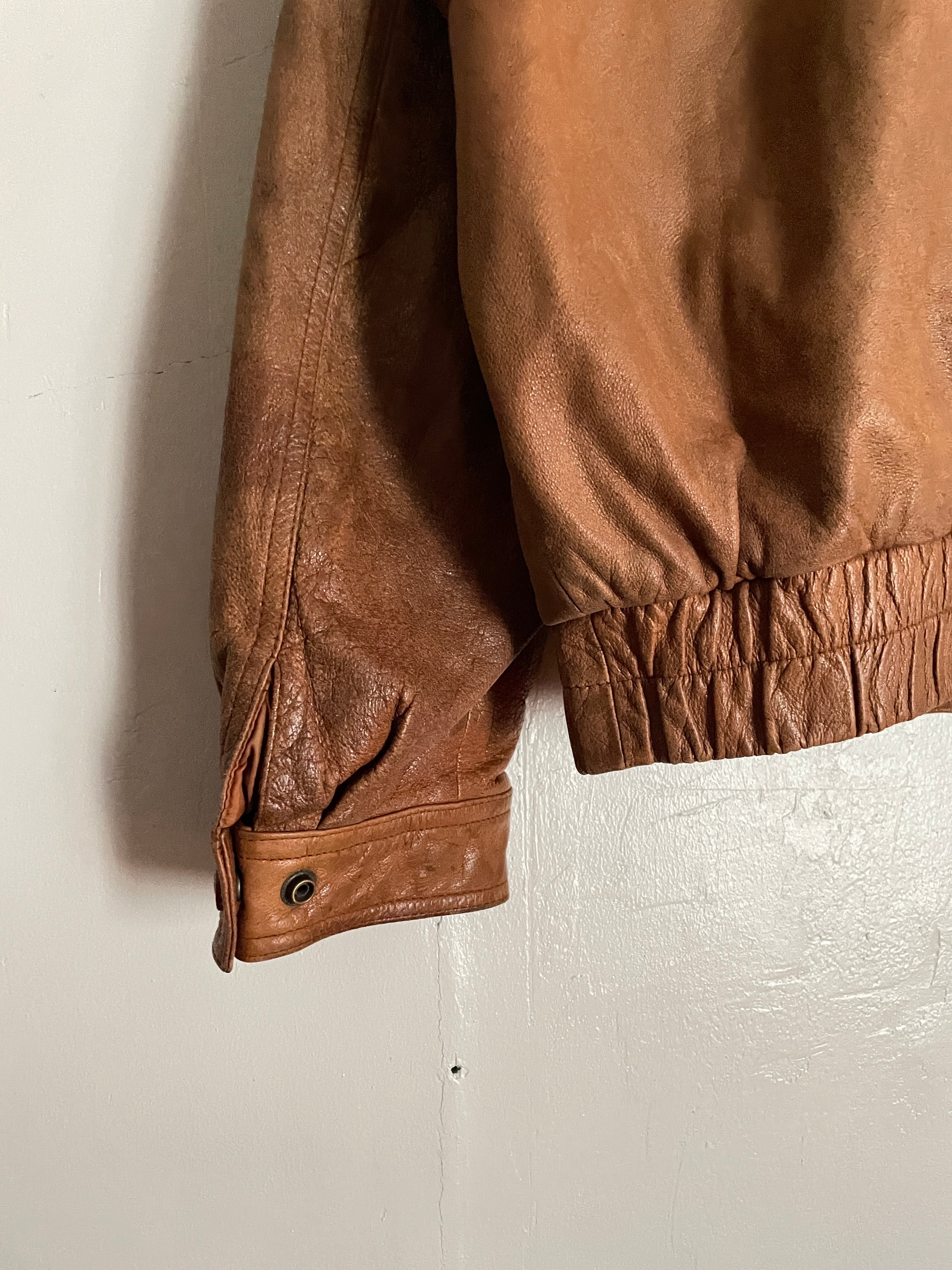 Old ADVENTURE BOUND Brown High Neck Leather Jacket