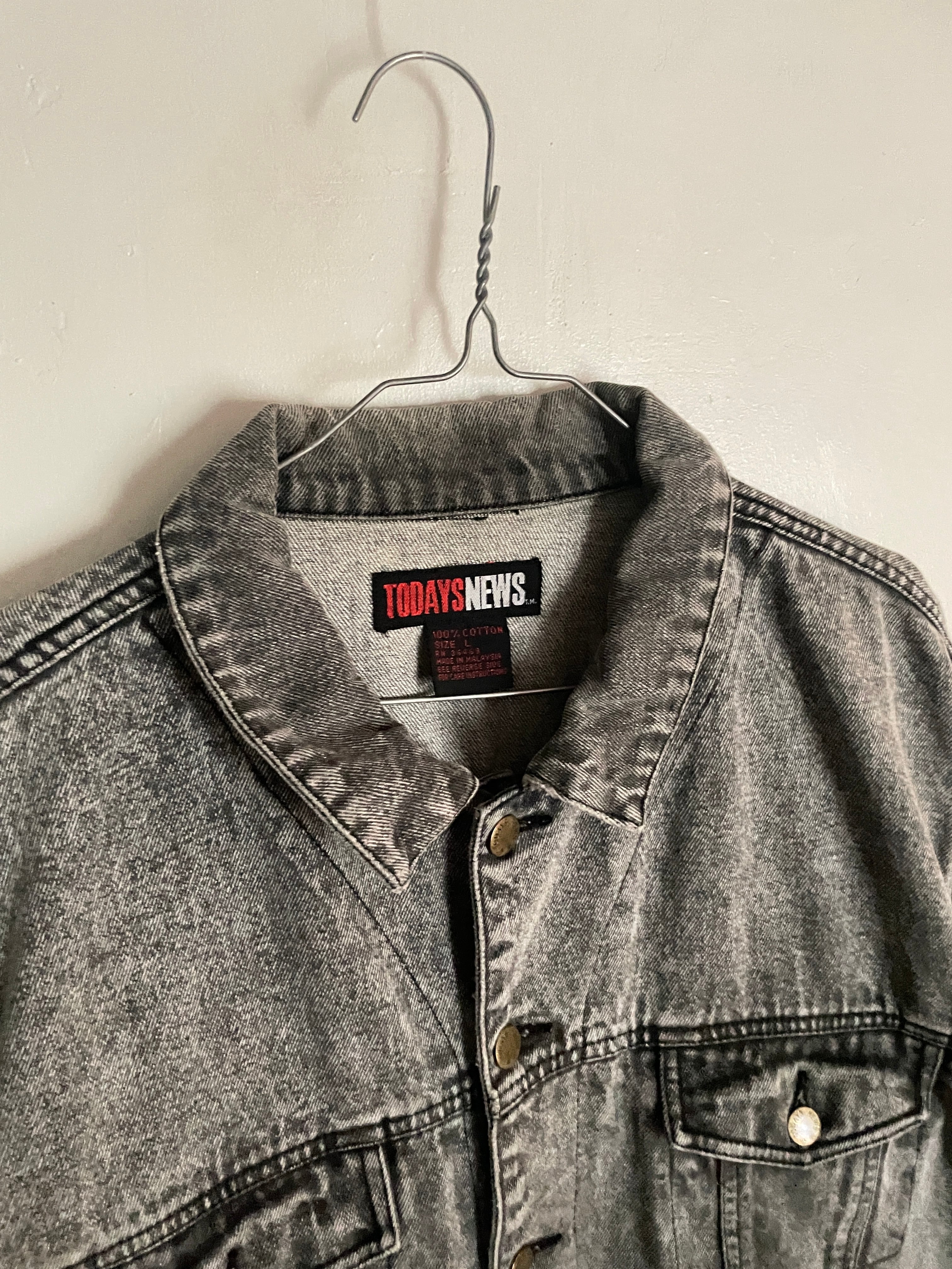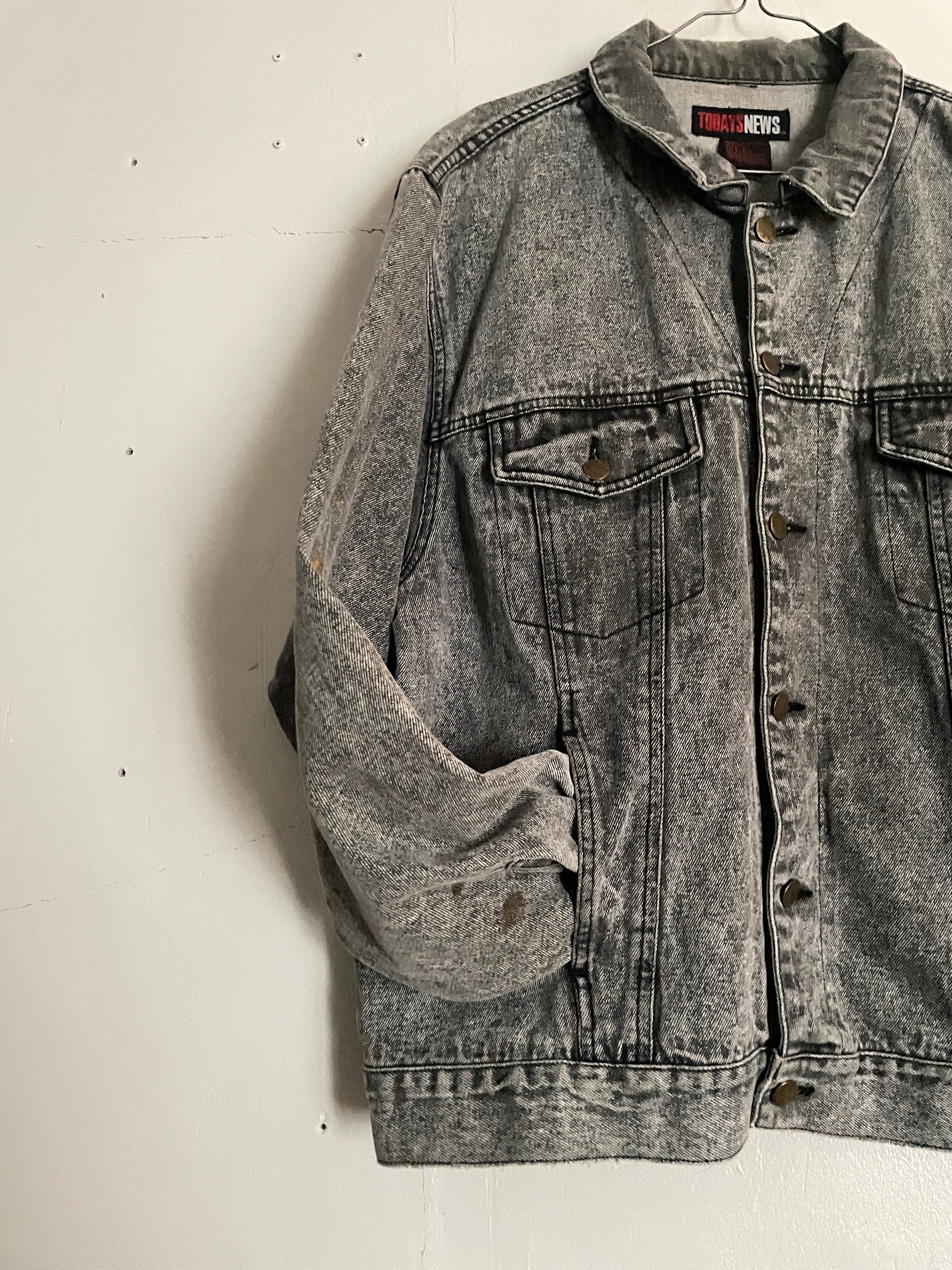 Old TODAYS NEWS Chemical Wash Black Denim Jacket