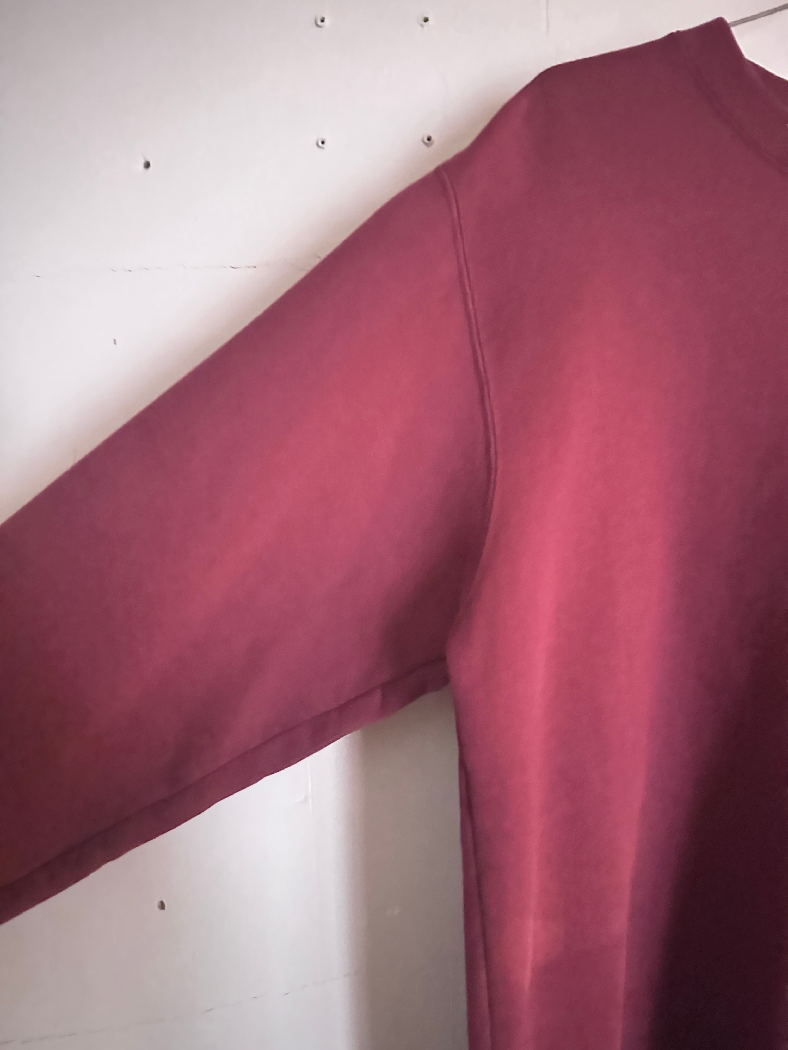 シンプルな秋カラーの無地スウェット。サイズ感は程よくオーバー目で、リブがしっかりと締まっているので折り返して短丈でも着用していただけます。またインナーとしても万能なアイテムで、裏起毛仕様なので気温が極端に低い冬場でも、アウターの下に仕込めば防寒対策もバッチリです。徐々に気温が落ち始めているこの季節にスウェットをお探しの方にぜひ手に取ってほしいアイテムです。