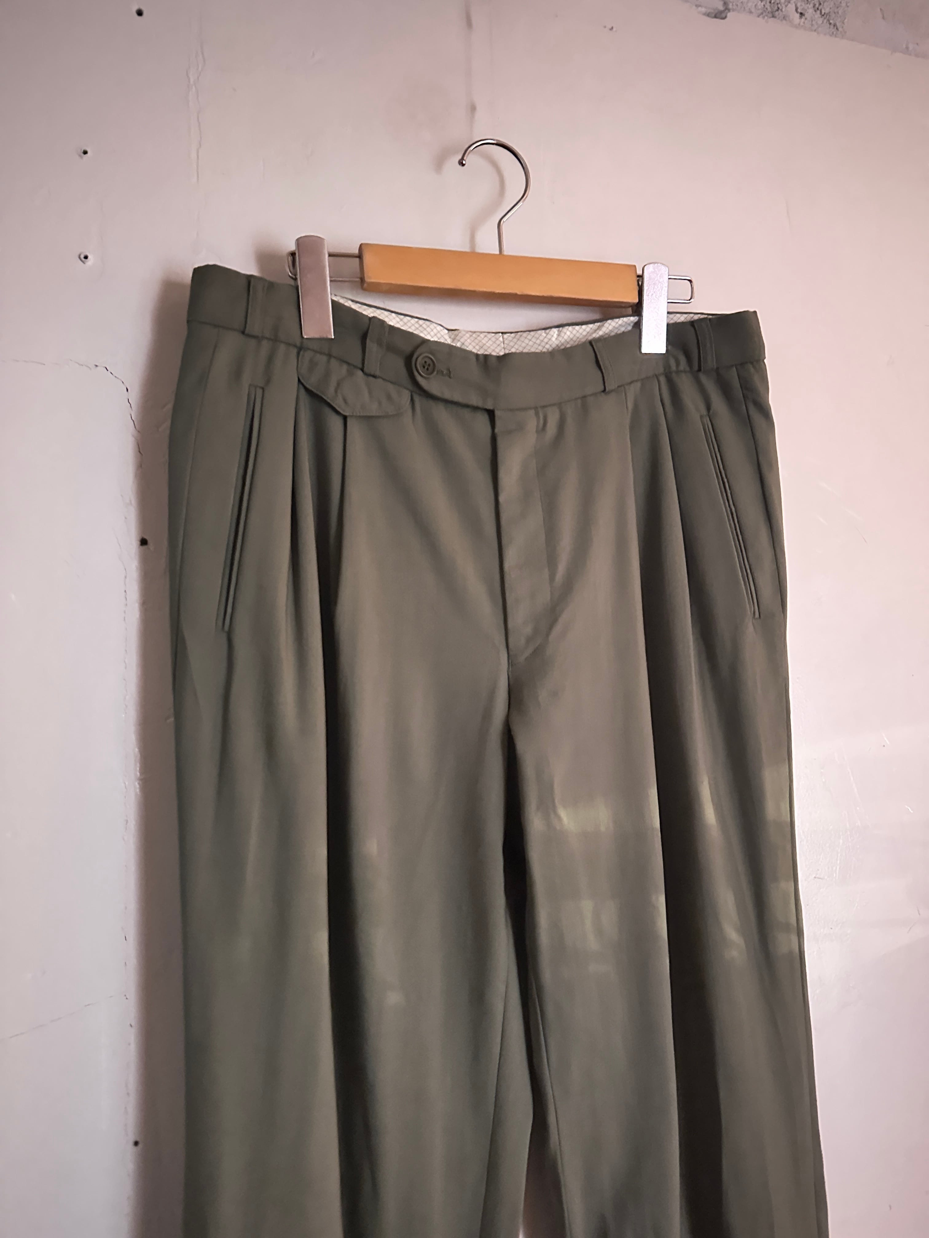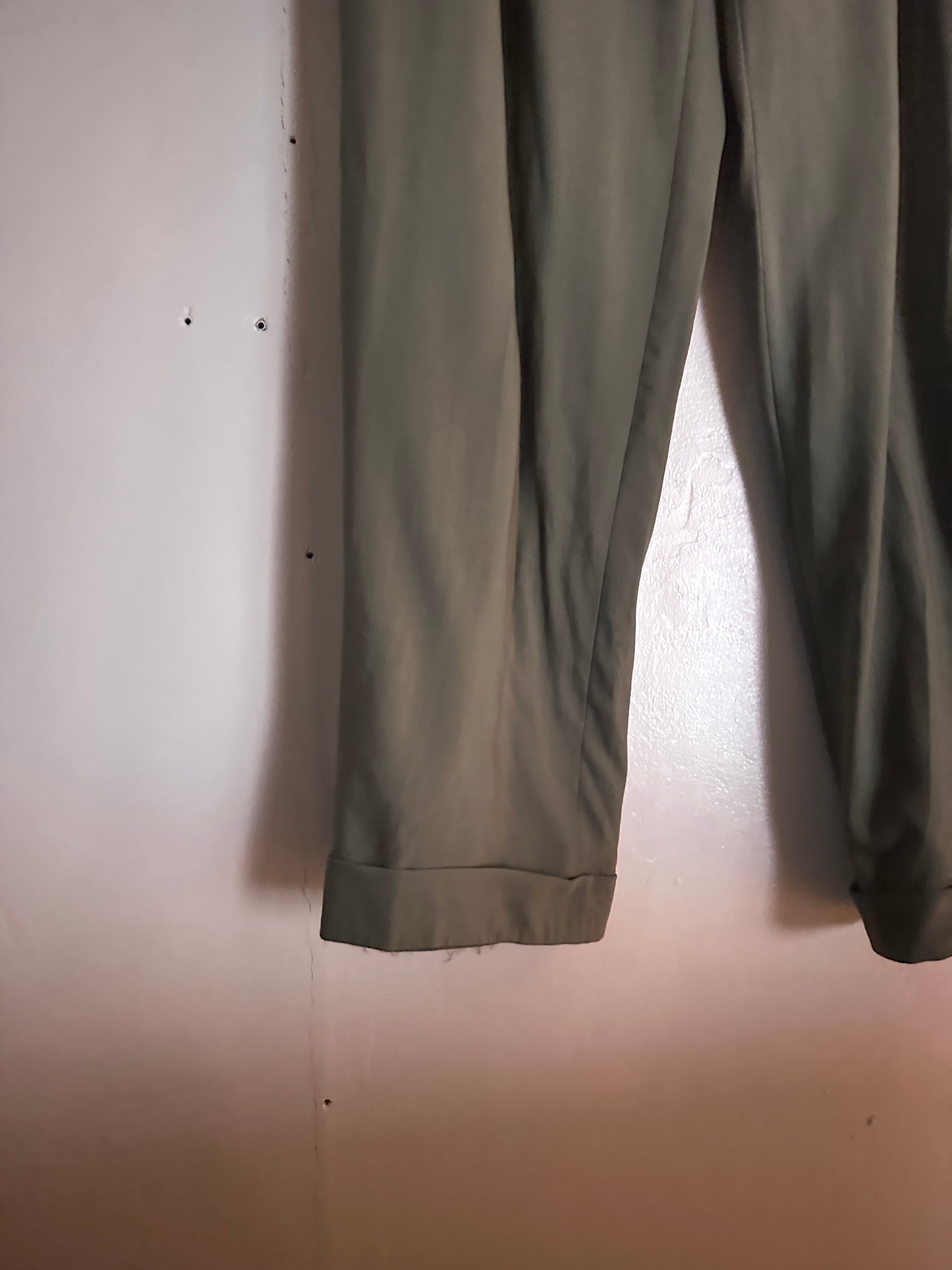 シンプルな2タックのスラックス。色味がグレーで、トップスは何を合わせてもコーデとして成り立ちます。特にレザージャケットやテーラードジャケット、ロングコートなどと相性がよく、カジュアルにも綺麗めにも使えるのが魅力です。