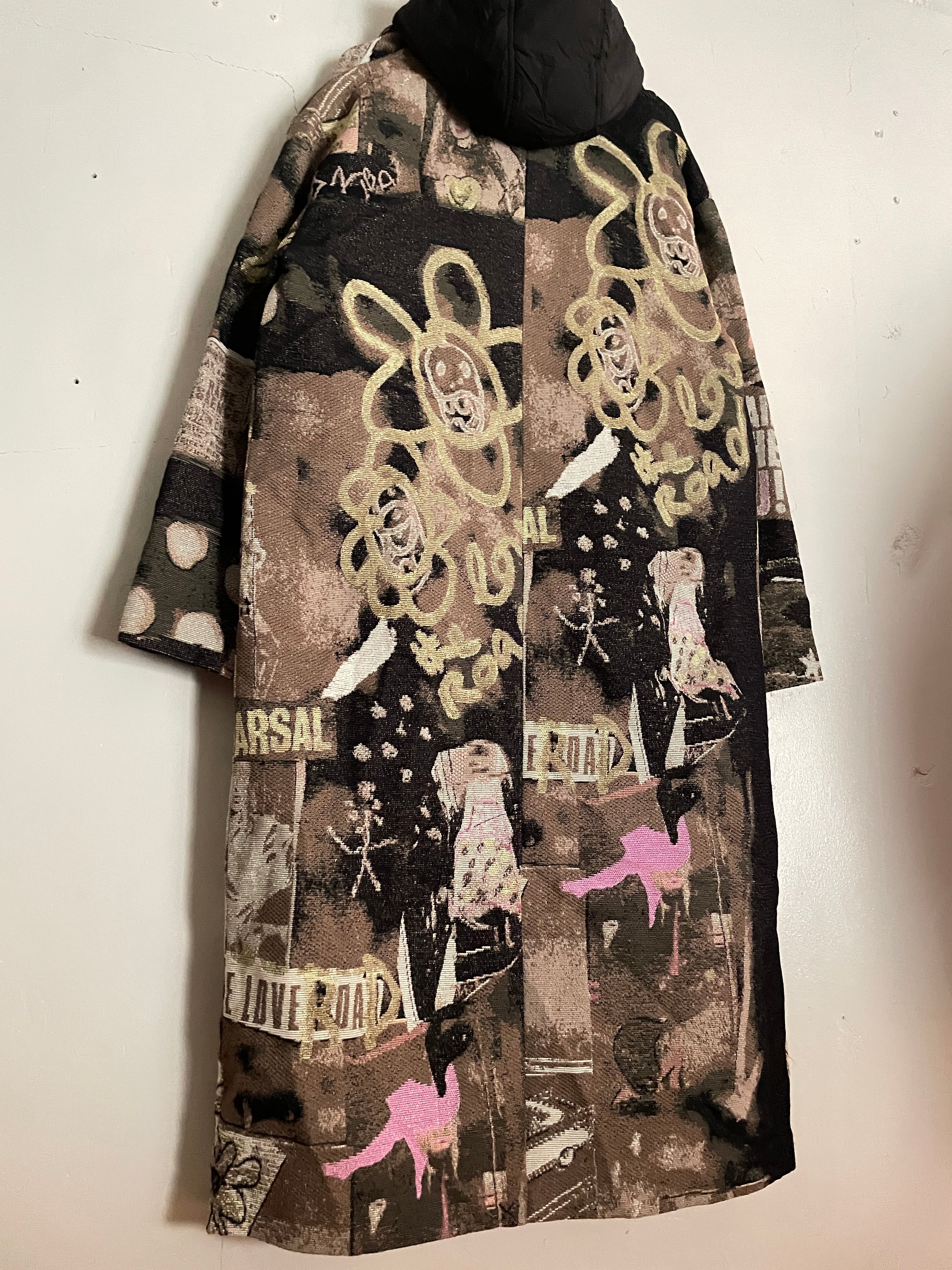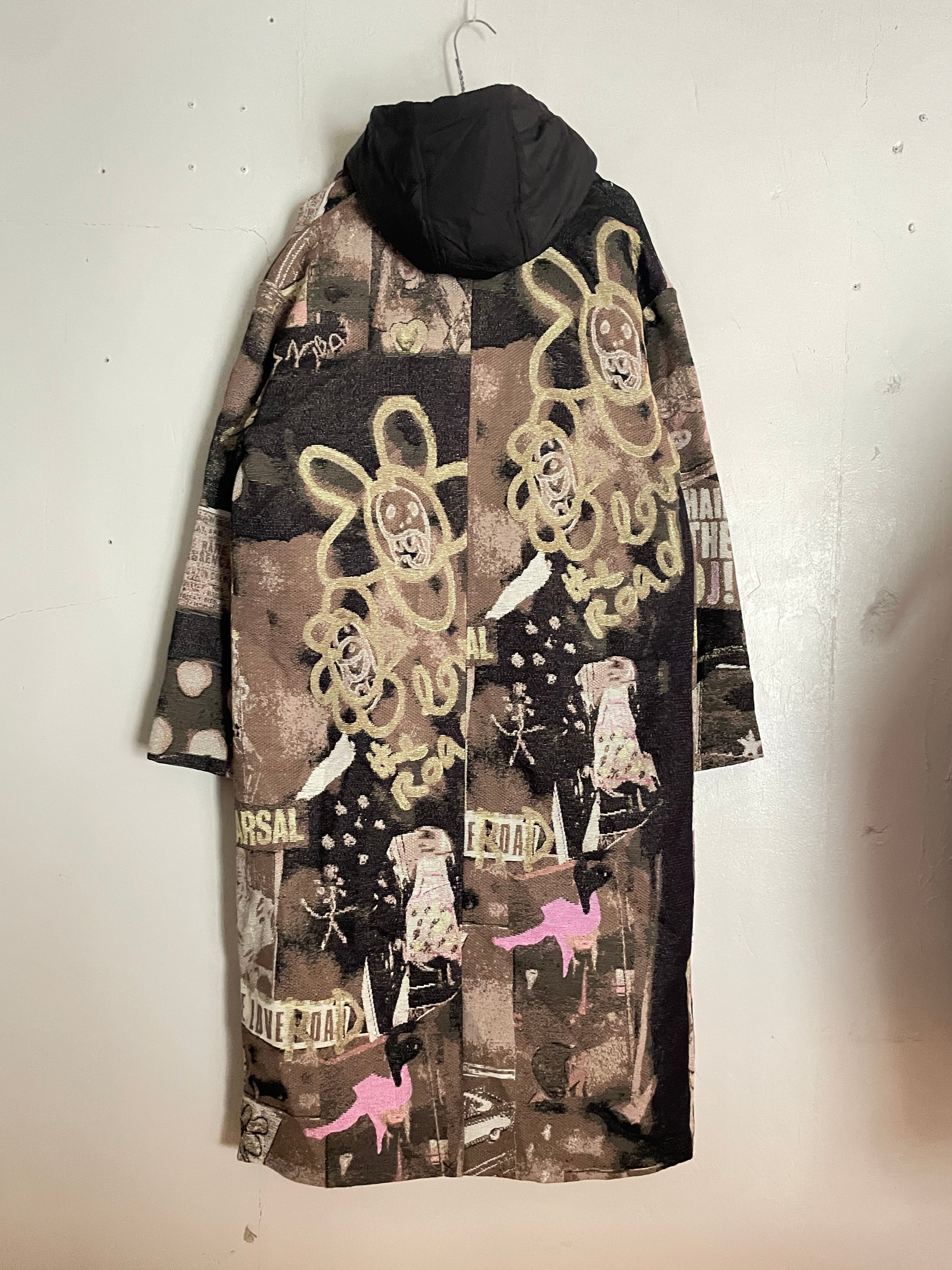 落書き感のある総柄デザインで、エキゾチックな雰囲気を感じられる、デシグアルのジャガードコート。他のブランドではない地中海をイメージさせるカラフルな色使いで、個性的を引き立てるバルセロナ発のファッションブランドです。テーラードカラーで、フード付きのライナー付き。取り外しも可能。必ずコーディネートの主役になるコートかと思います。保温性、機能性も兼ねそえなえたスペシャルな一着です。