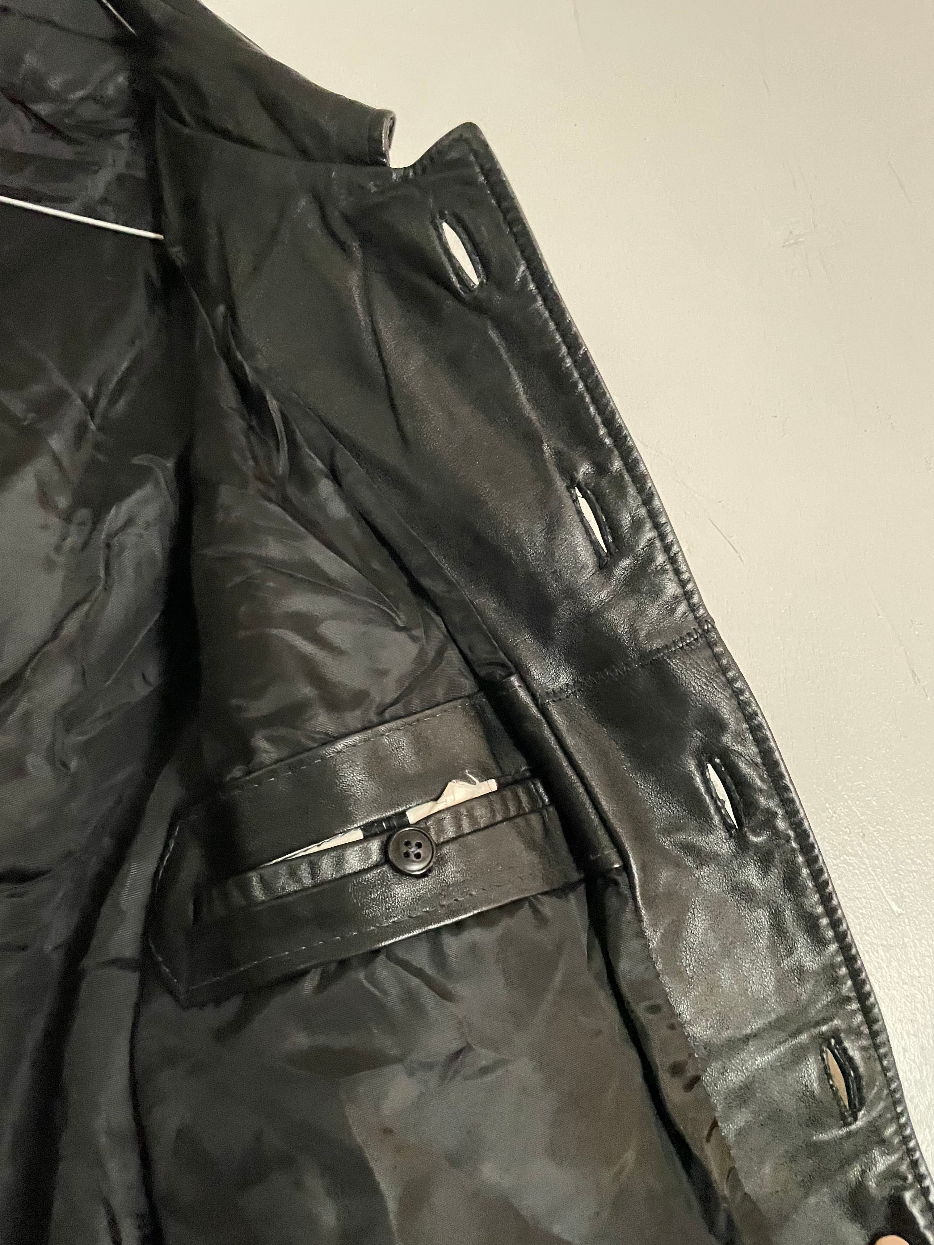 Old Button-Up Design Black Leather Jacket