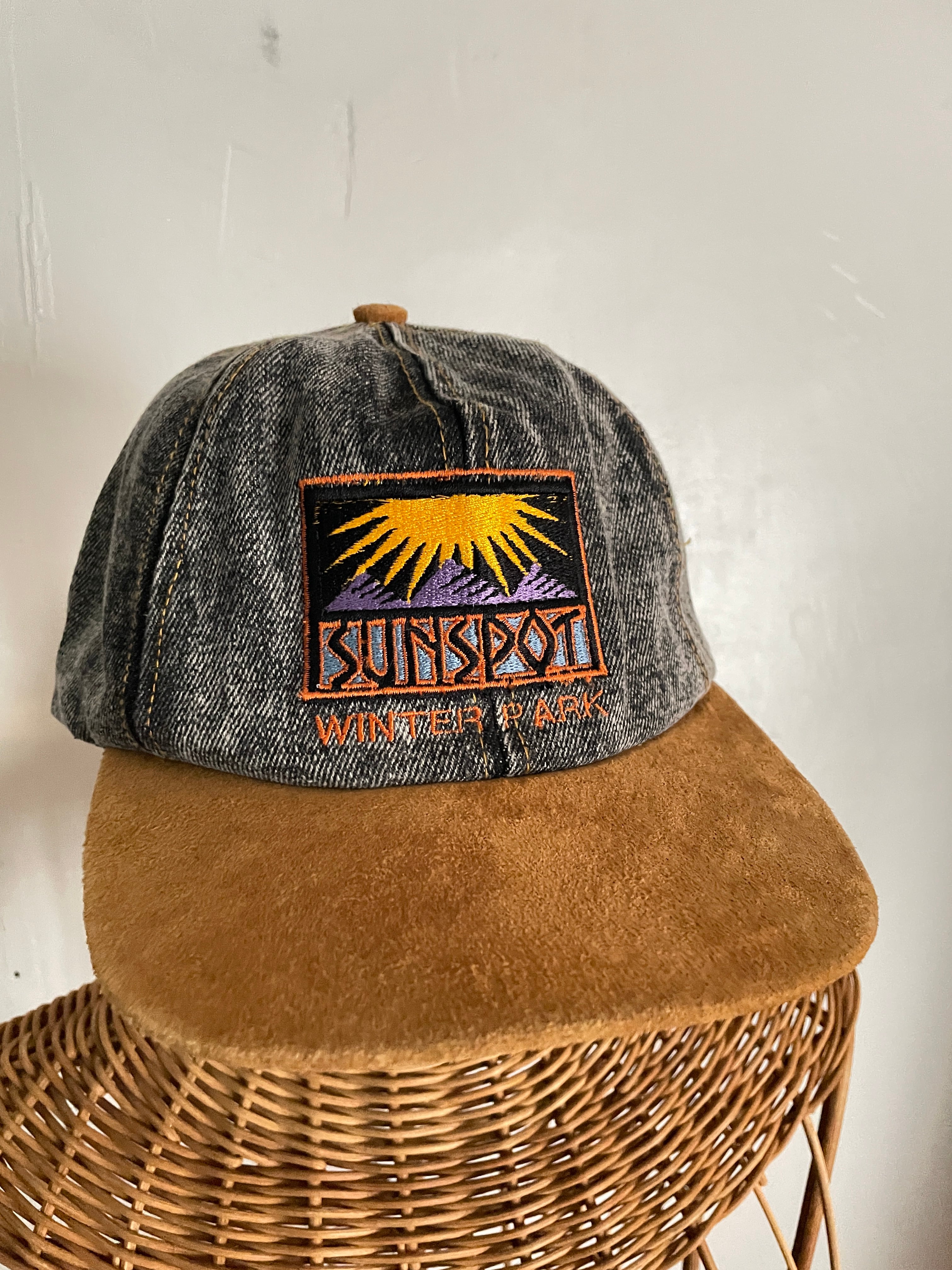 ウォッシュ加工されたデニム生地に、コロラド州にある”サンスポット・マウンテントップ・ロッジ”も刺繍が施されたベースボールキャップ。つばはスエードレザーで高級感が感じられます。配色の良い色味で。太陽が山を照らしているような刺繍デザインがお洒落です。サイズはバックのベルクロで調節可能。深さも丁度良く、ファッションに良いアクセントを与えてくれるキャップです。