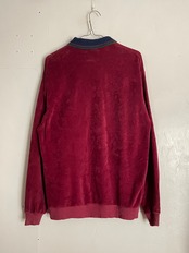 色気のあるワインレッドボディのベロアポロシャツ。光沢のある上品なベロア素材。触り心地抜群です。襟部分のカラーもお洒落です。ゆったりめなサイズ感ですが、リブがしっかりしている為、良い丈感で着られそうです。一枚ではもちろんですが、今の時期にはインナーとしても活躍してくれそうです。USA製なのもポイントが高いです。