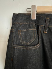 クラシックな濃紺カラーに、オレンジのステッチが映えるストレートデニム。程良いハリと厚みのある生地感で、シルエットを綺麗に見せてくれる一本です。カジュアルにも綺麗めにも合わせやすく、オールシーズン活躍。裾にかけてまっすぐ落ちるストレートラインで、脚長効果も期待できます。