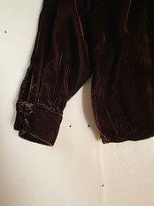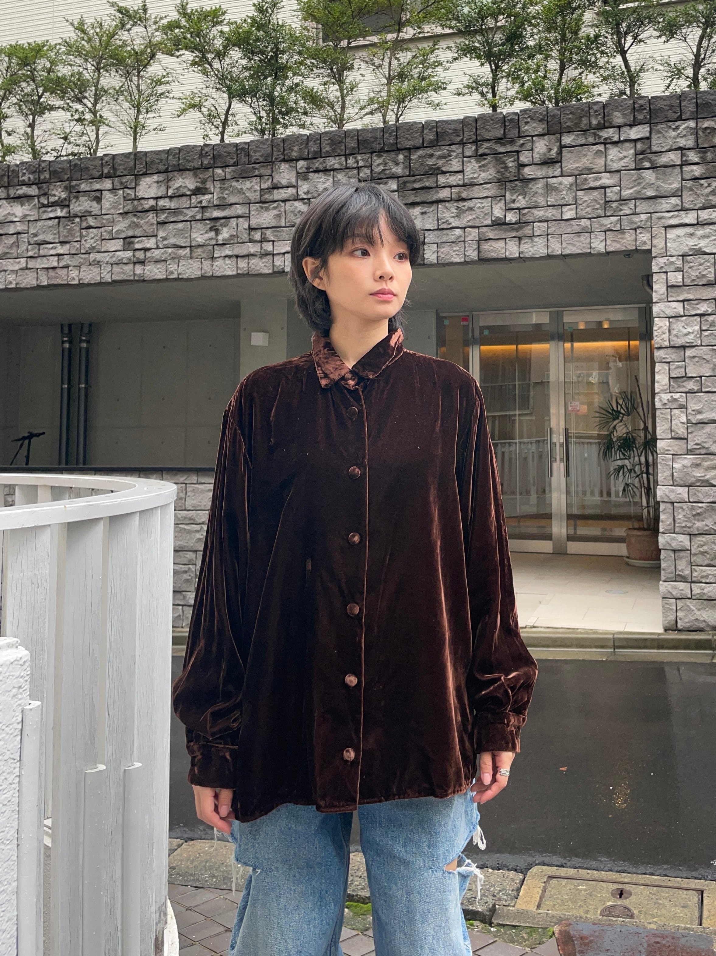 上品な印象のバーガンディーカラーのベロアシャツ。柔らかな手触りながらも、しっかりとした生地感でシルエットを美しく保ってくれます。ボタンには同じベロア生地が使用され、統一感のある高級な印象に。両サイドにスリットが入り、動きやすさと抜け感をプラス。カジュアルにもドレッシーにも着こなせる万能な一枚です。