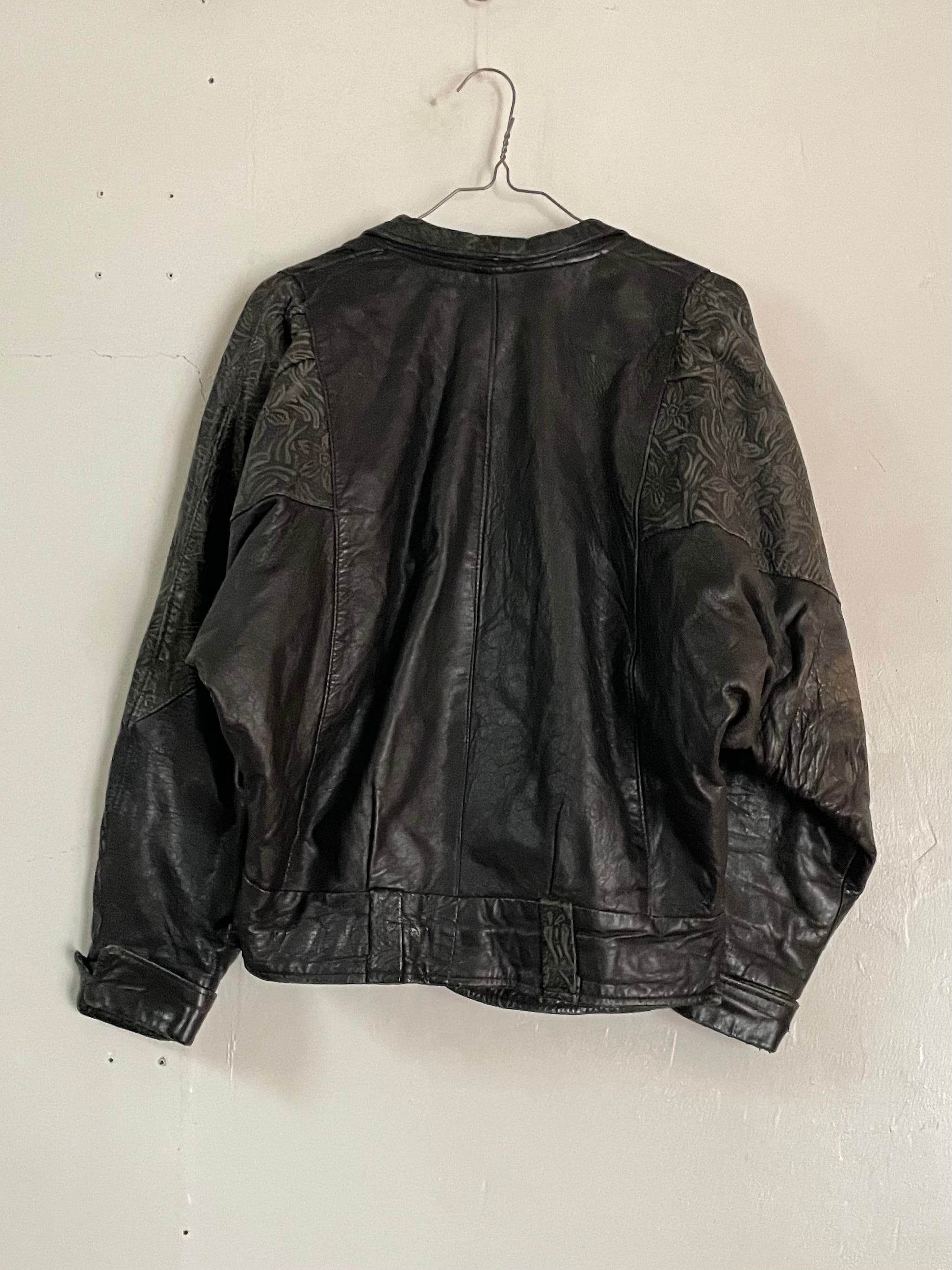 Old Floral Embossed Design leather Jacket