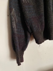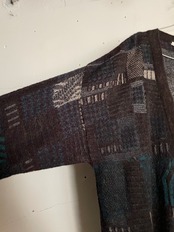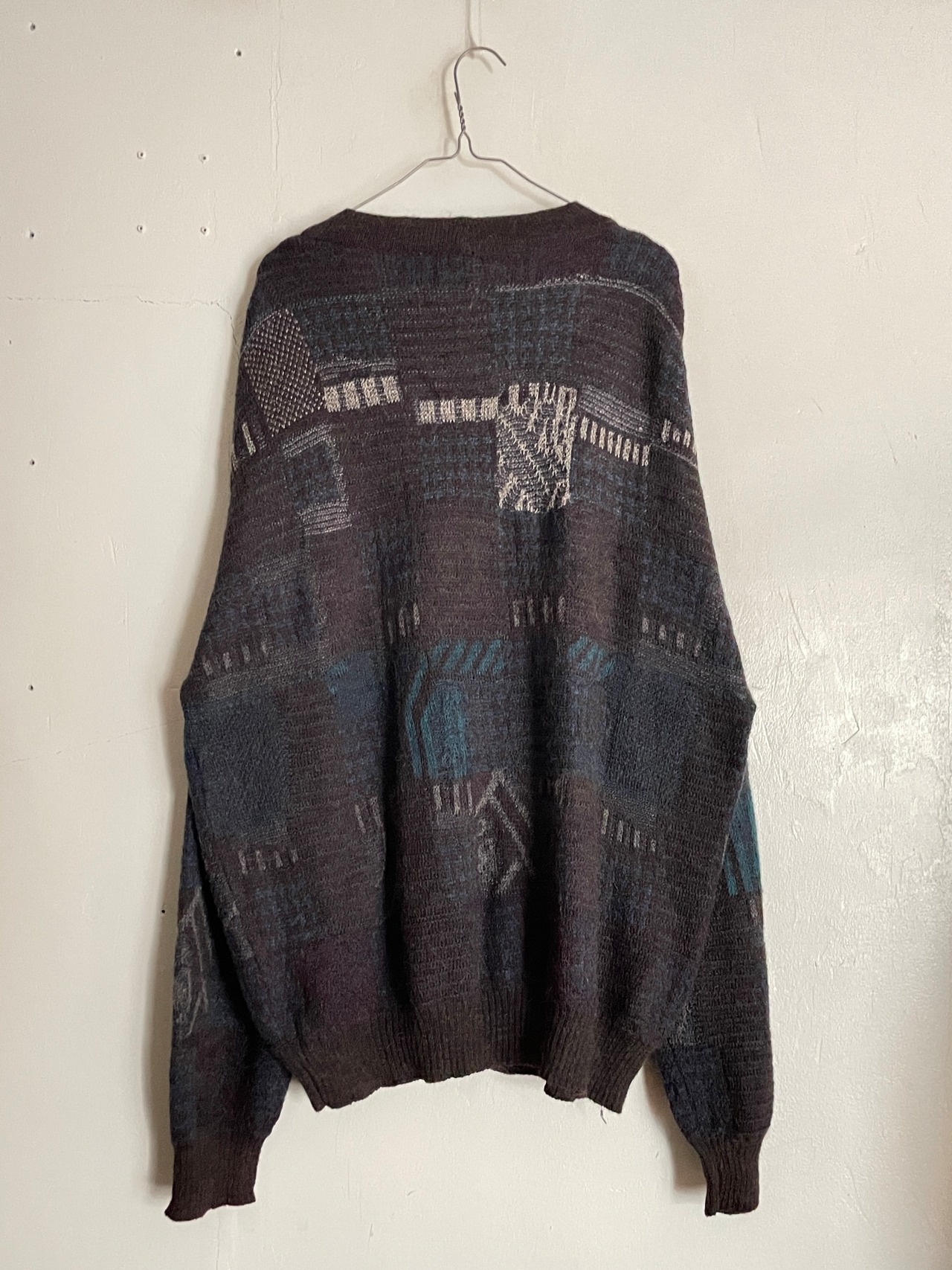 毛足の長いウール素材で、細かな編み込みの総柄デザインがお洒落な、ニットカーディガン。何と言っても、ゆったりとしたサイズ感が魅力的です。肩が落ちるような緩いシルエットになっています。落ち着いた配色なので、比較的使いやすいカーディガンかと思います。男性の方にはもちろんですが、女性の方もビッグサイズで着たら可愛らしいかと思います。イタリア製なのもポイントが高いです。