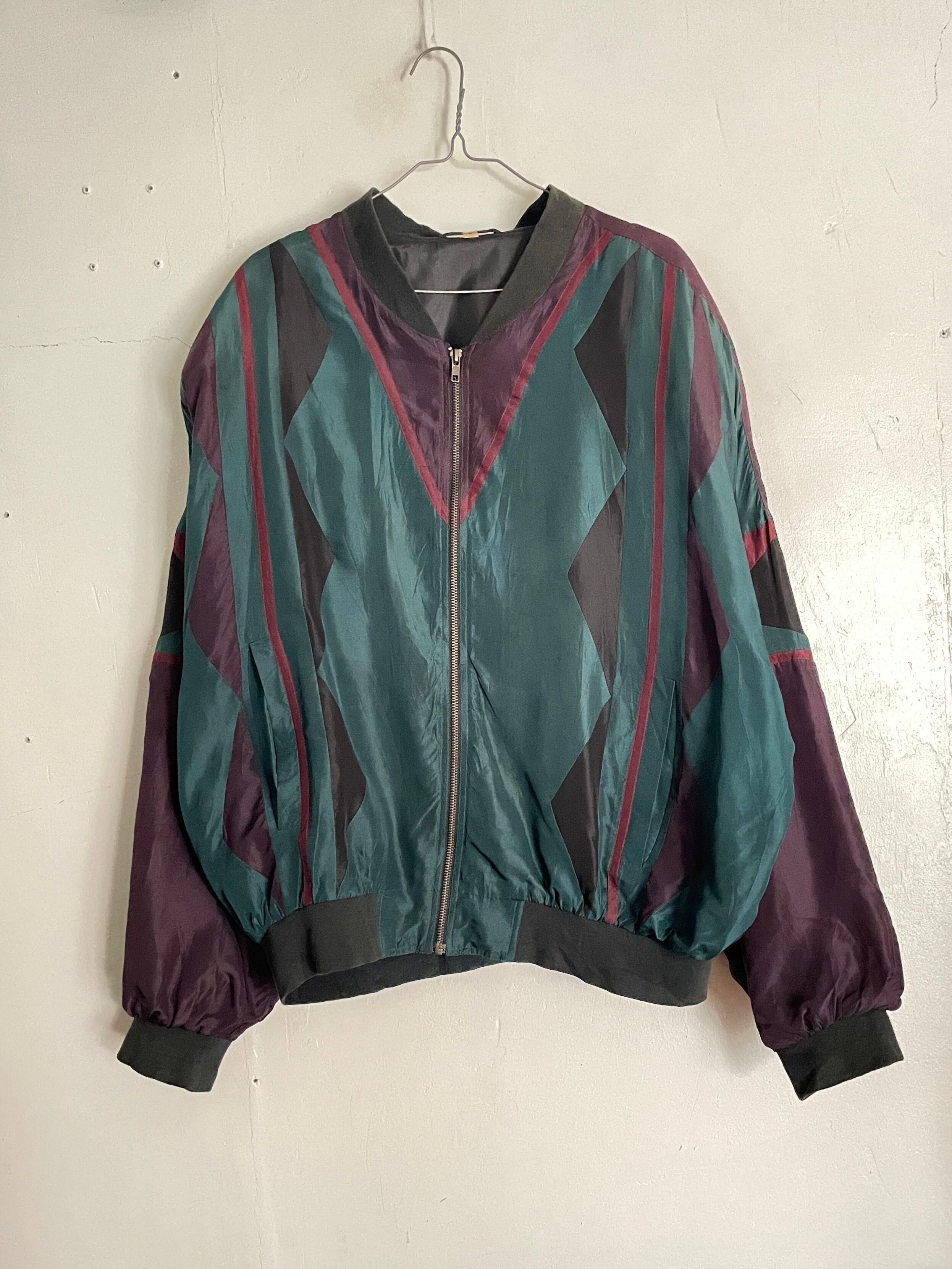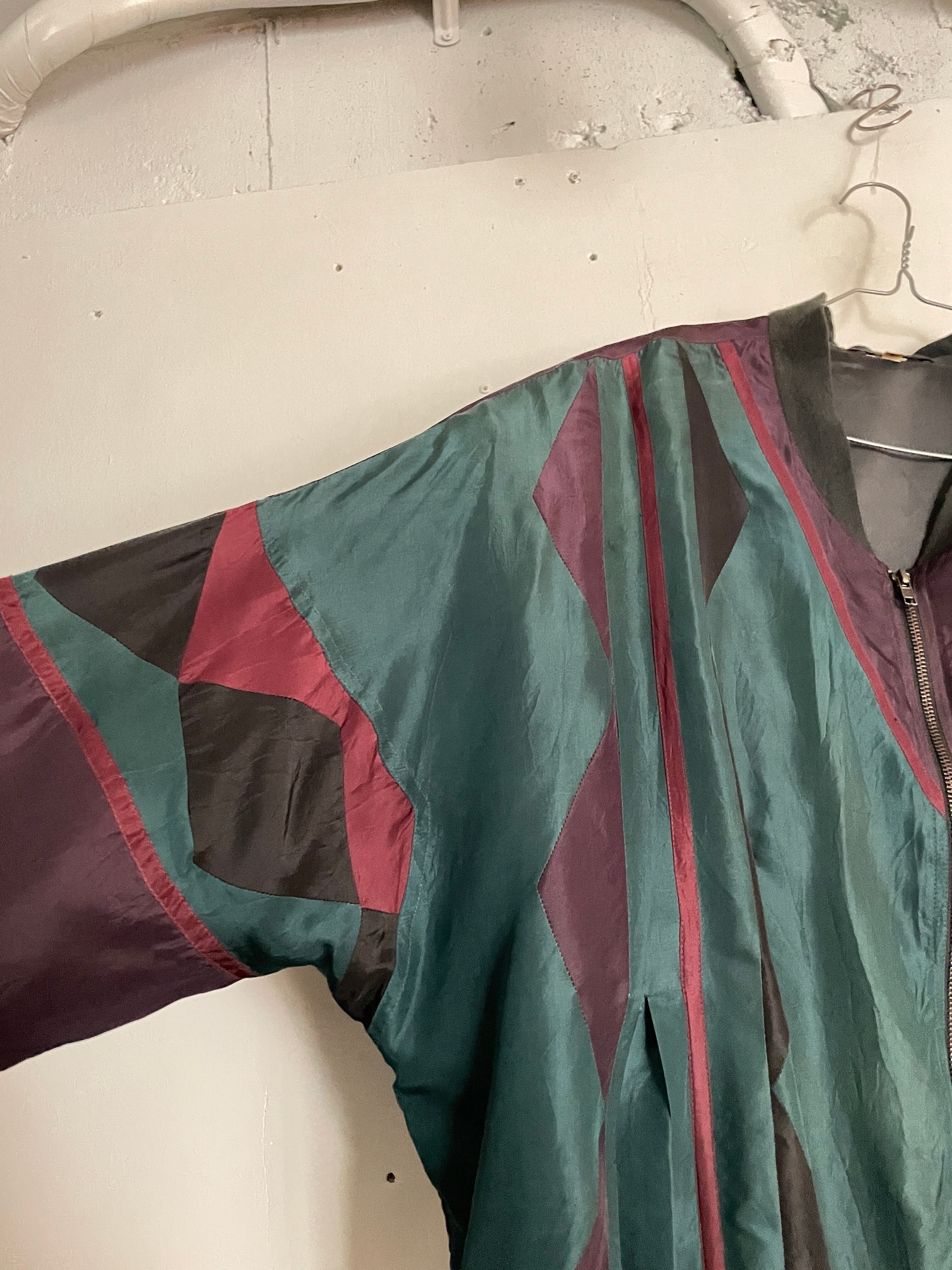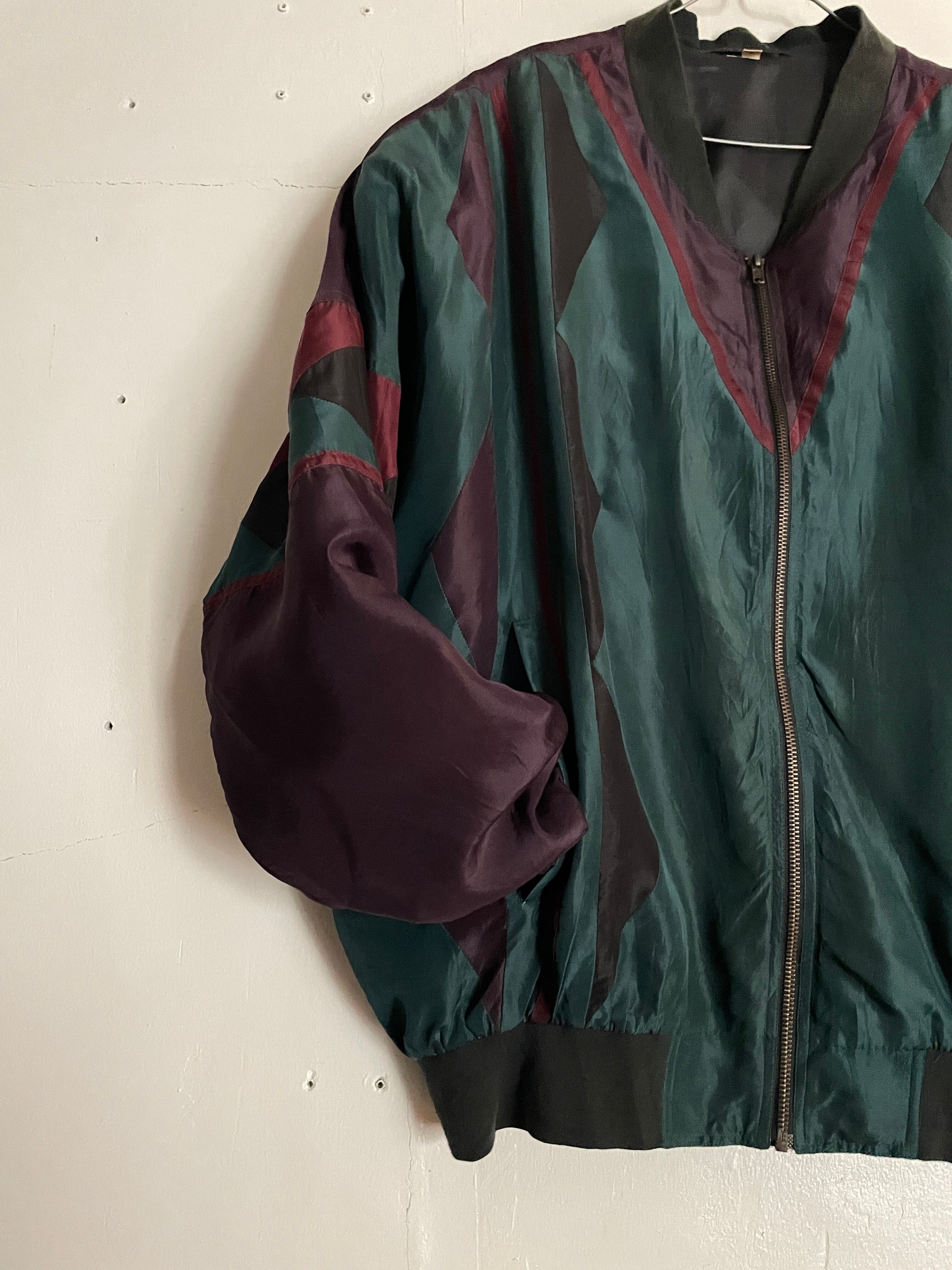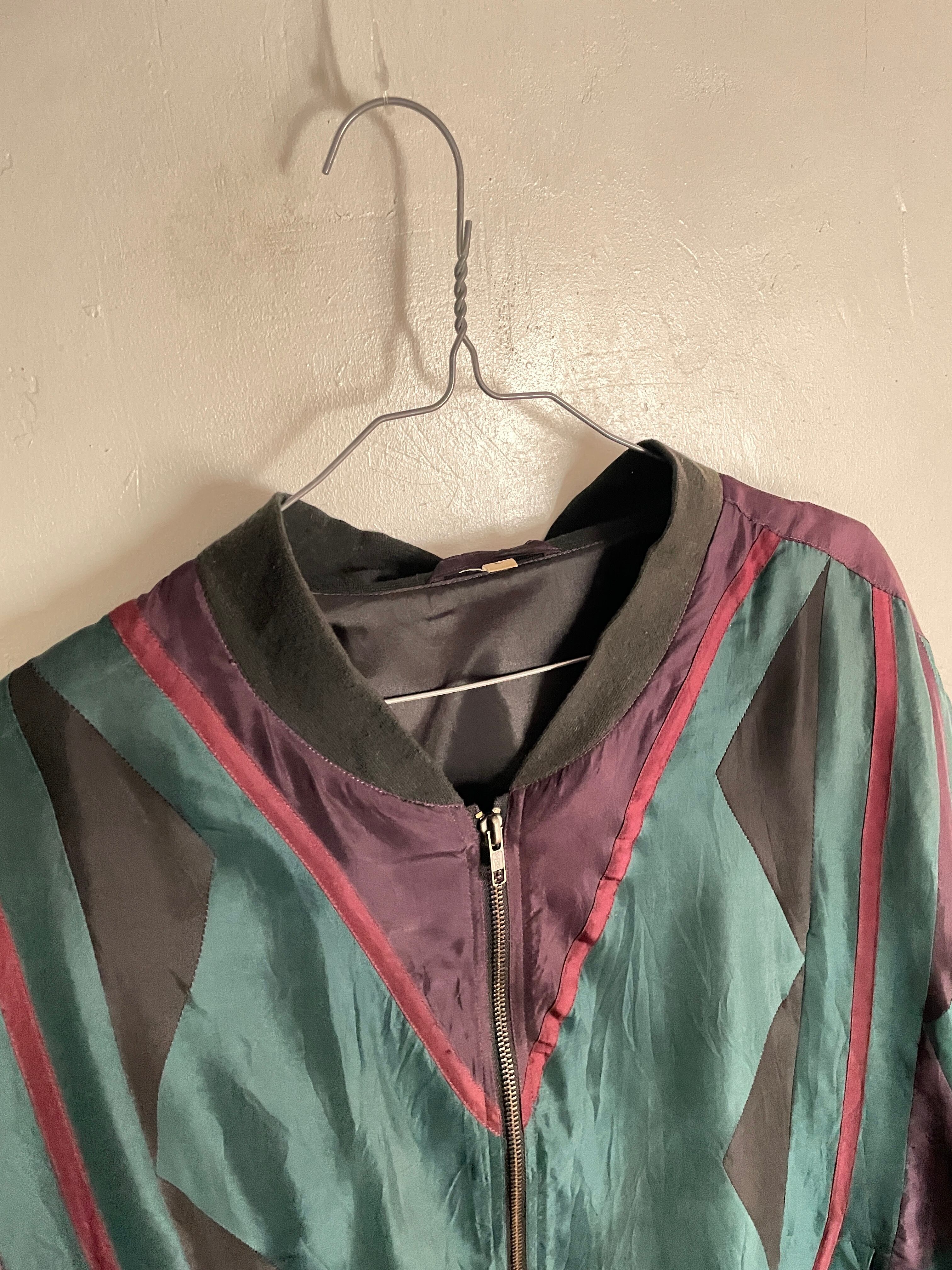 Old Multicolor Swiching Design Silk Blouson