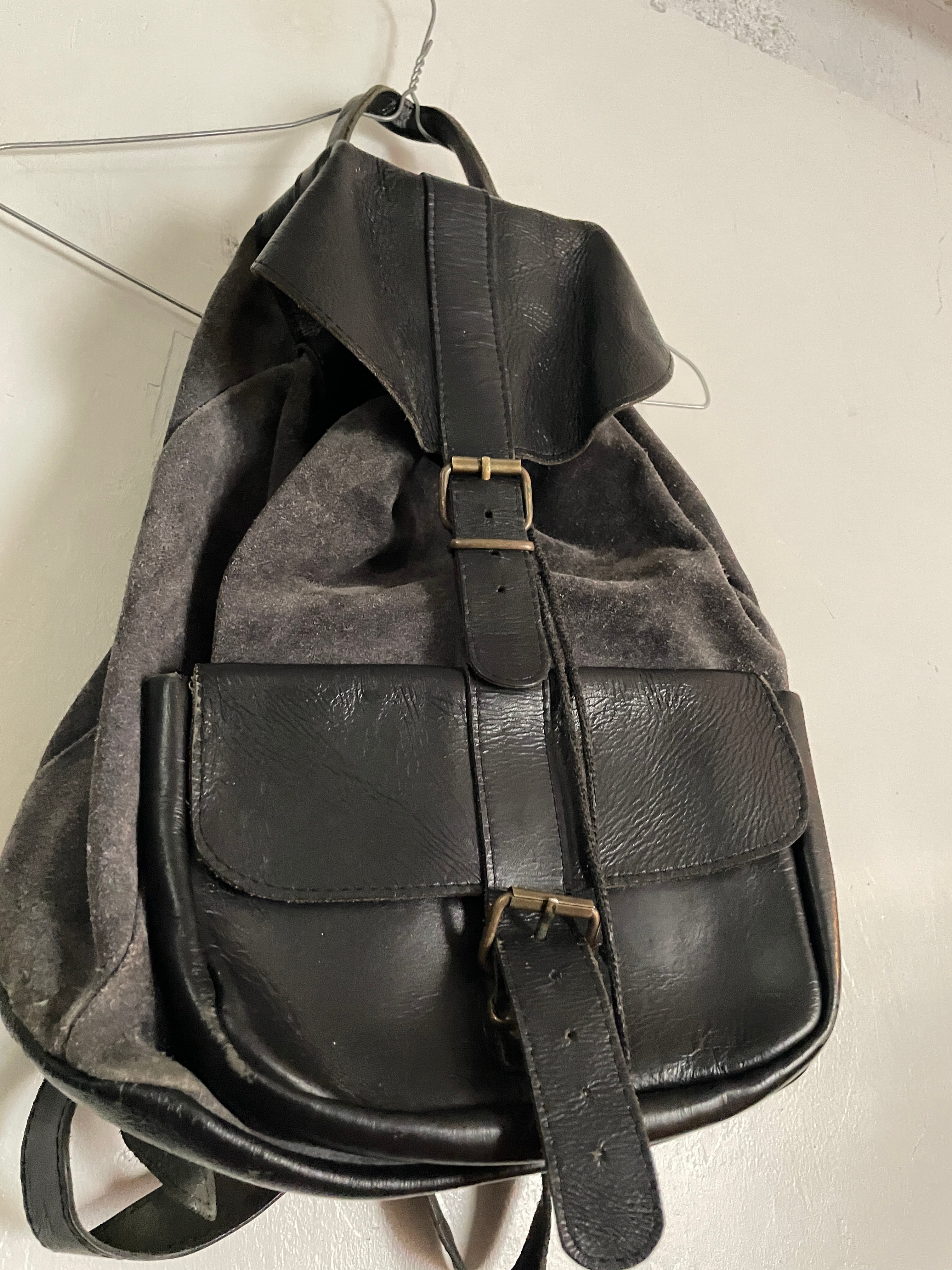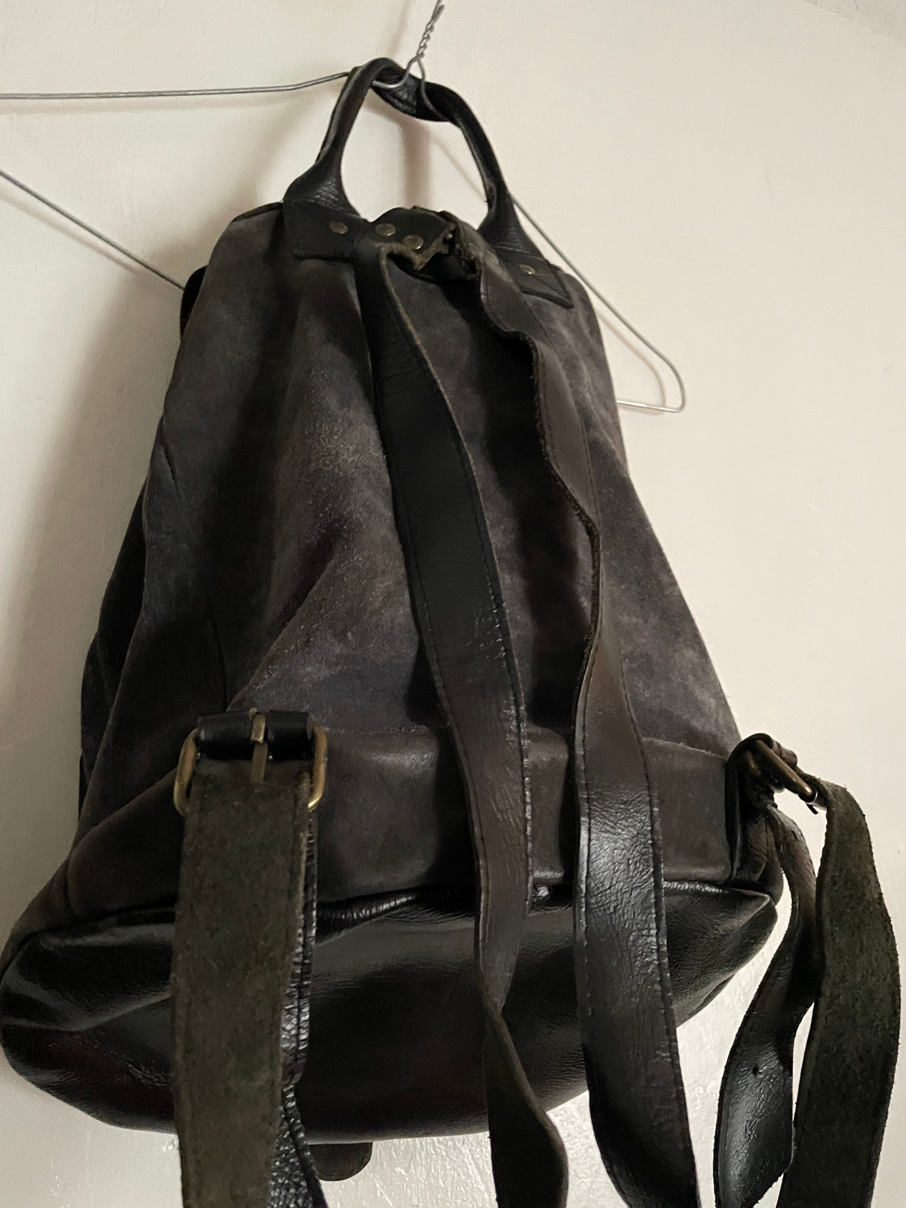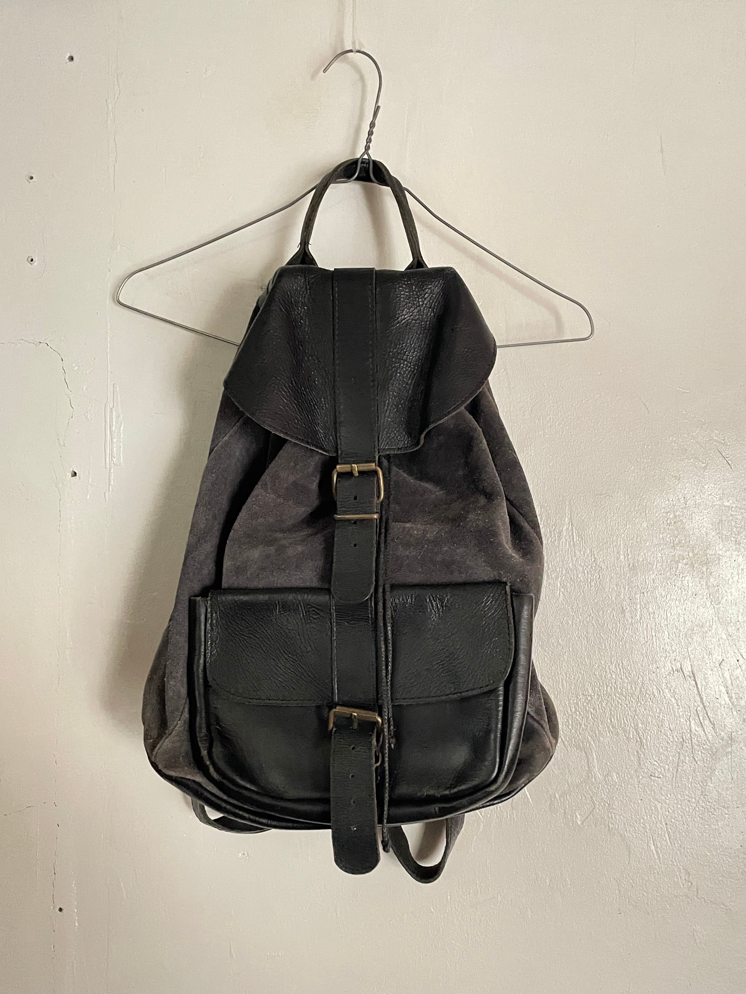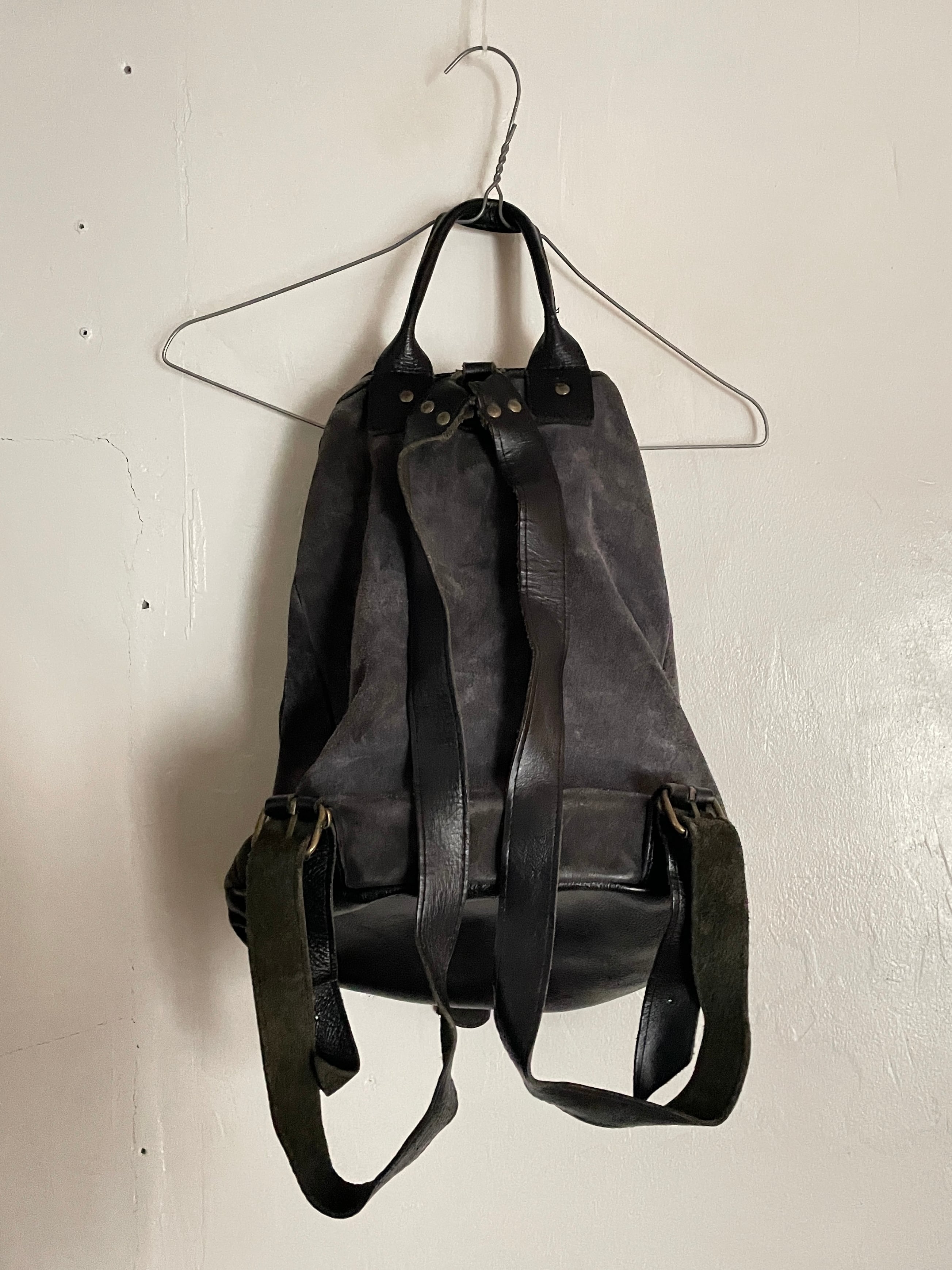 Old Black Leather×Gray Suede Leather Swiching Backpack