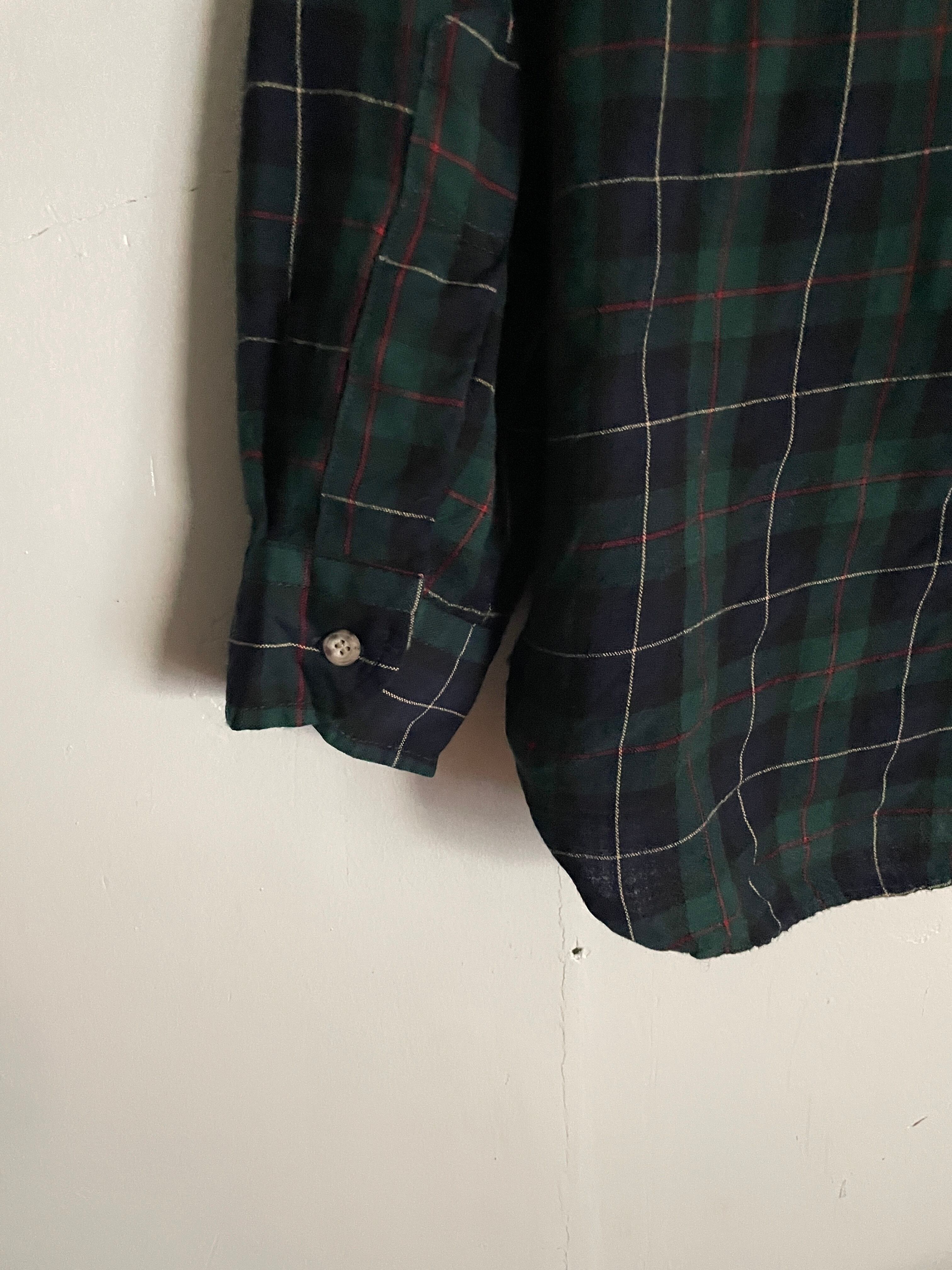 配色抜群のタータンチェック柄がお洒落な、ペンドルトンのウールシャツ。上質なバージンウール素材。まさに今の時期に活躍するシャツです。一枚で着ても、インナーの差し色としても活躍してくれます。ゆったりとしたサイズ感で、男性の方のはもちろん、女性の方も大きめできたら可愛らしいかと思います。しっかりとUSA製のアイテムです。