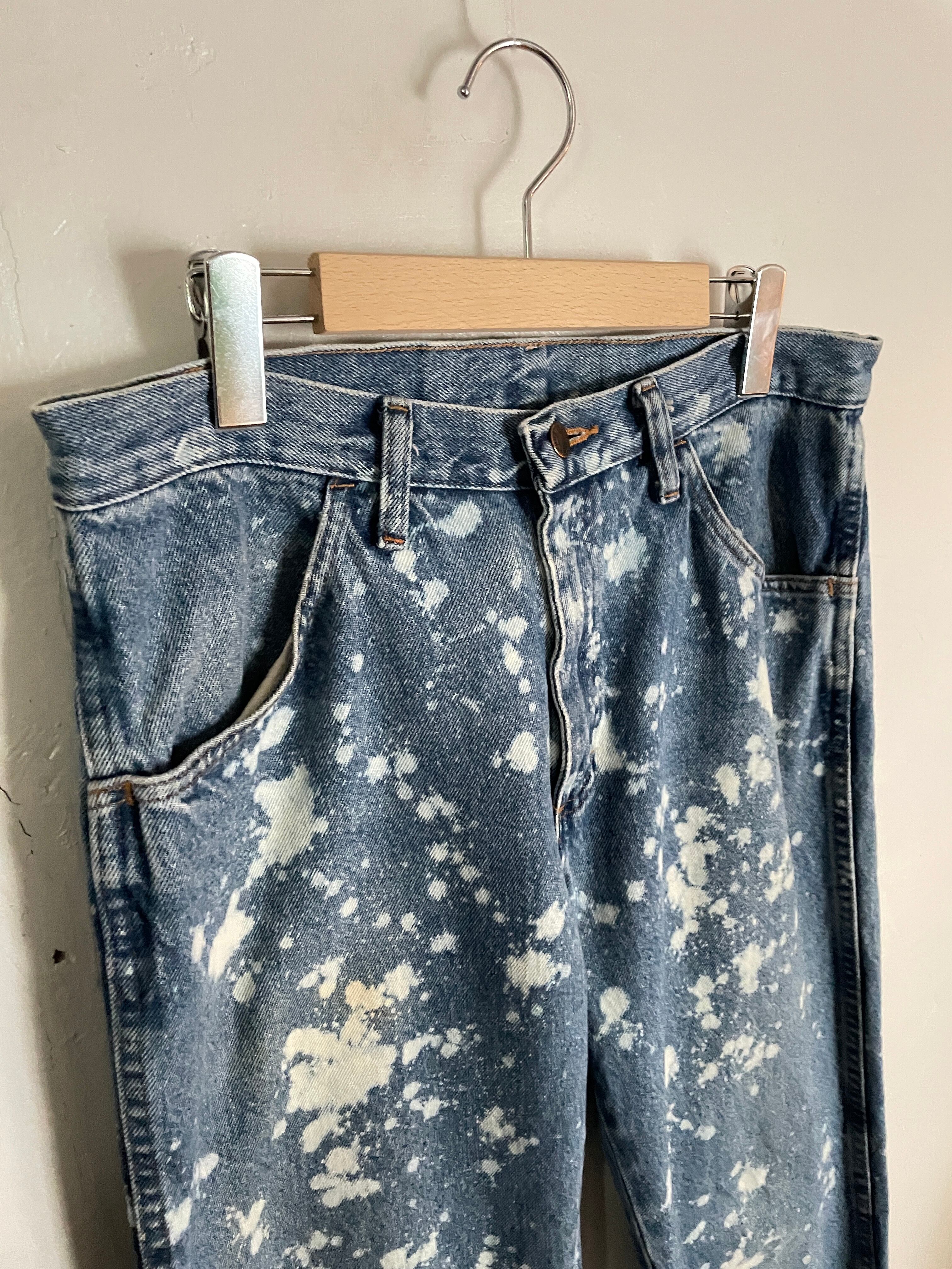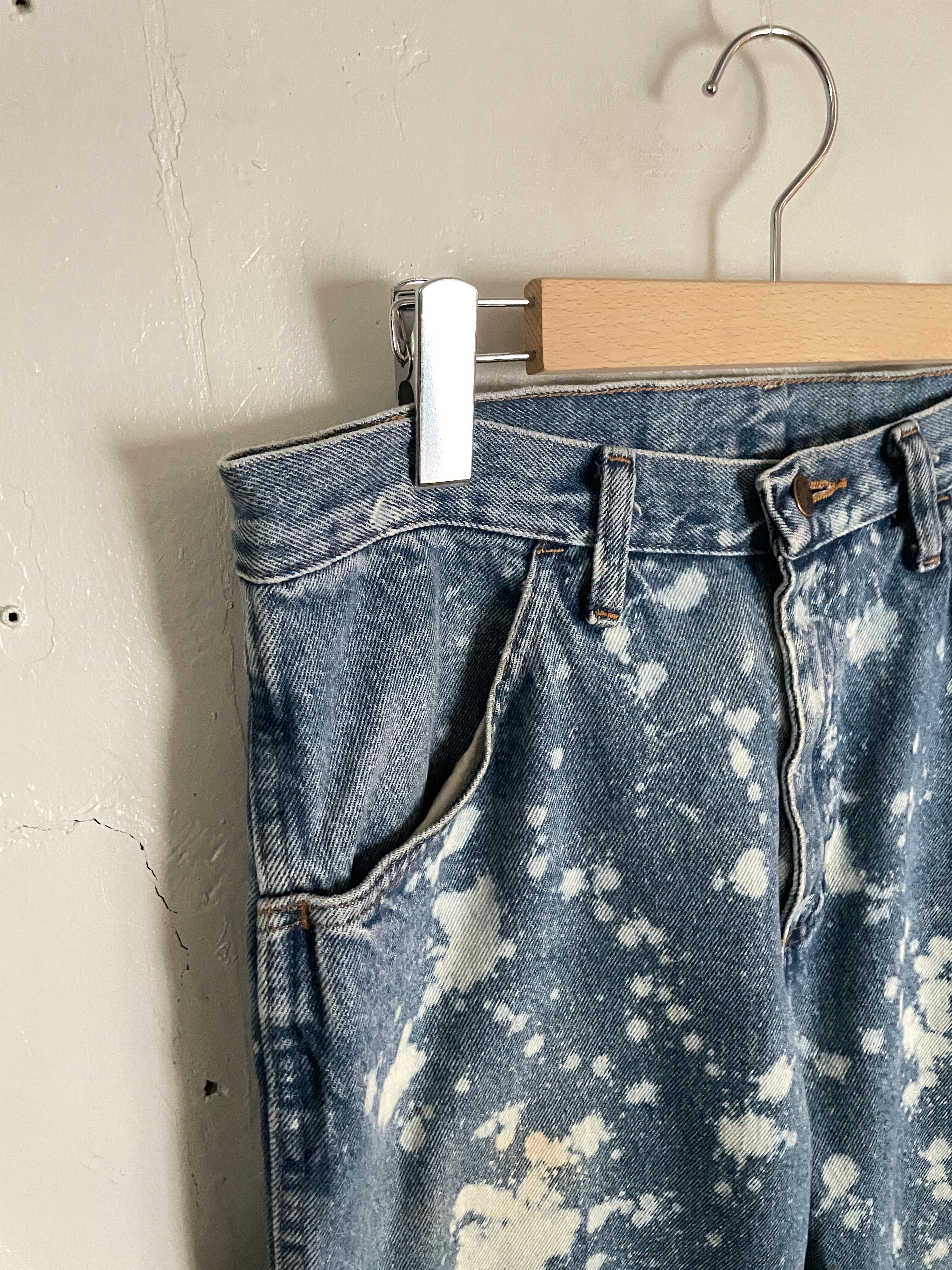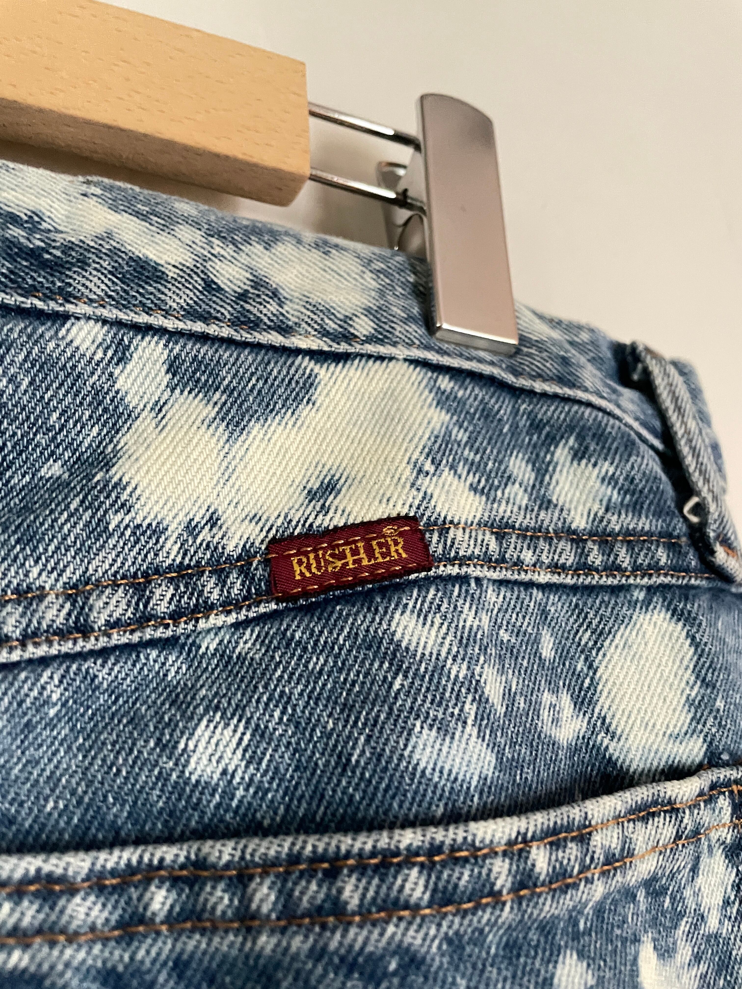 Old RUSTLER Blue Bleach Processing Cut Off Design Denim Pants