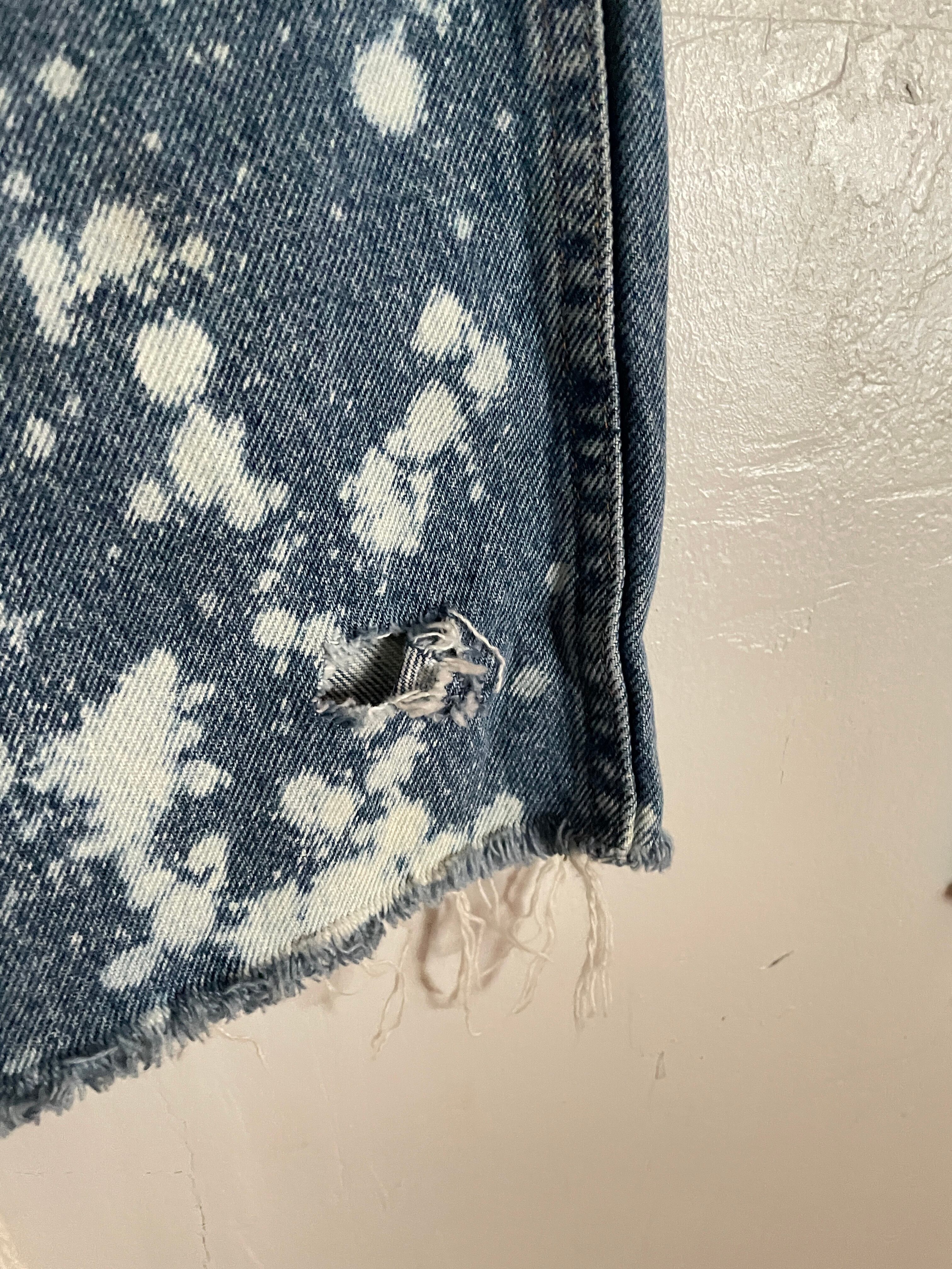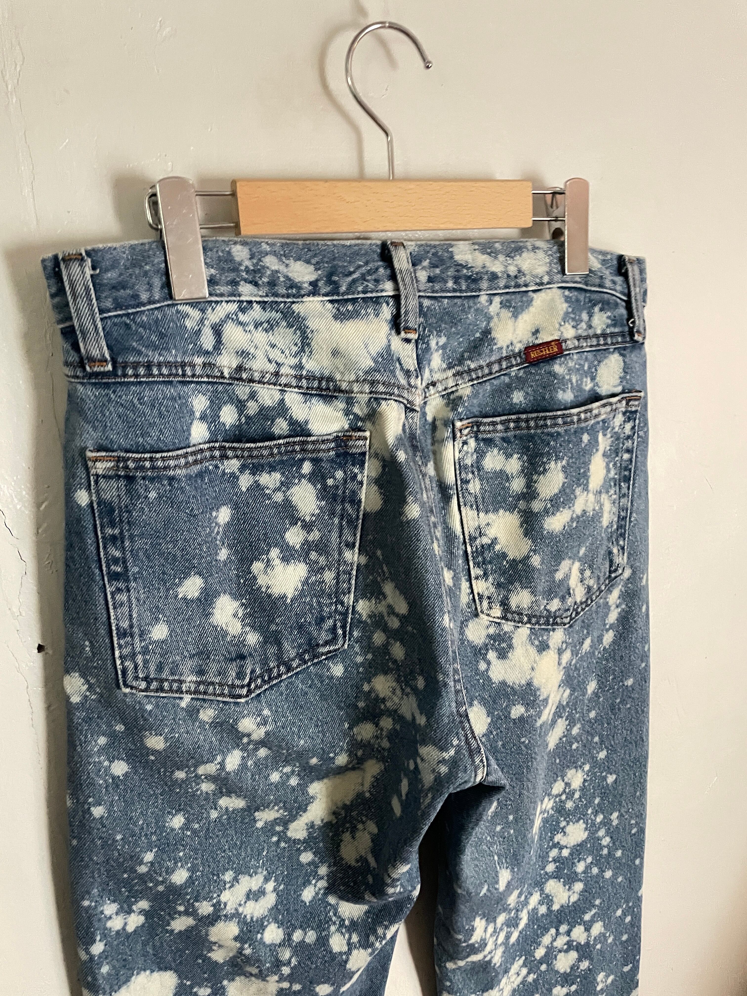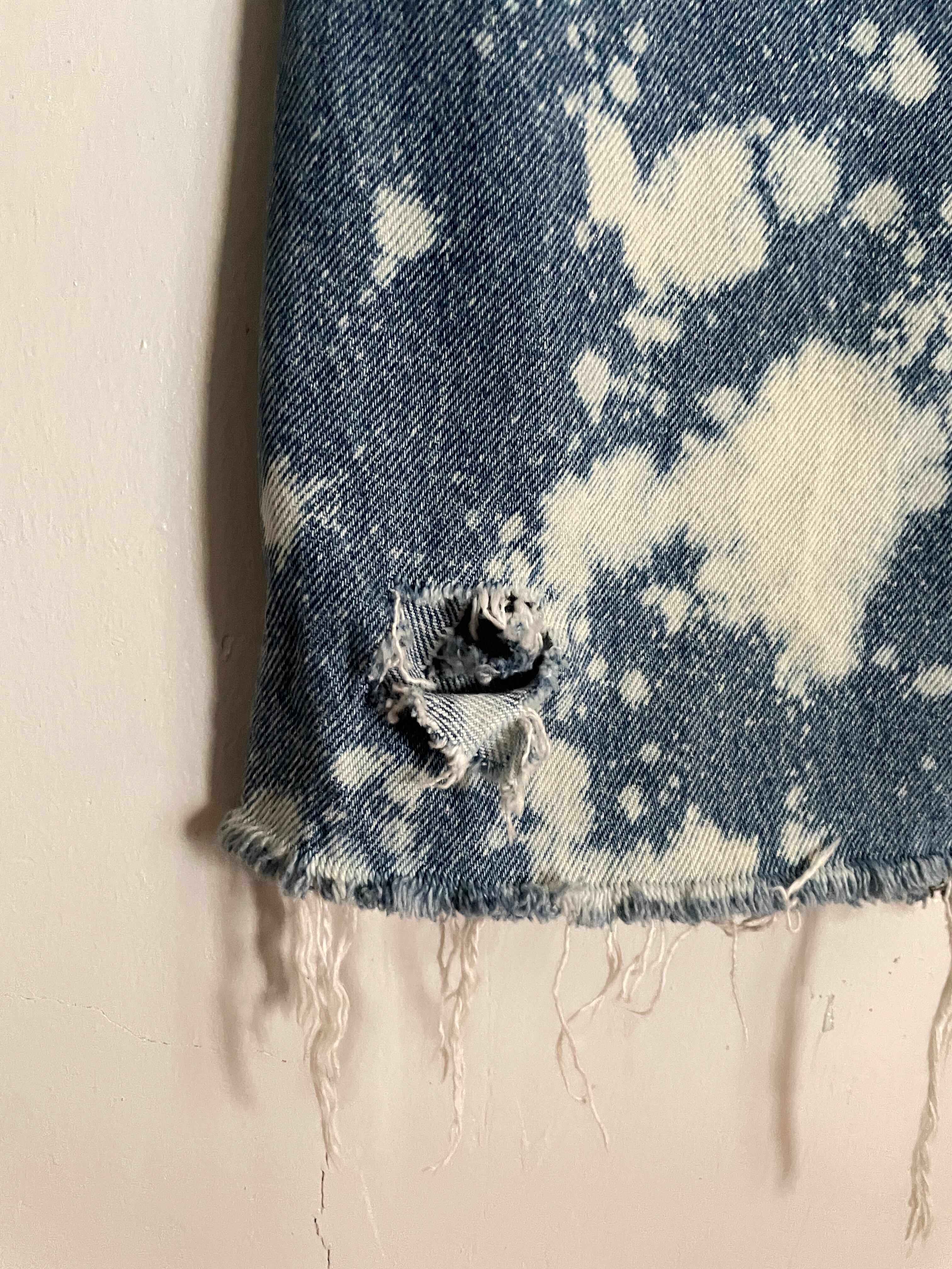 Old RUSTLER Blue Bleach Processing Cut Off Design Denim Pants