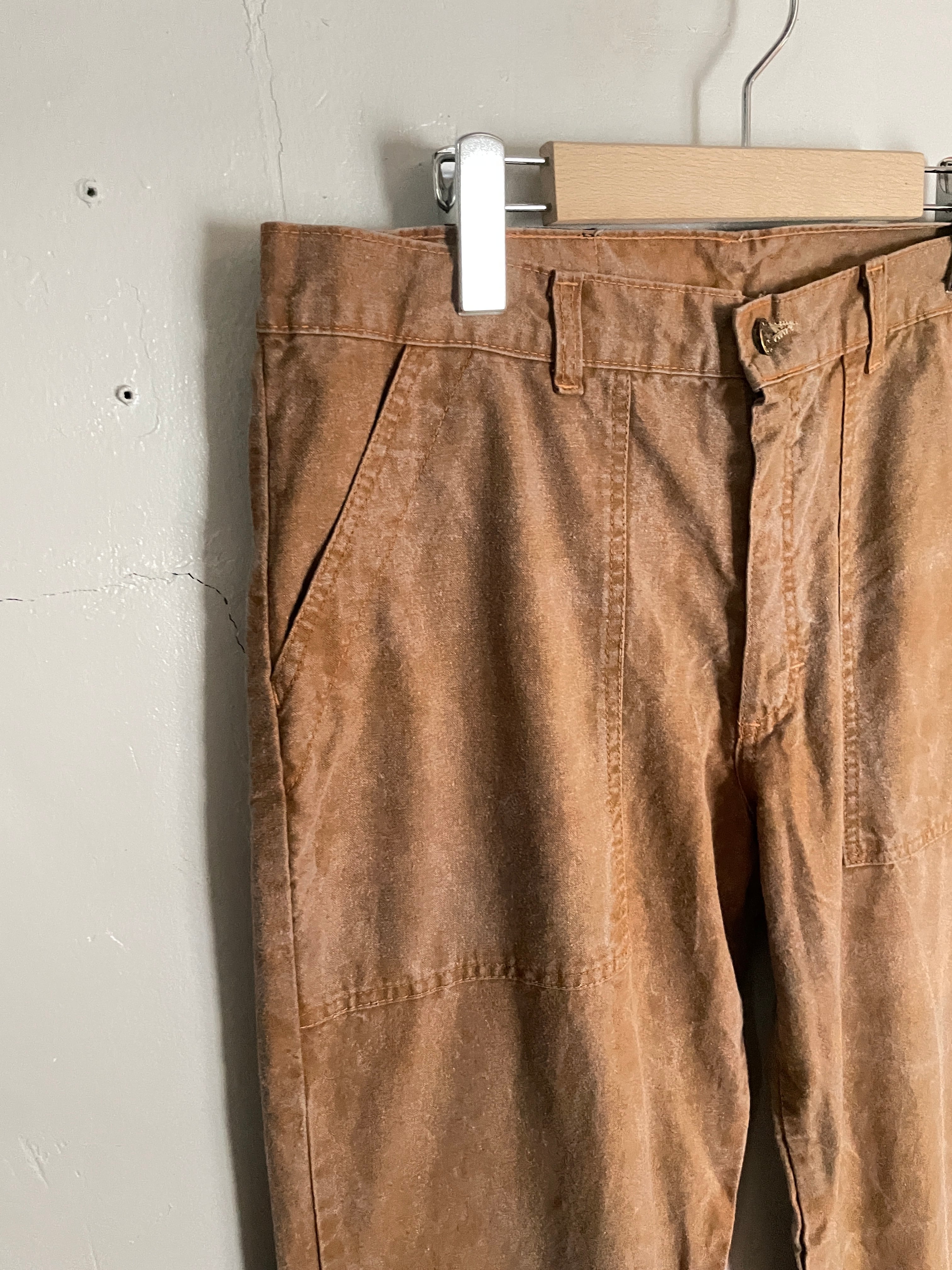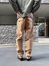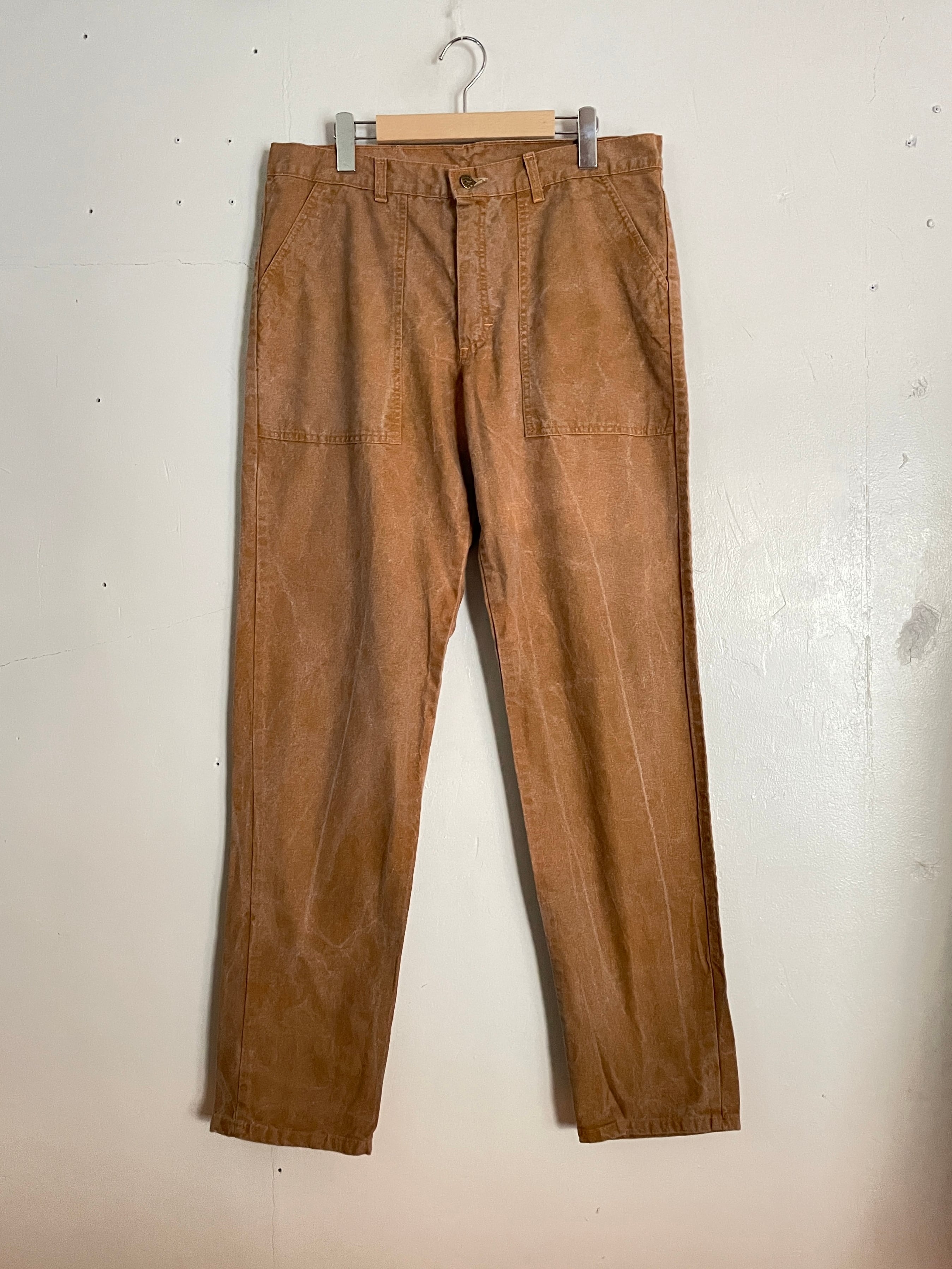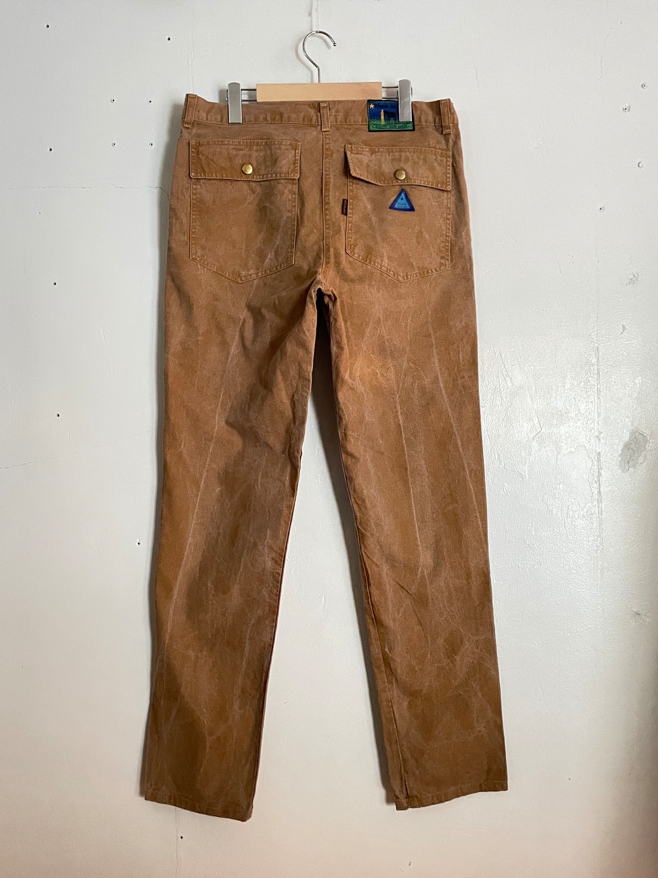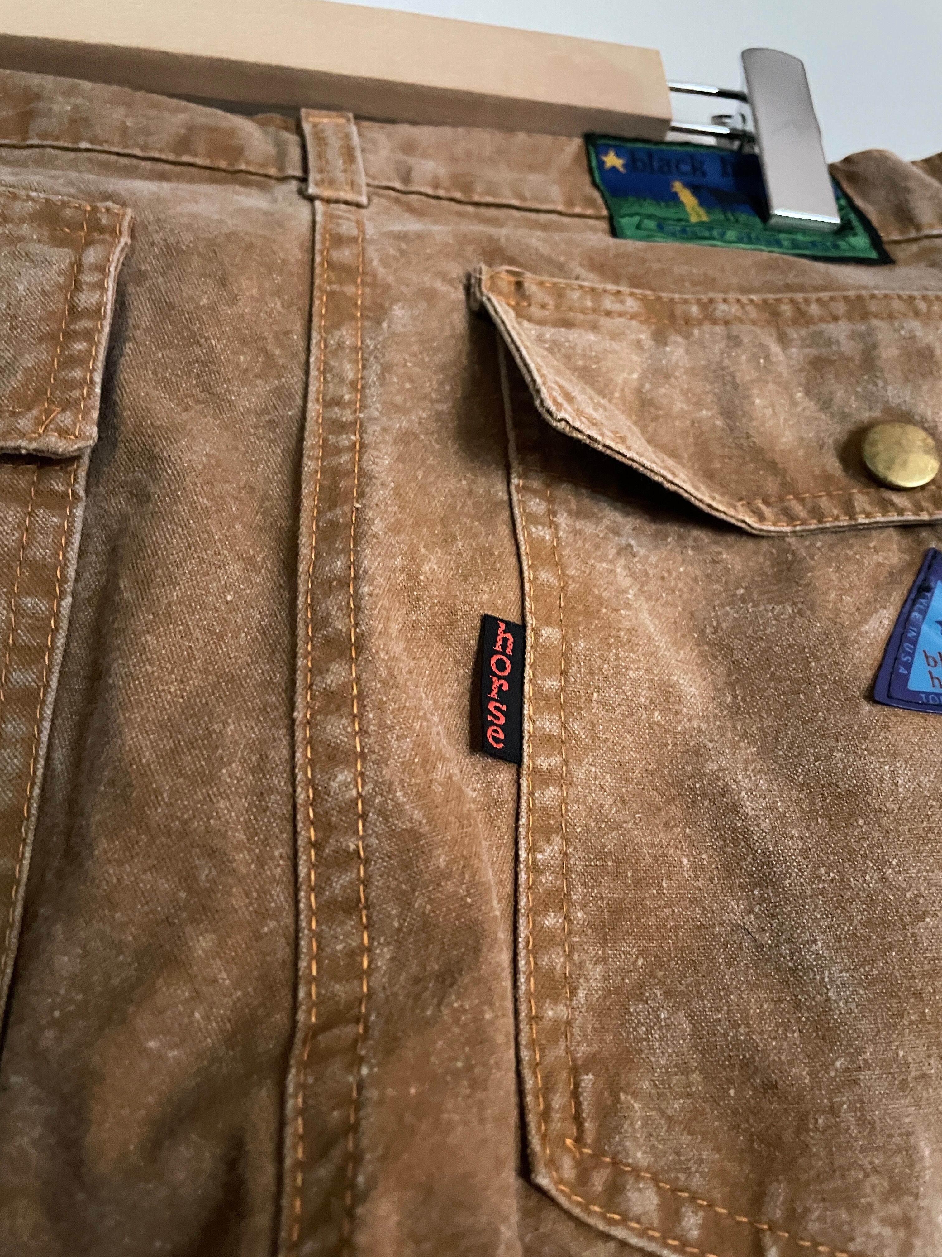 雰囲気抜群のフェードしたブラウンカラーが魅力的な、ブラックホースのワークパンツ。掠れたような色味が堪らなくかっこいいです。深めなポケット付きで、バックポケットはスナップタイプ。ブランドのゴムパッチや紙パッチもデザインが凝っていてお洒落です。ガツンとした太さのあるワイドなテーパードシルエット。パキッとしたタフなコットン素材なので、今の時期にはもってこいのパンツです。