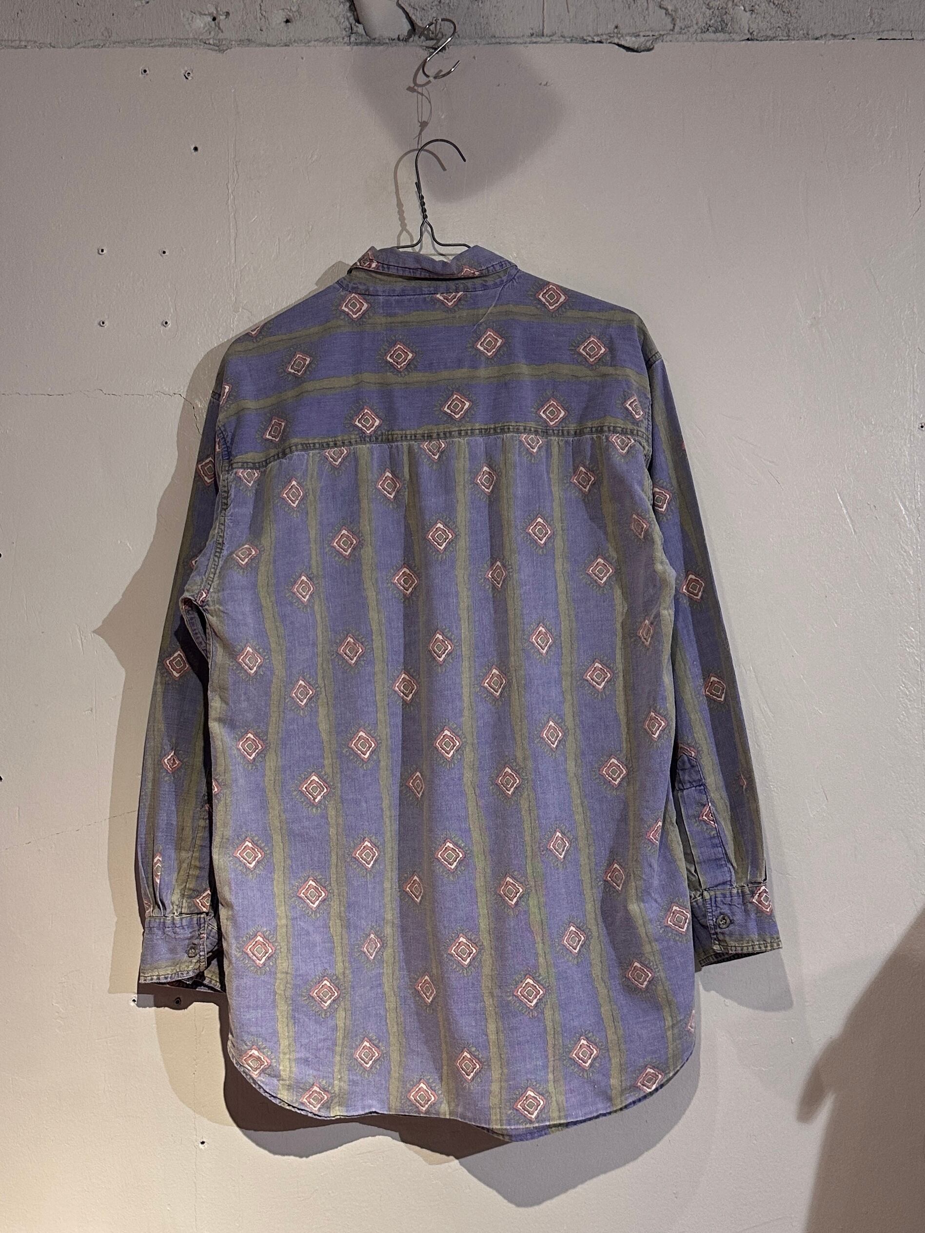 総柄のデザインが可愛い長袖シャツ。独特な雰囲気があり、綺麗めなスタイルにもカジュアルなスタイルにも落とし込めそうなシャツです。テーラードジャケットの下やレザージャケットの下に入れて着るのがベストな合せだと思います。なかなか人と被りにくいデザインなので、唯一無二なスタイルを確立したい方にはもってこいなアイテムです。