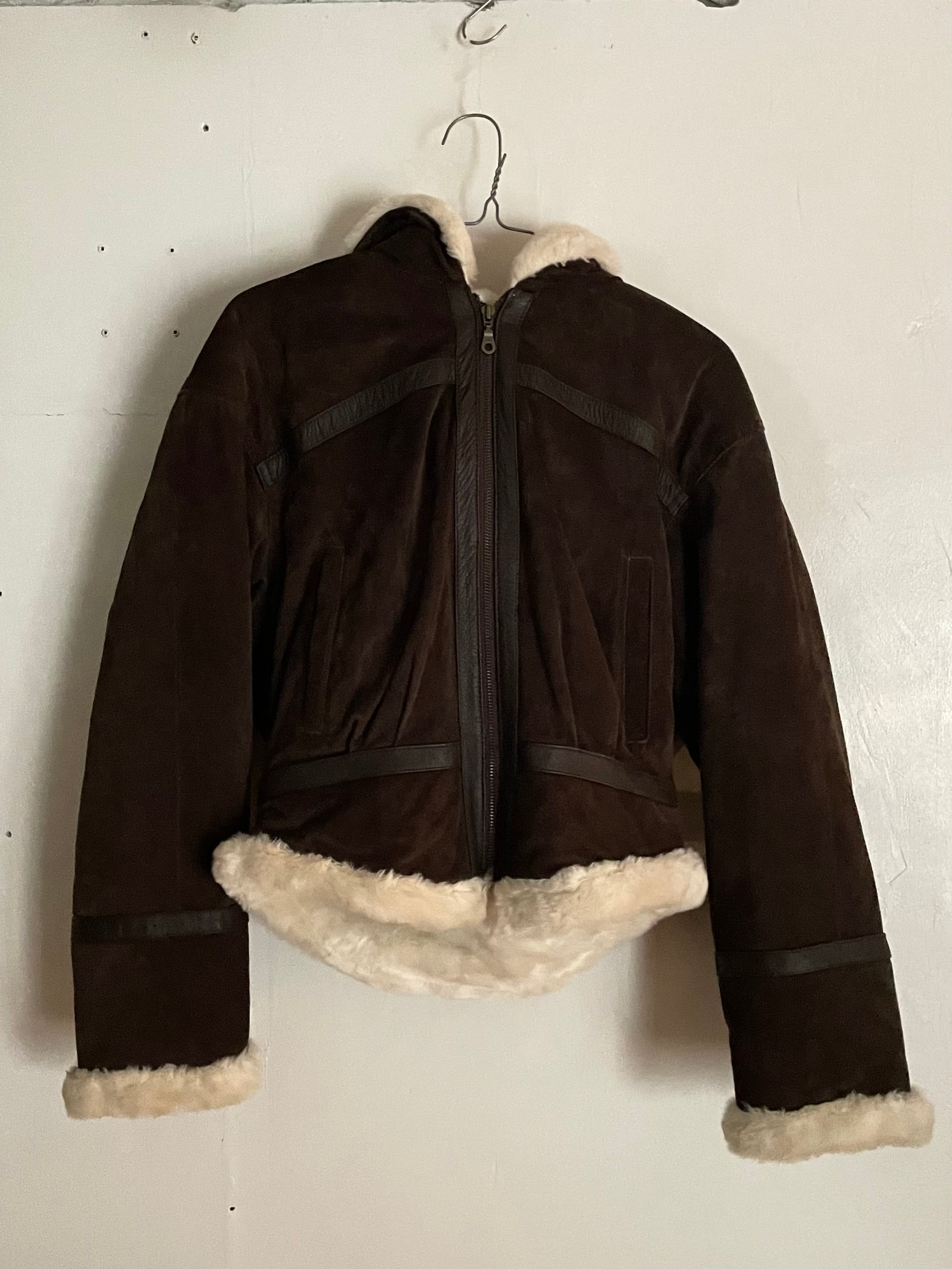 ショート丈のシルエットがバランス良く、スタイルをすっきり見せてくれるムートンジャケット。レザーの切り替えデザインや、バックスタイルの裾の中央が長めのデザインになっていたり、さりげない個性が魅力的です。柔らかいムートン素材が暖かさと高級感をプラスし、フード付きでカジュアルさも程よくプラスされています。