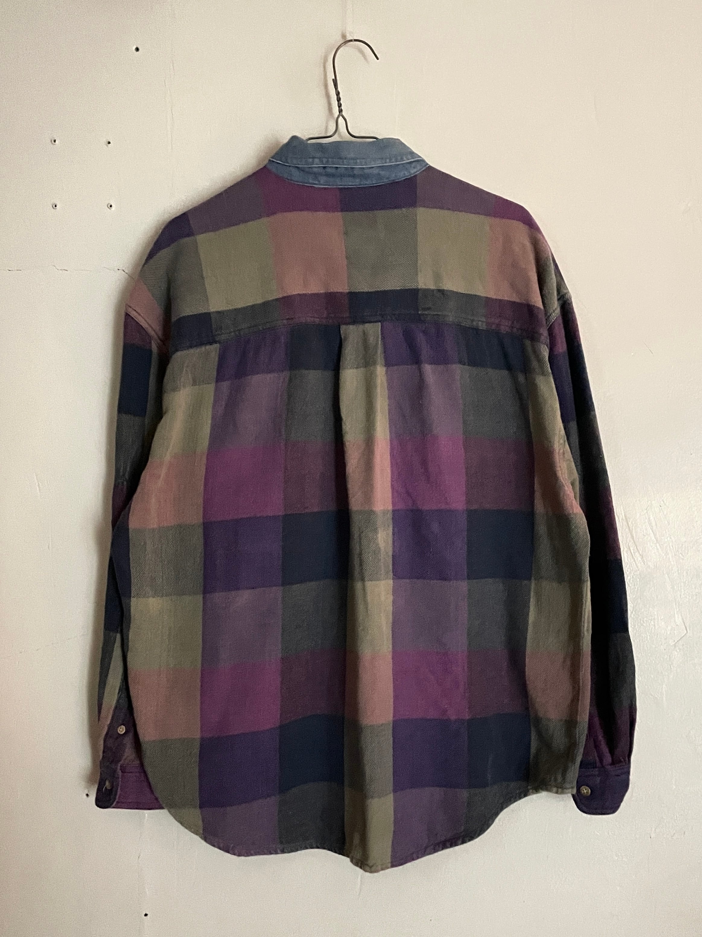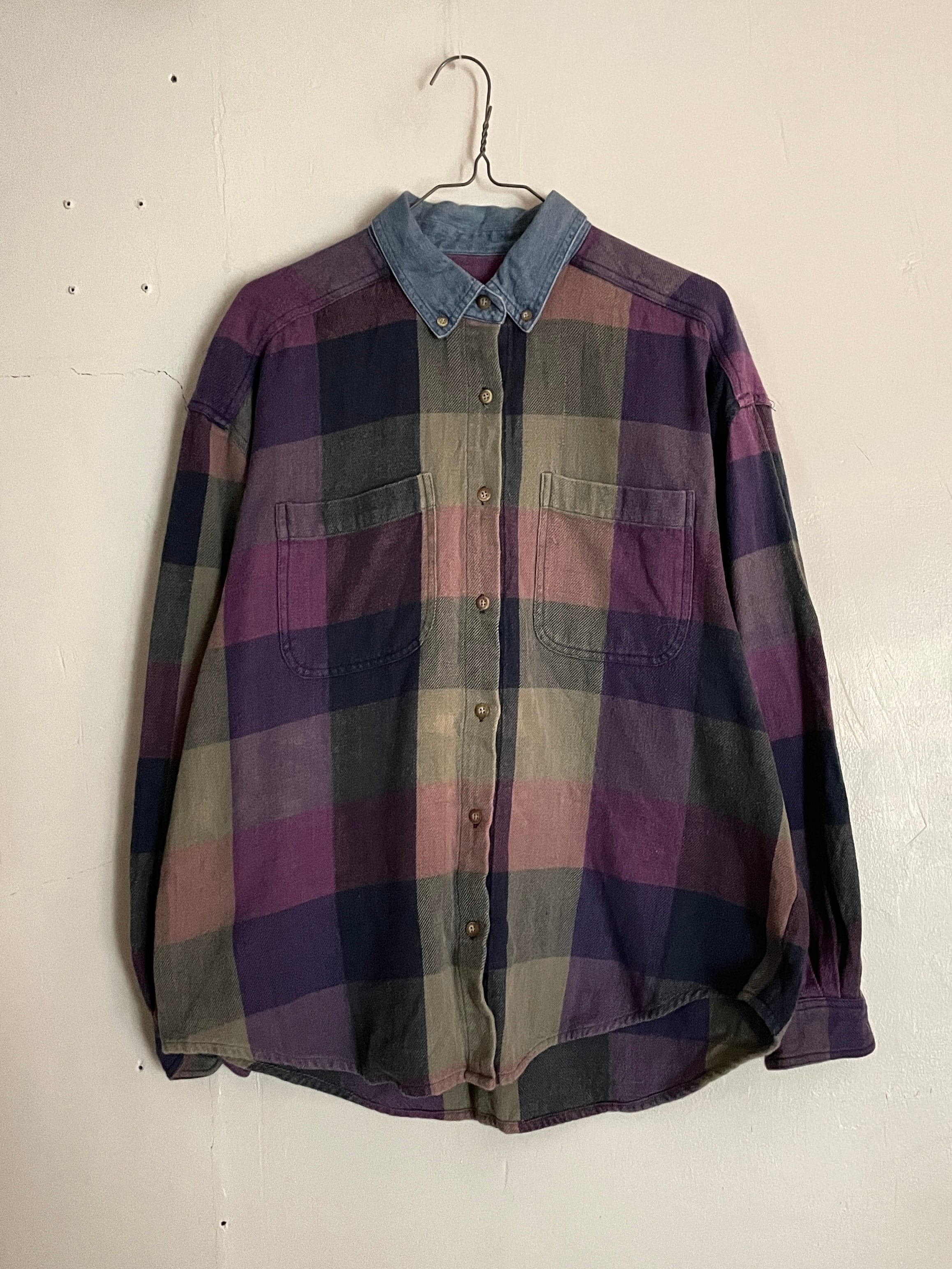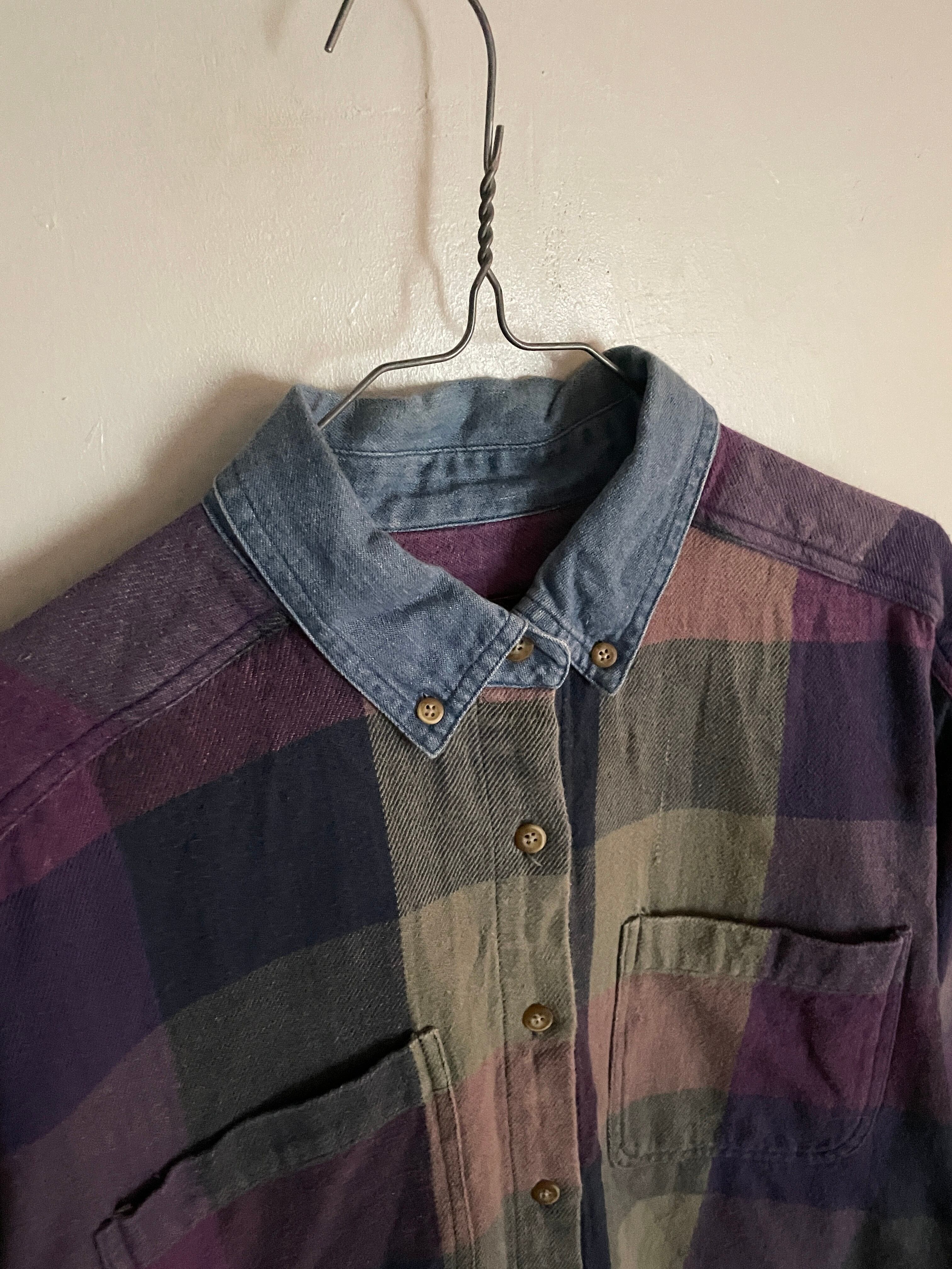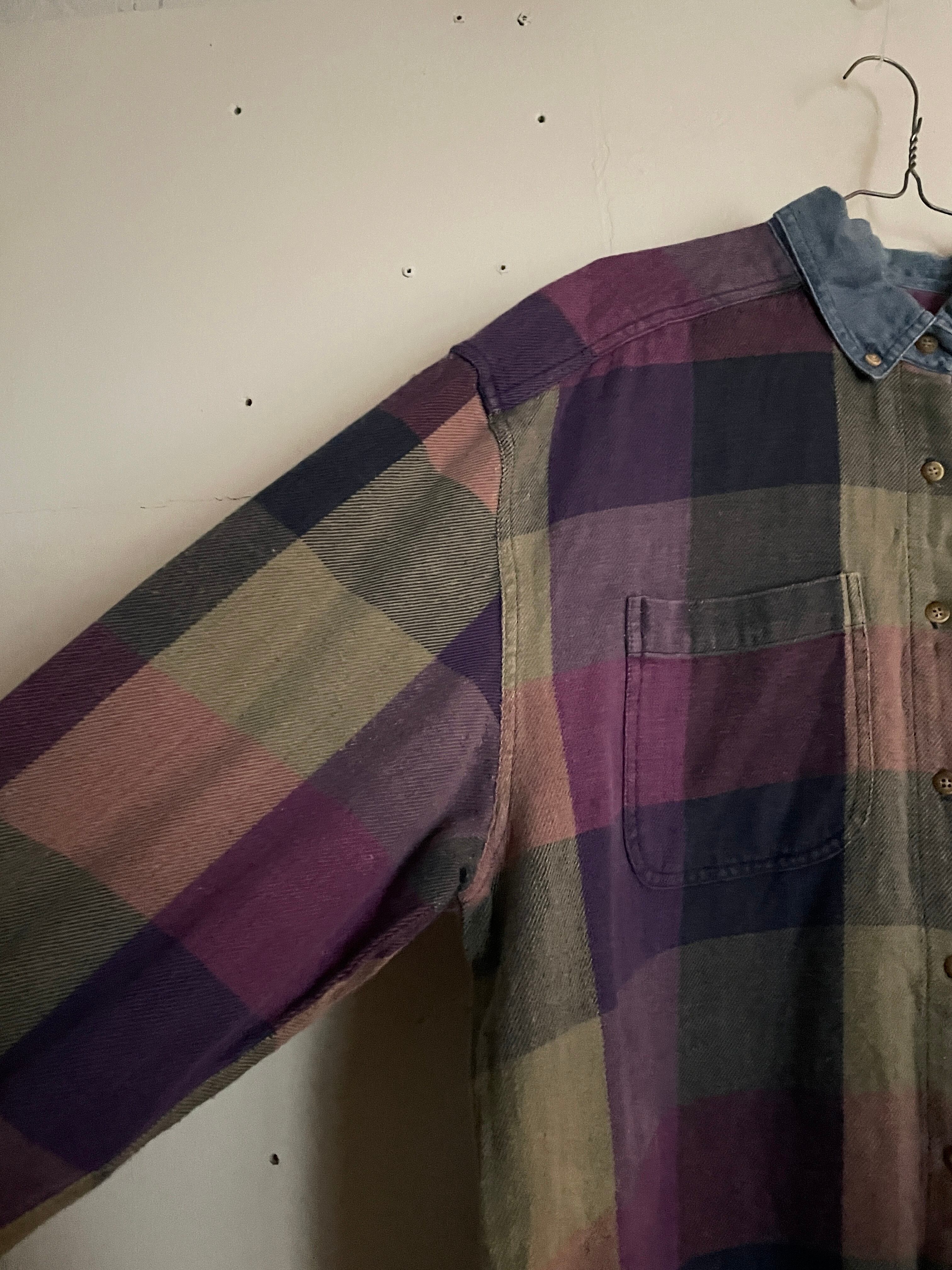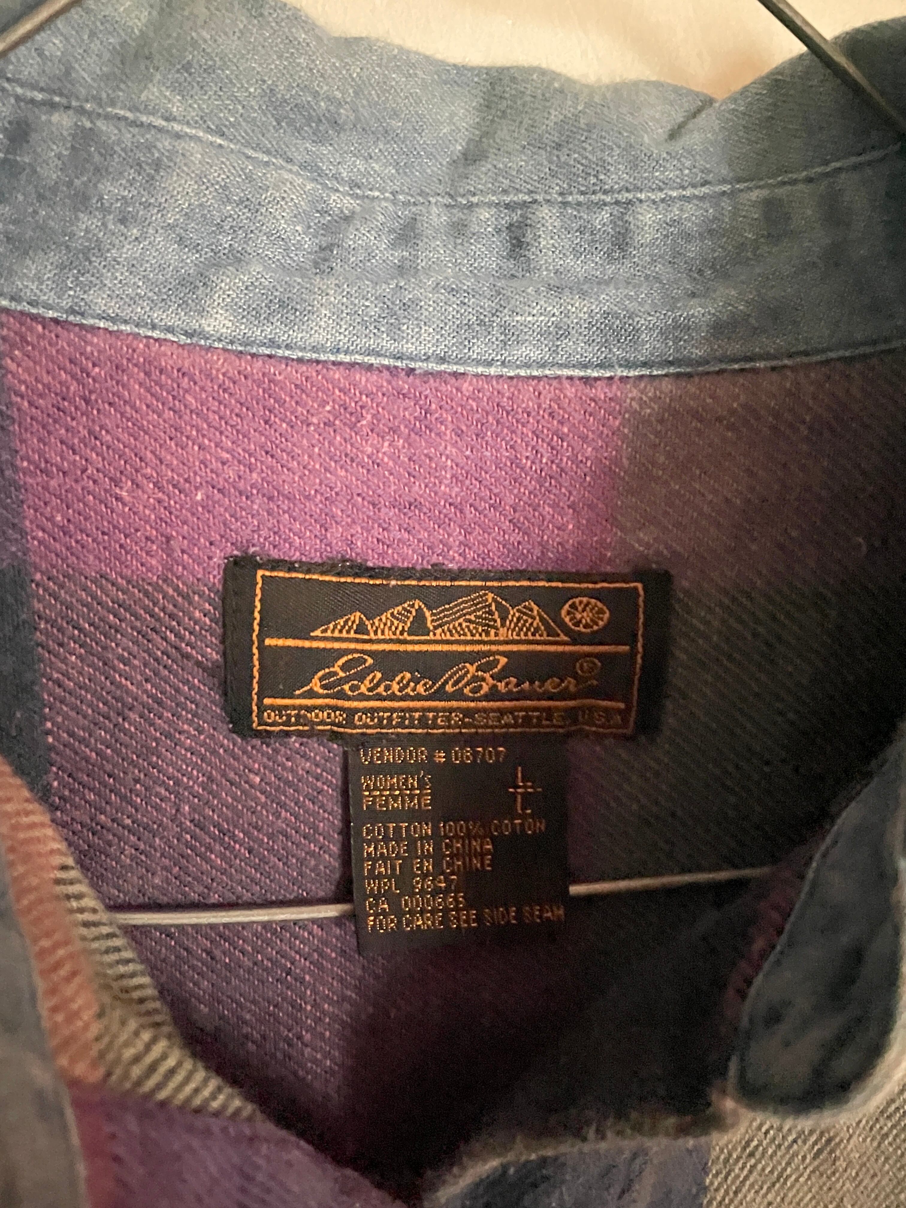 Old Eddie Bauer Denim Collar Flannel Check Pattern L/S Shirt