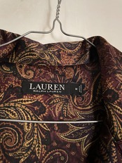 ミステリアスな雰囲気が漂う、ペイズリー柄デザインが魅力的な、ラルフローレンのパジャマシャツ。胸元にはポケッツ付きで、さりげない刺繍デザイン。滑らかなポリ素材なので、着心地抜群です。首元は開襟タイプで、色気のあるディテールになっています。様々なファッションの良いアクセントになり、良い抜け感を出してくれる1着です。