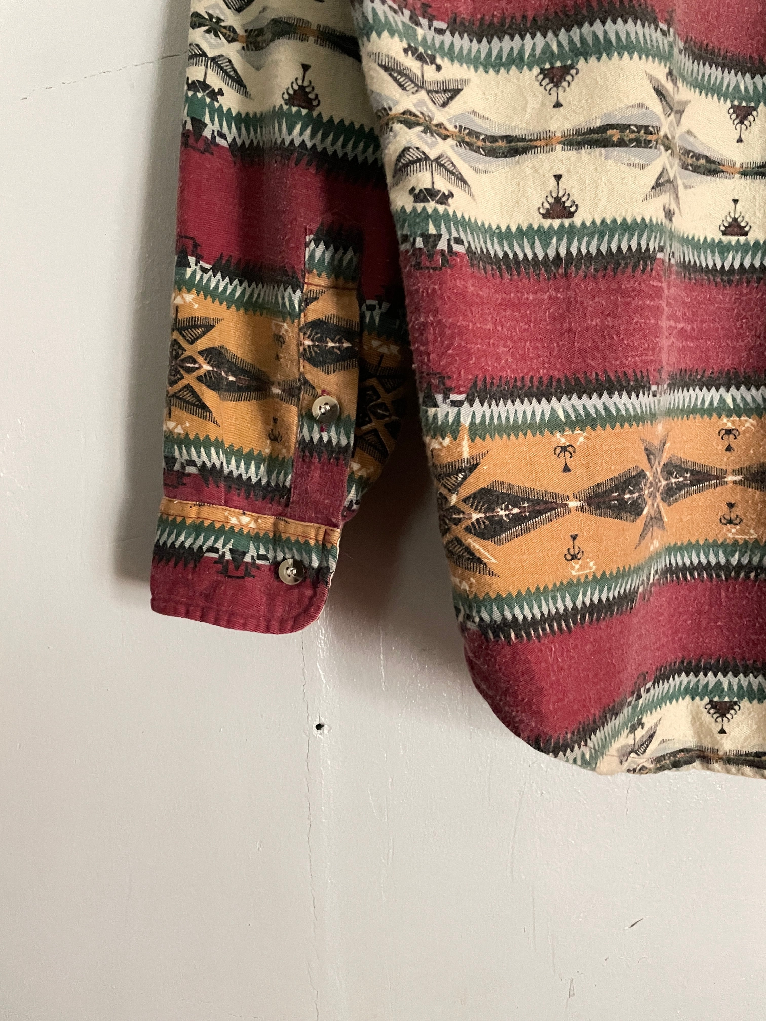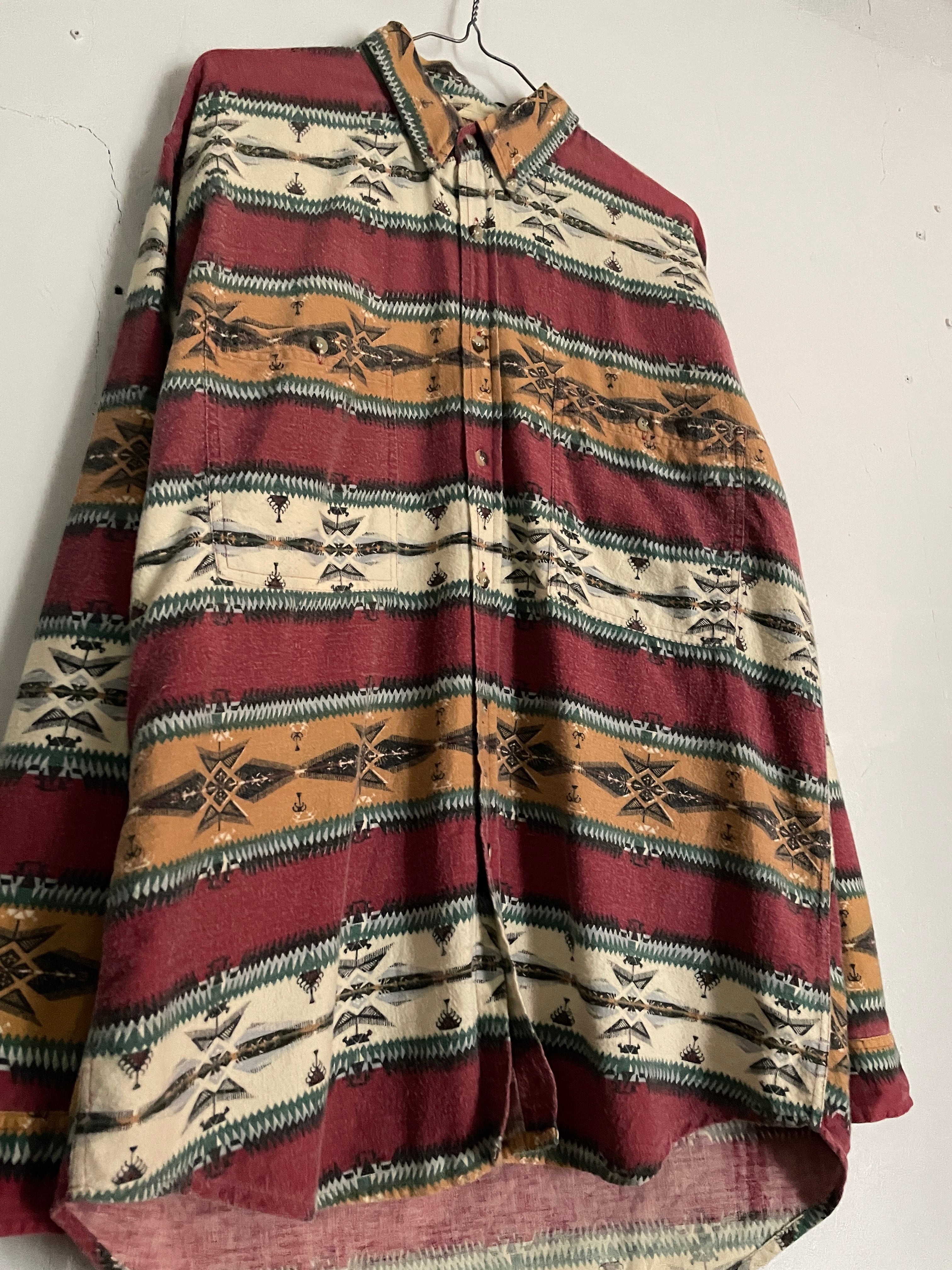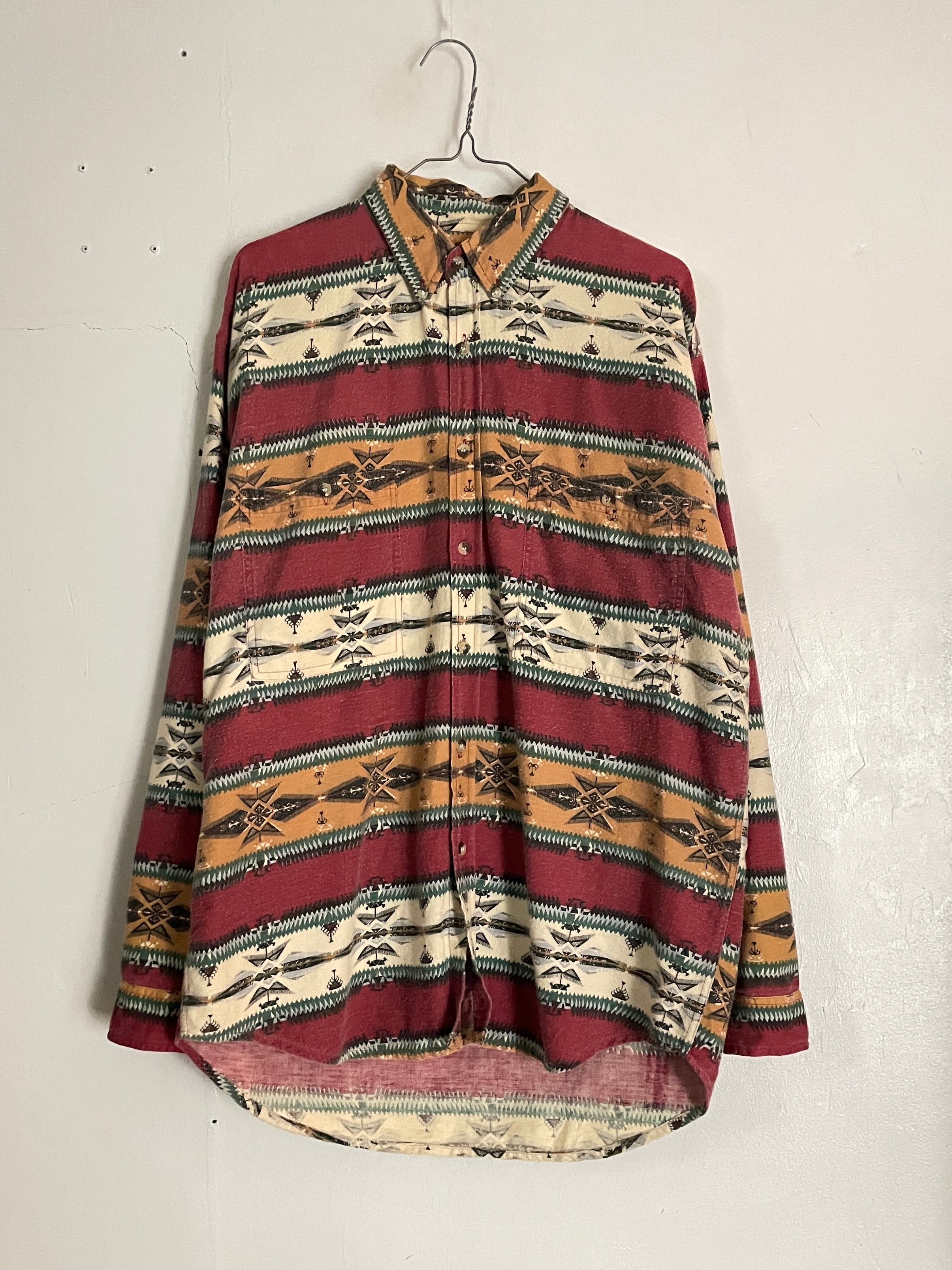 Old NORTHWOODS Native Pattern Design Cotton L/S Shirt