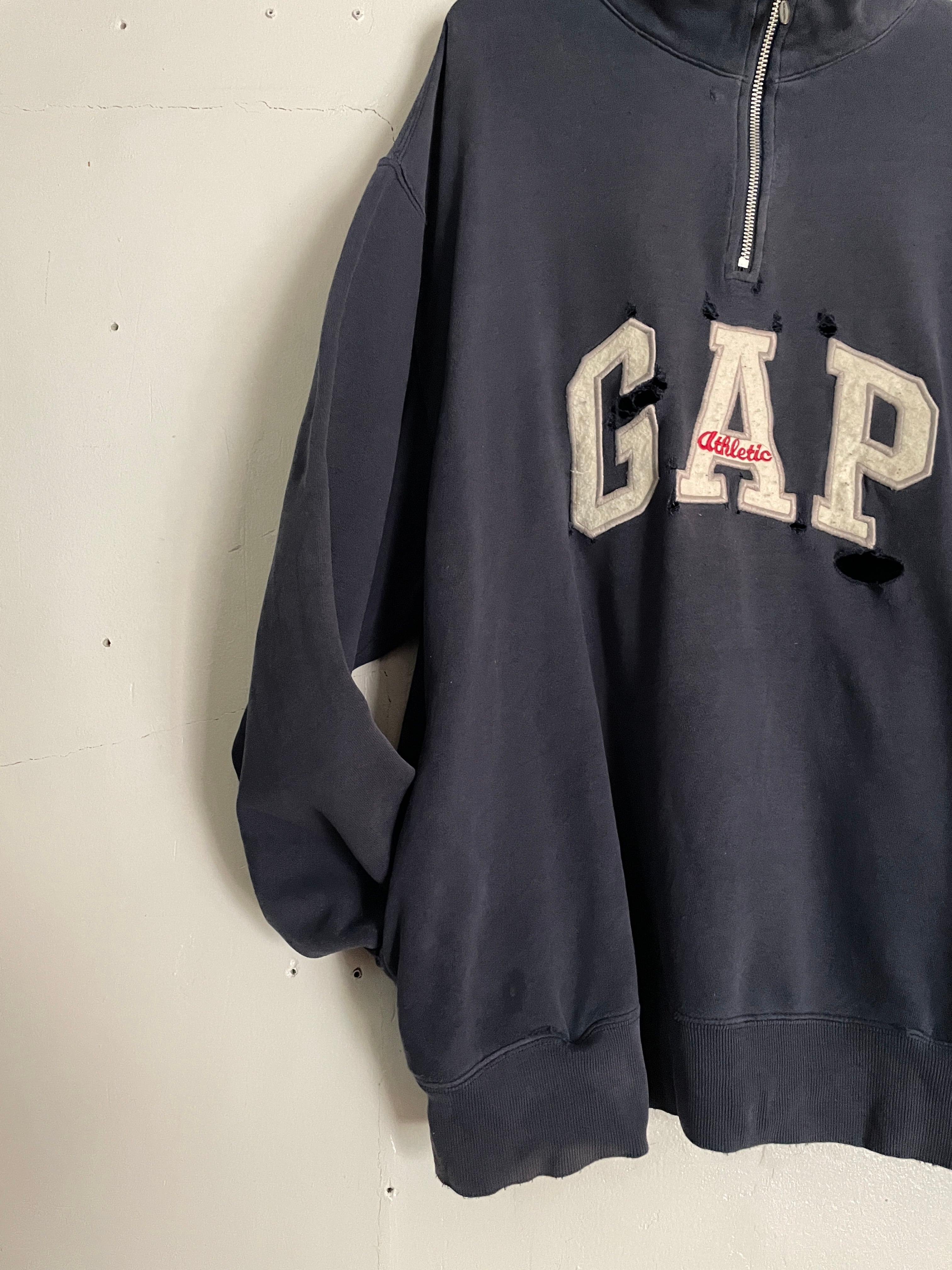 Old GAP Navy Logo Embroidery Damage Half Zip Sweat Shirt