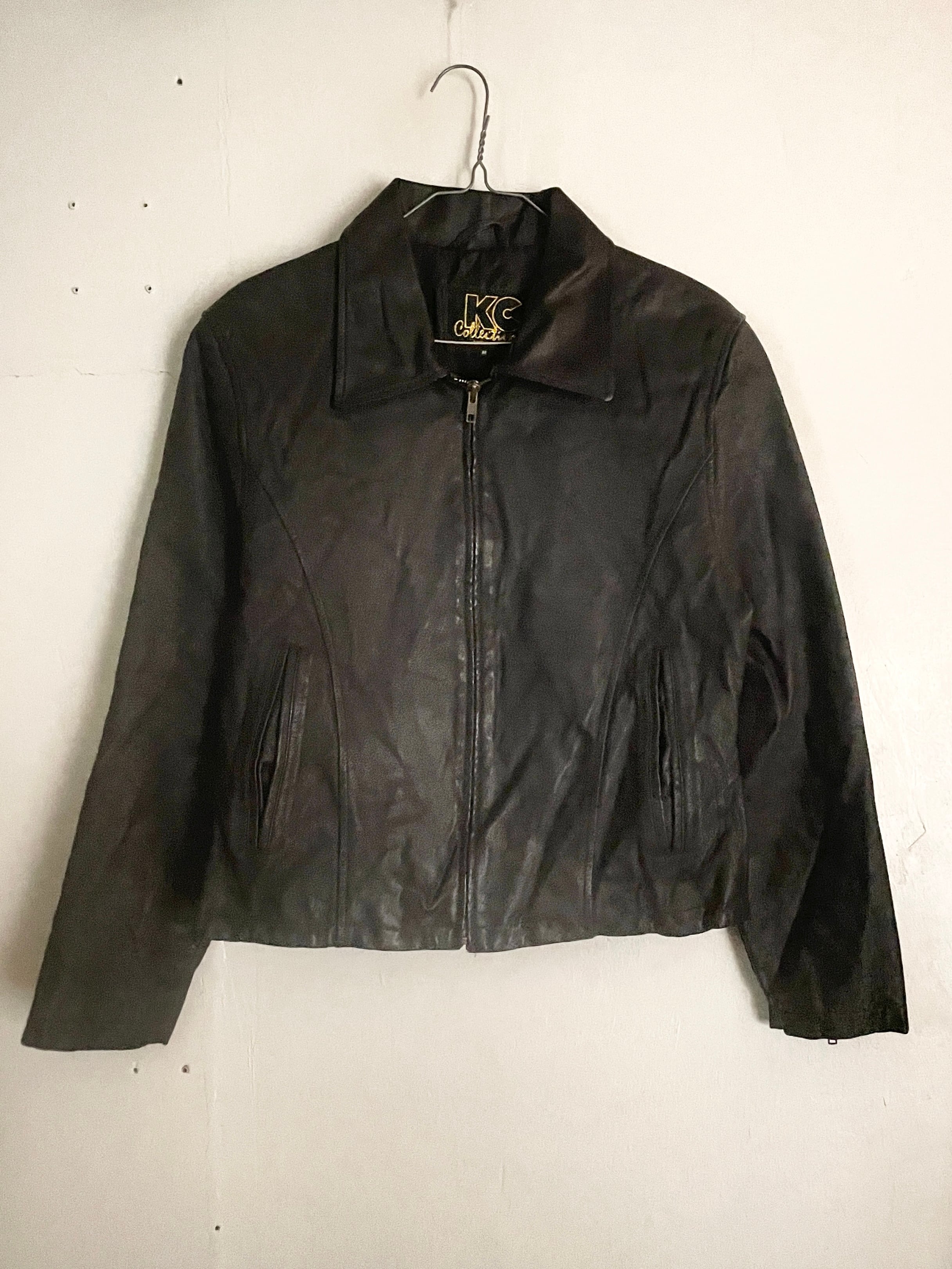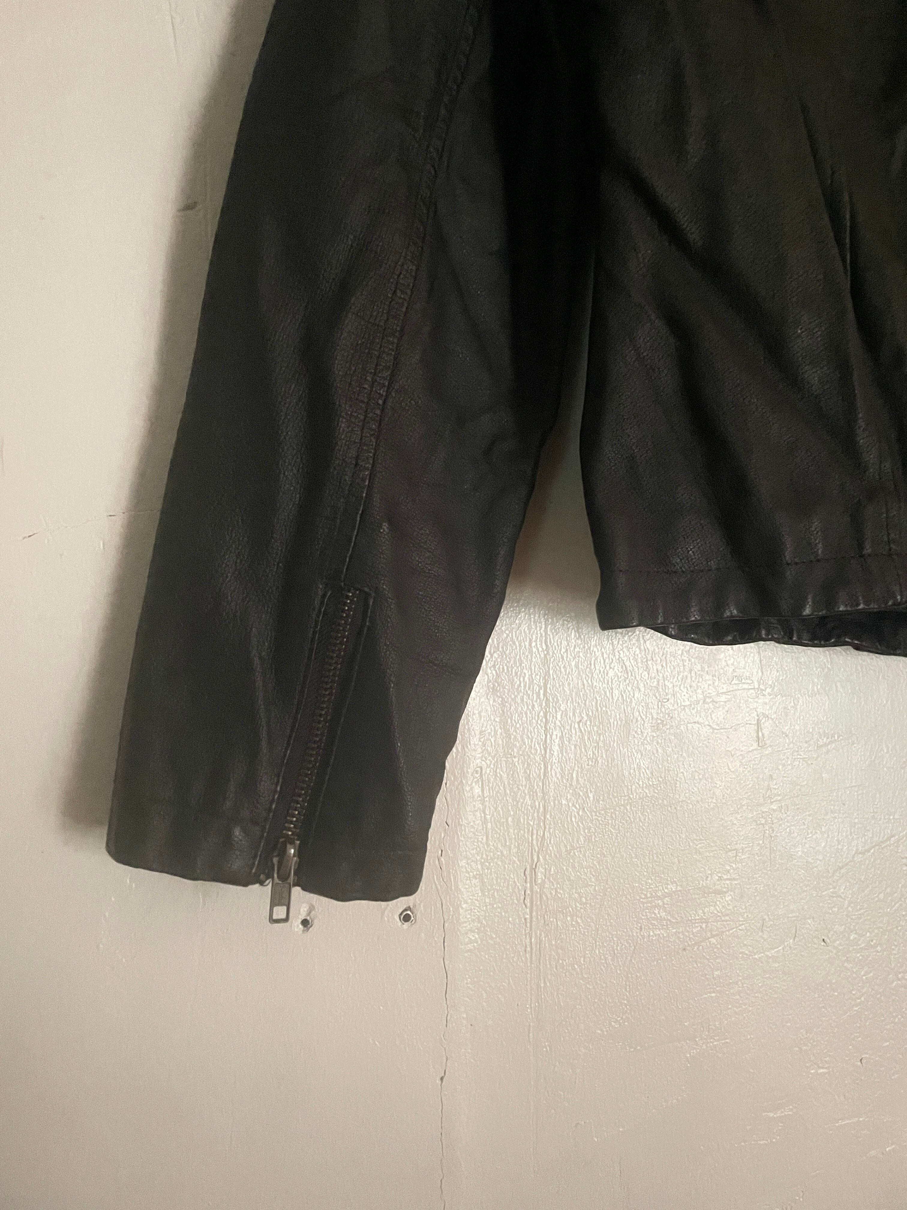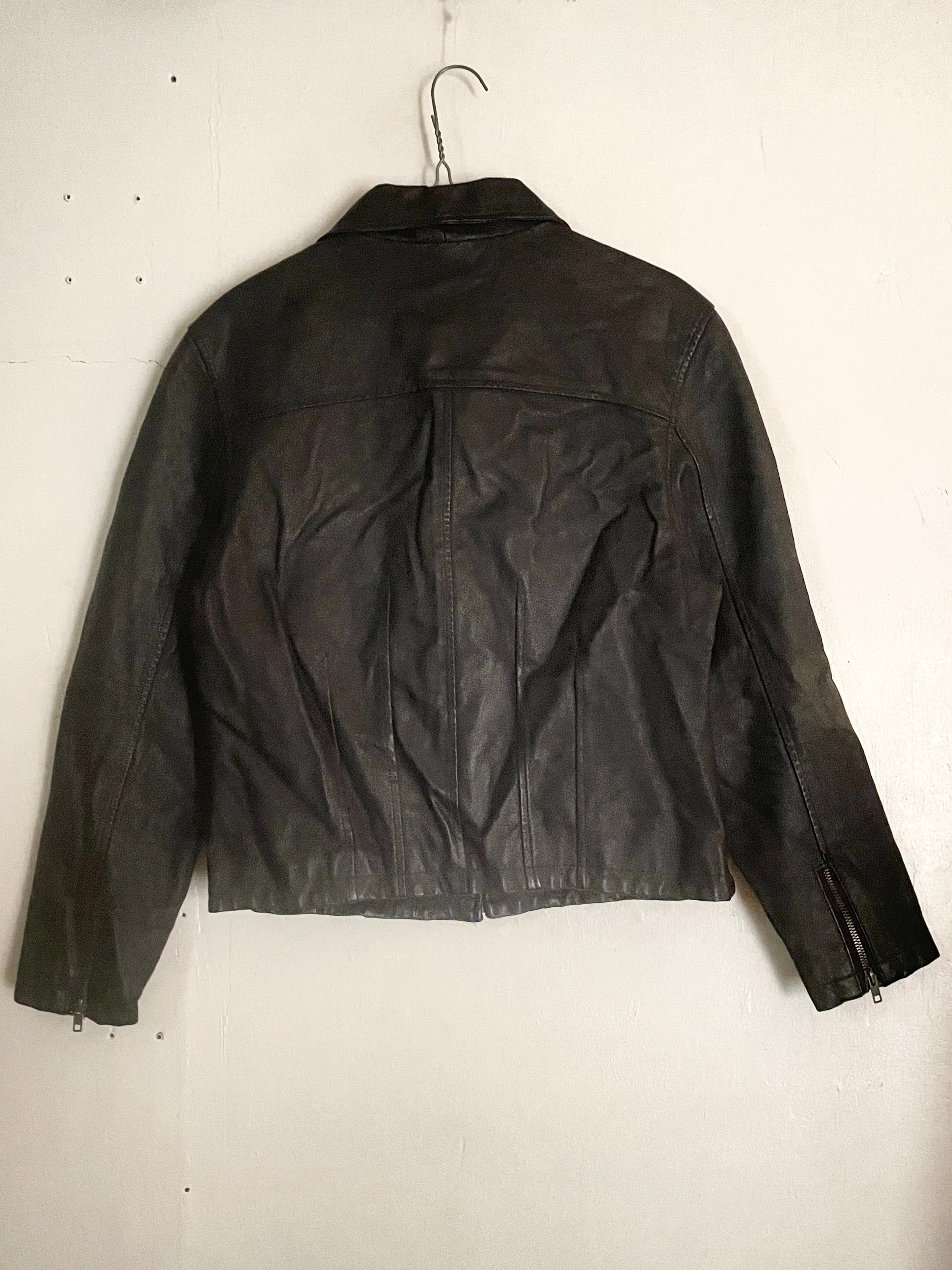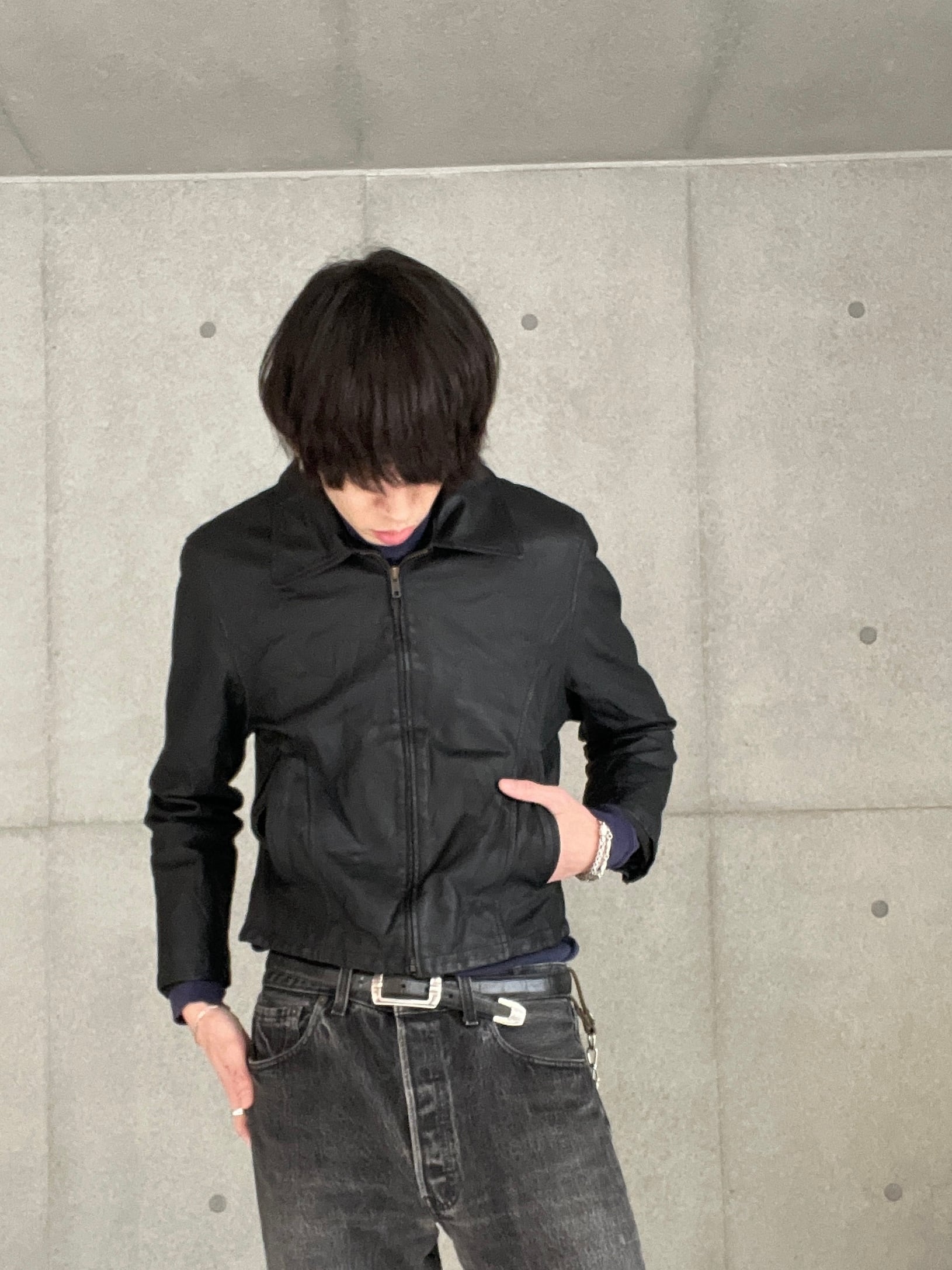やや光沢感のあるブラックボディで、今っぽいタイトで短丈めなシルエットが魅力的な、レザージャケット。ジップタイプで一番使いやすいディテール。袖にはジップ付き。質の良いしっかりとしたレザー素材。今の時期には1着持っておきたいアイテムかと思います。女性の方にはもちろんですが、男性の方もピタッとタイトめに着てもかっこいいかと思います。