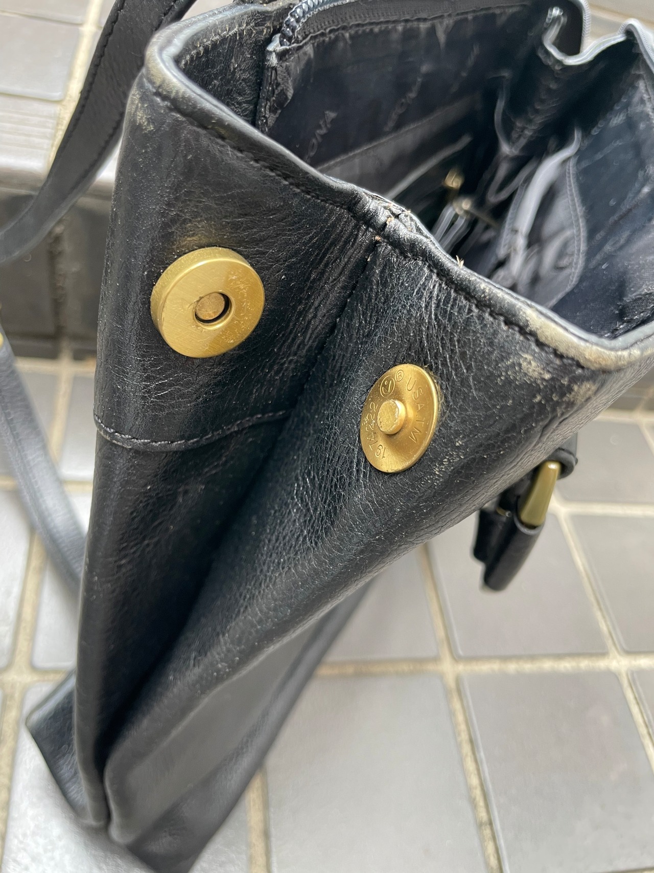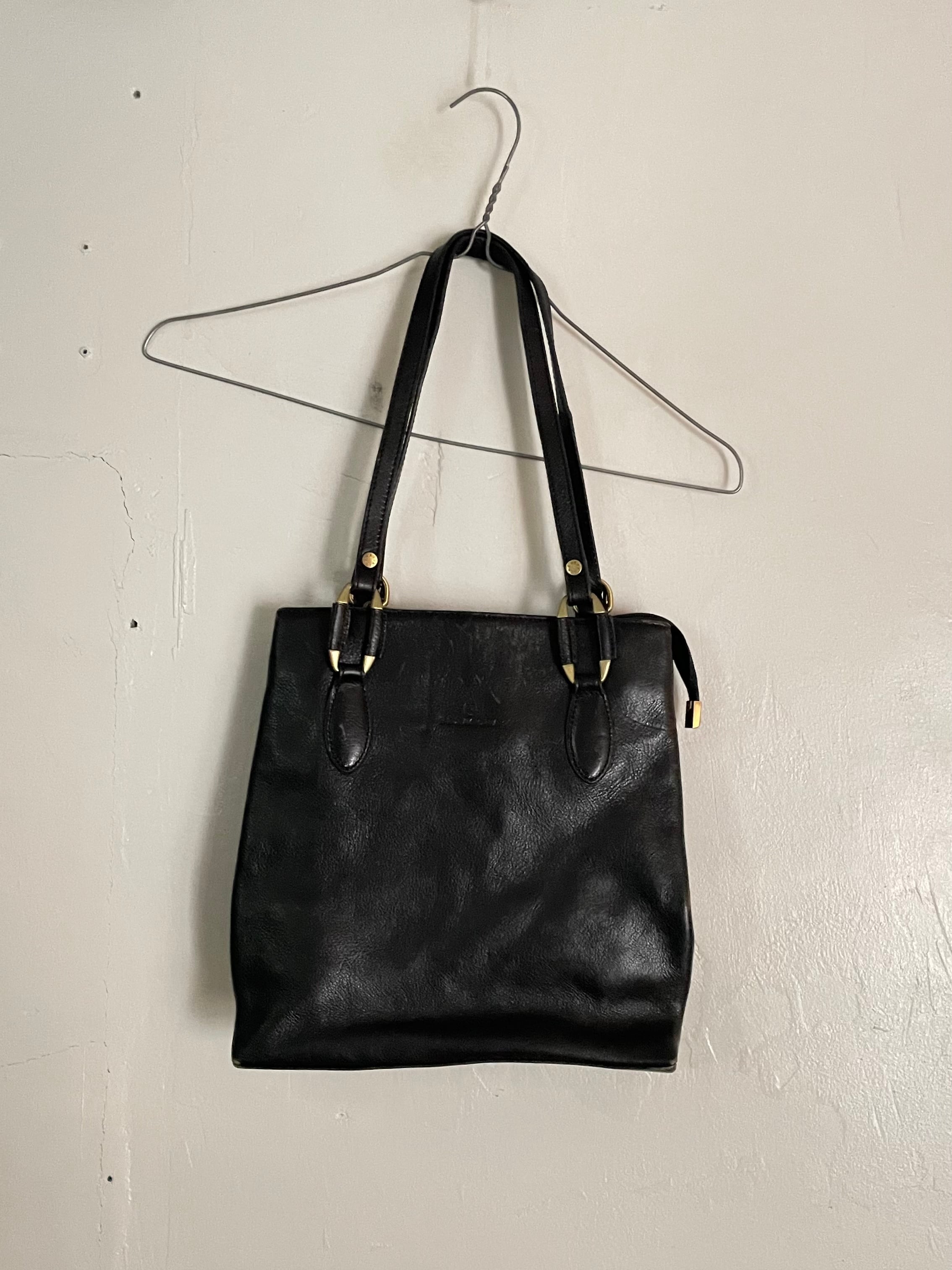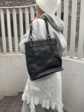 Old Black Leather Tote Bag