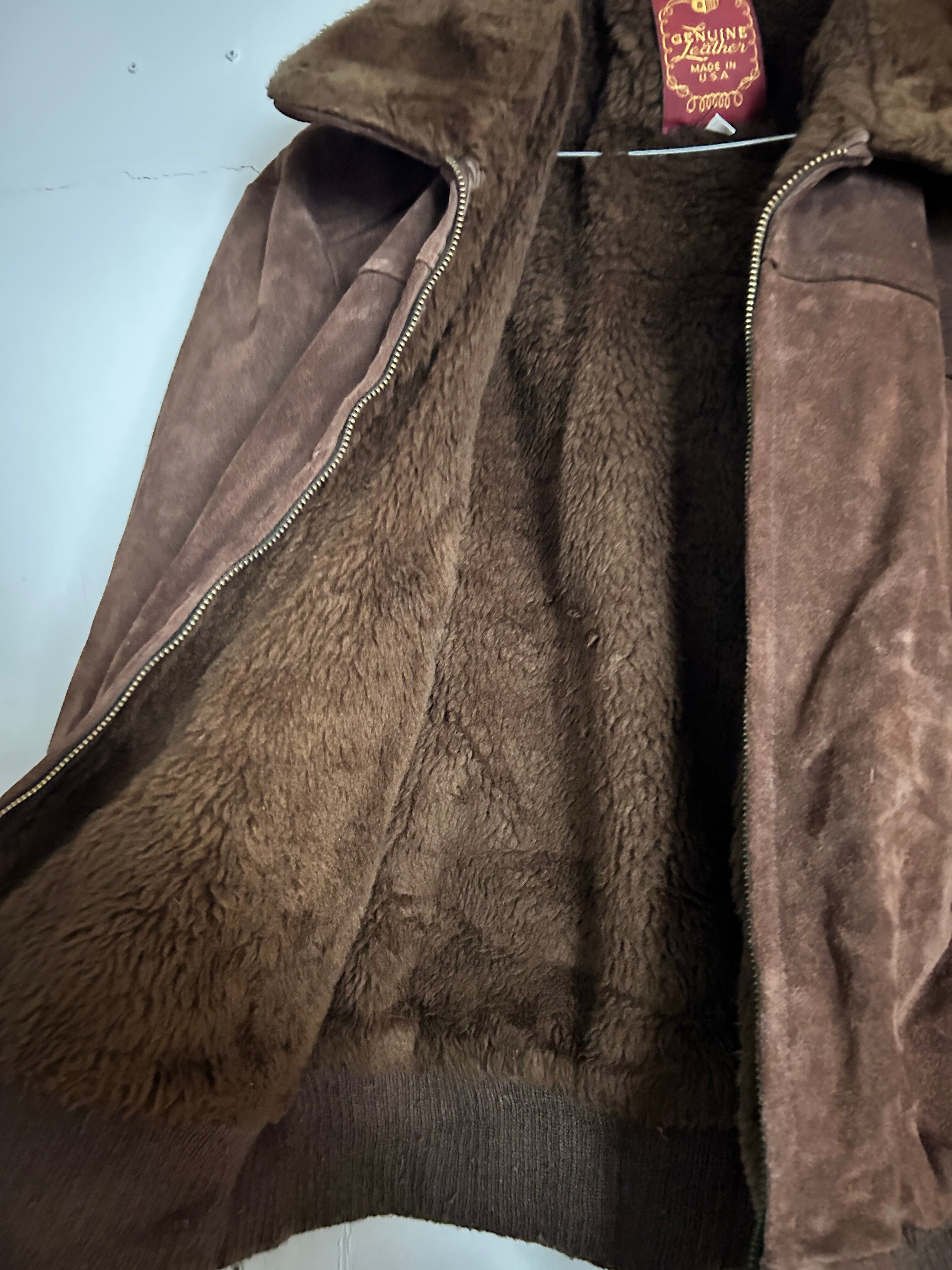 上質なスエードのレザージャケット。フライトジャケットA-2のような形です。短丈でバランスが取りやすく、デニムやスラックスとも好相性。表がスエードで裏地はボアの為、ボリューミーで防寒性も最強。
