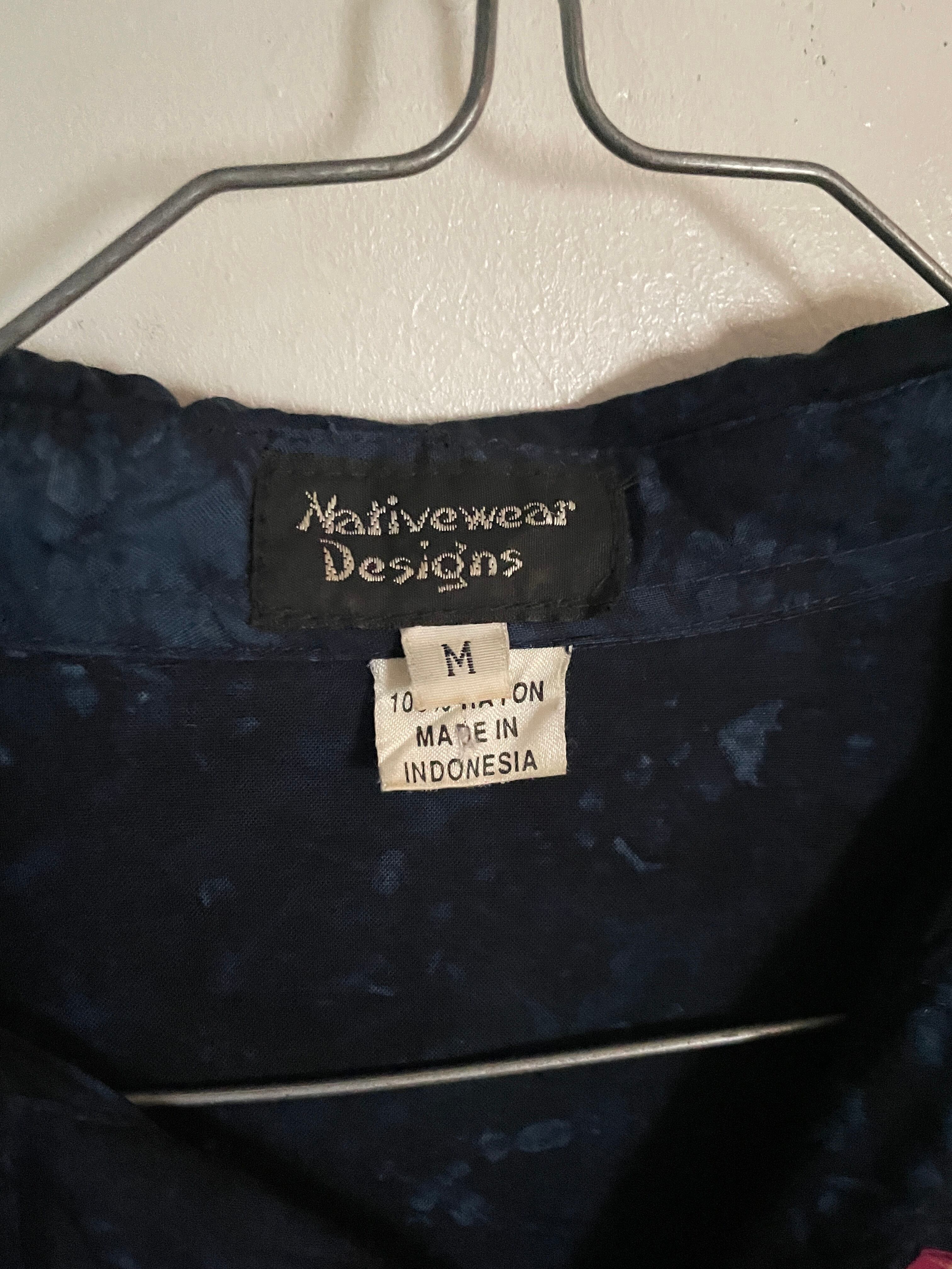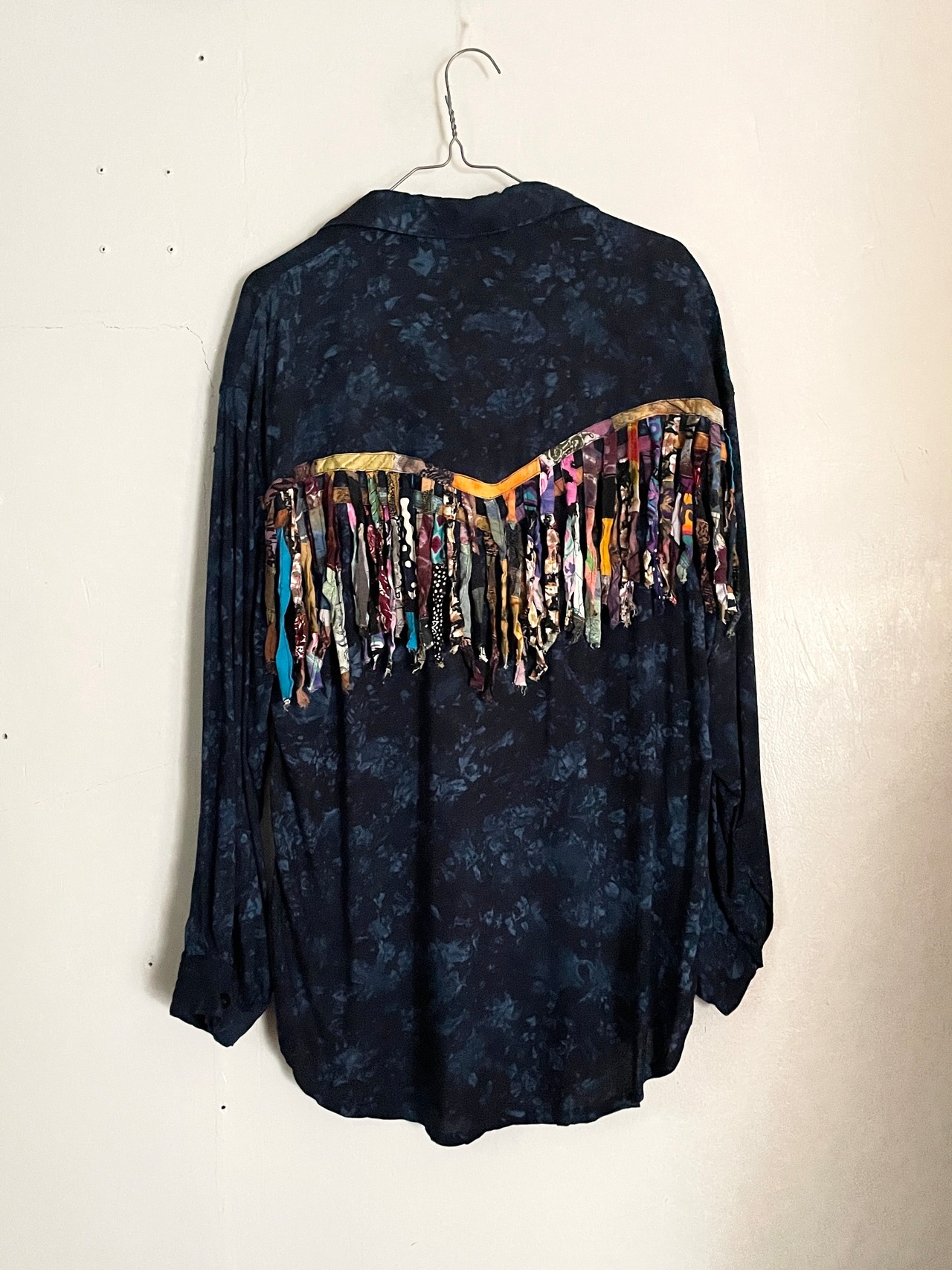 Old Blue Black Pattern Fringe Design Rayon L/S Shirt