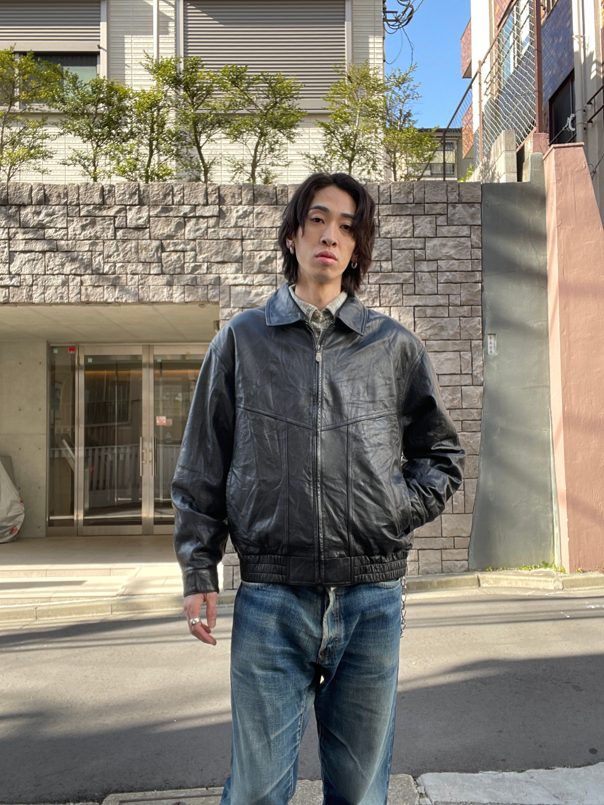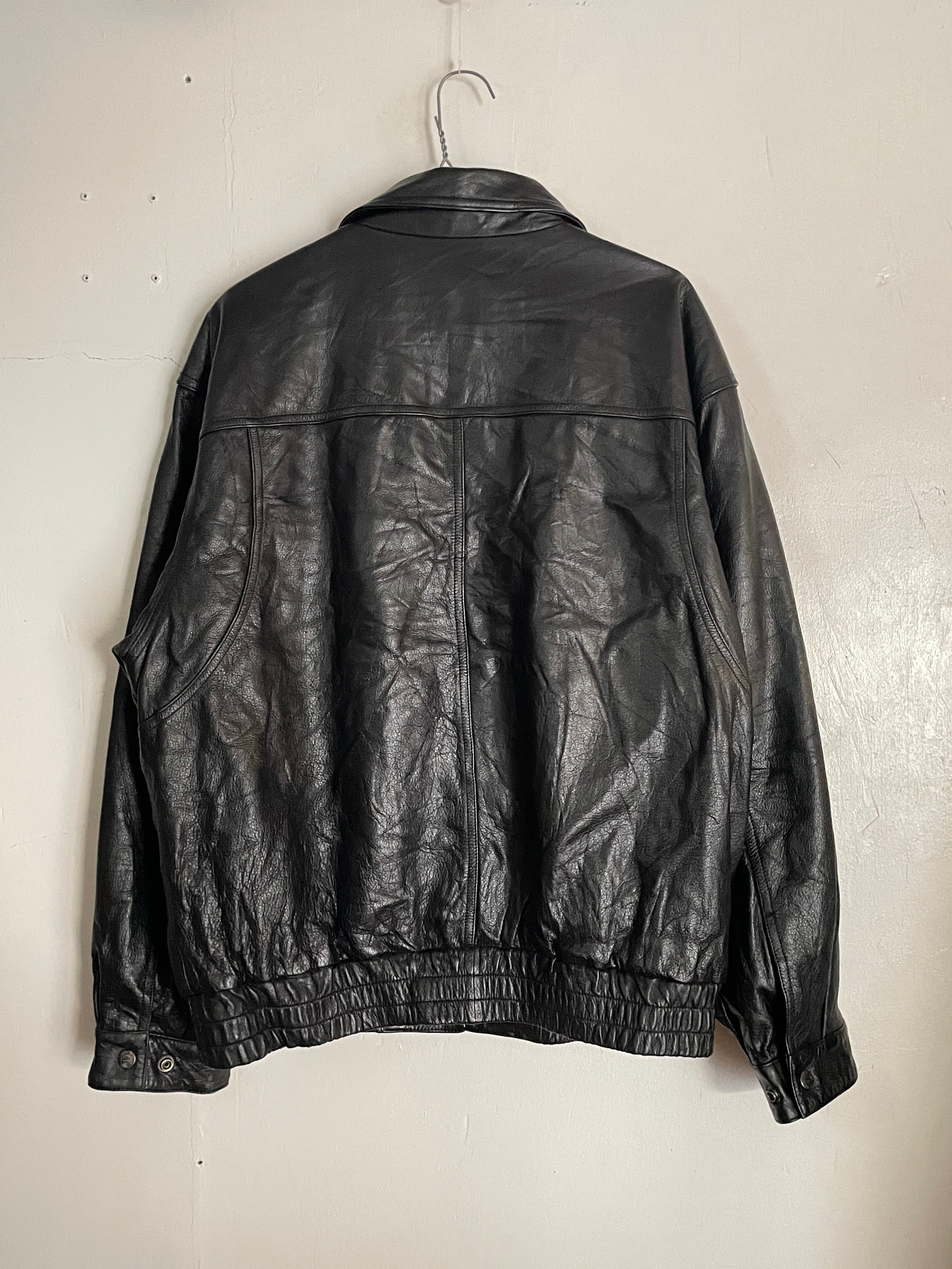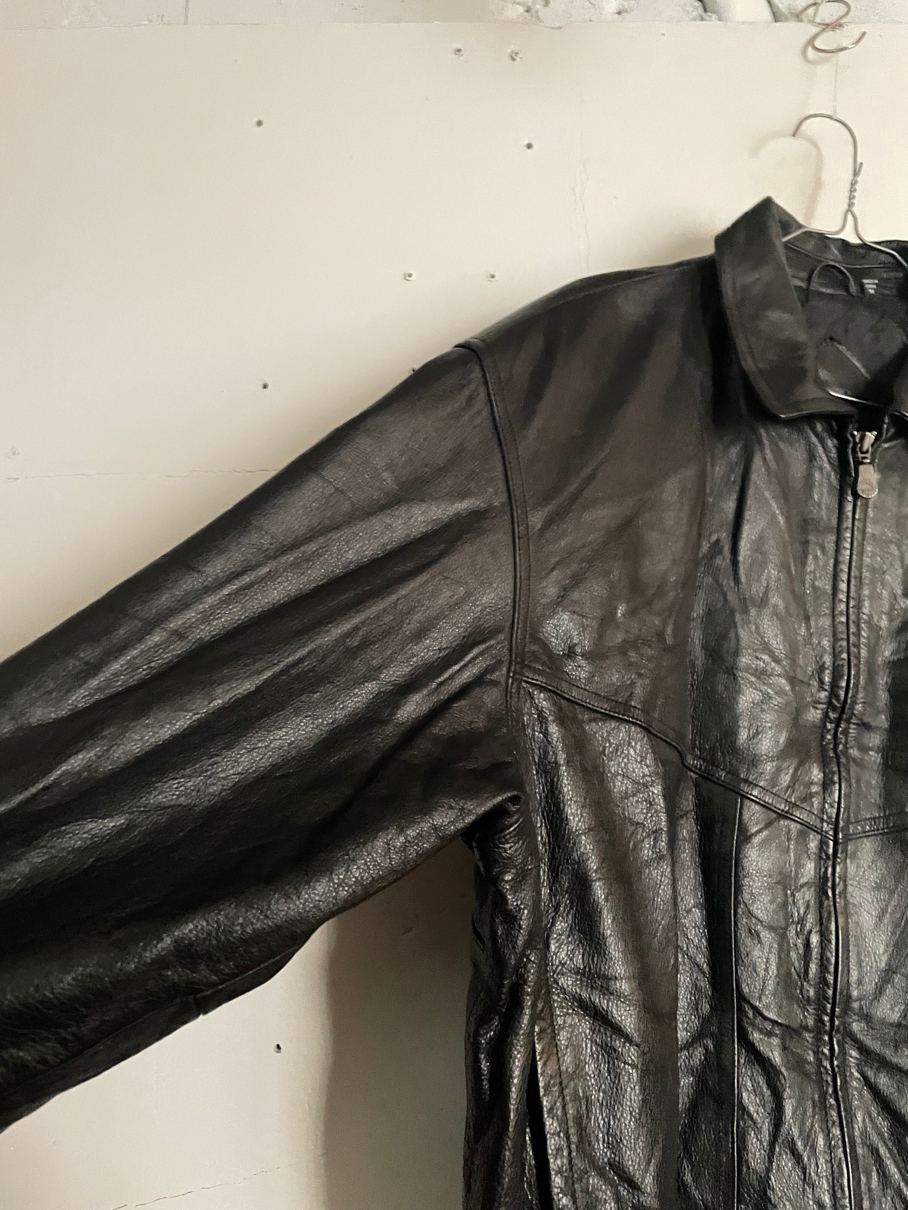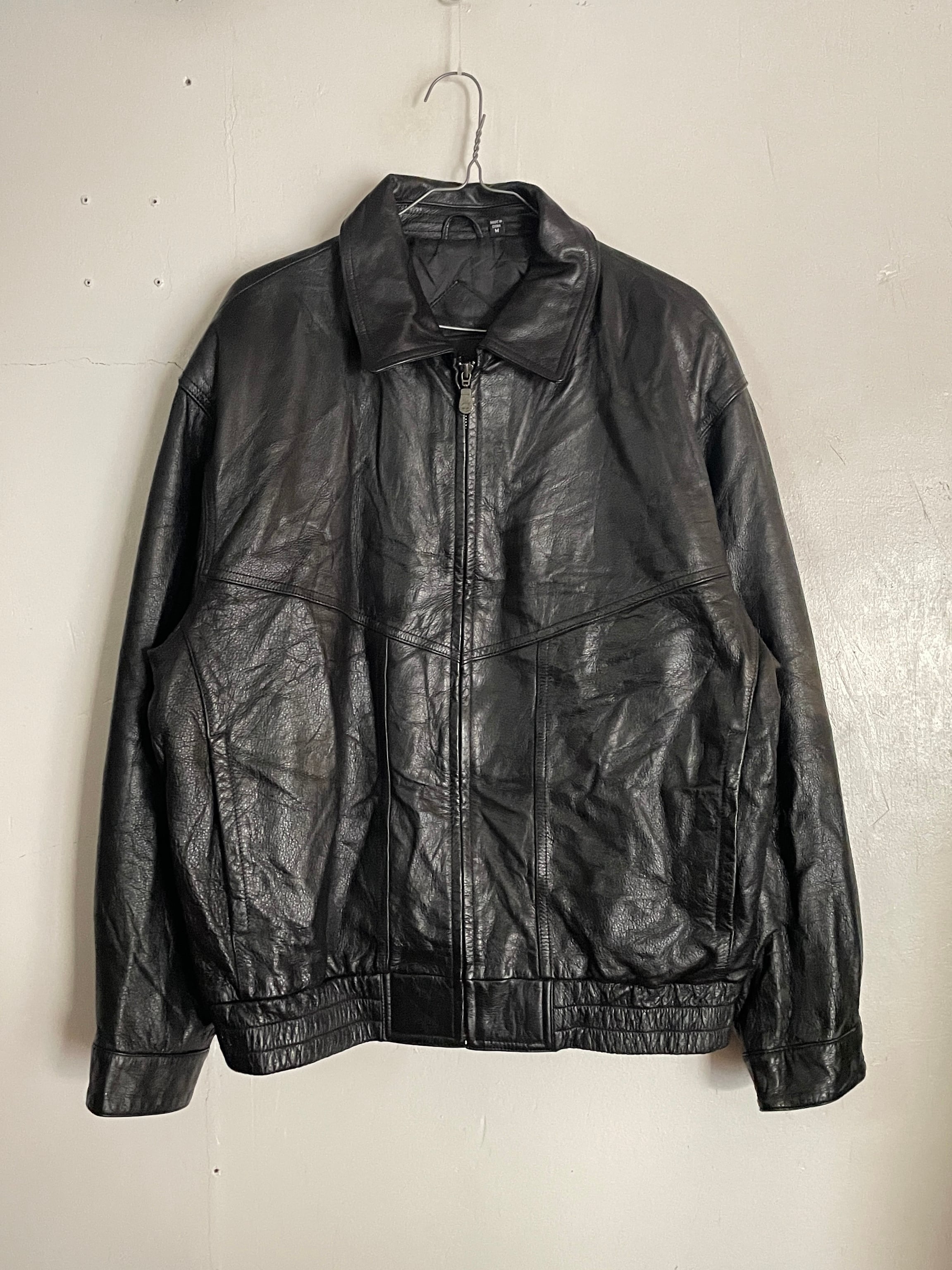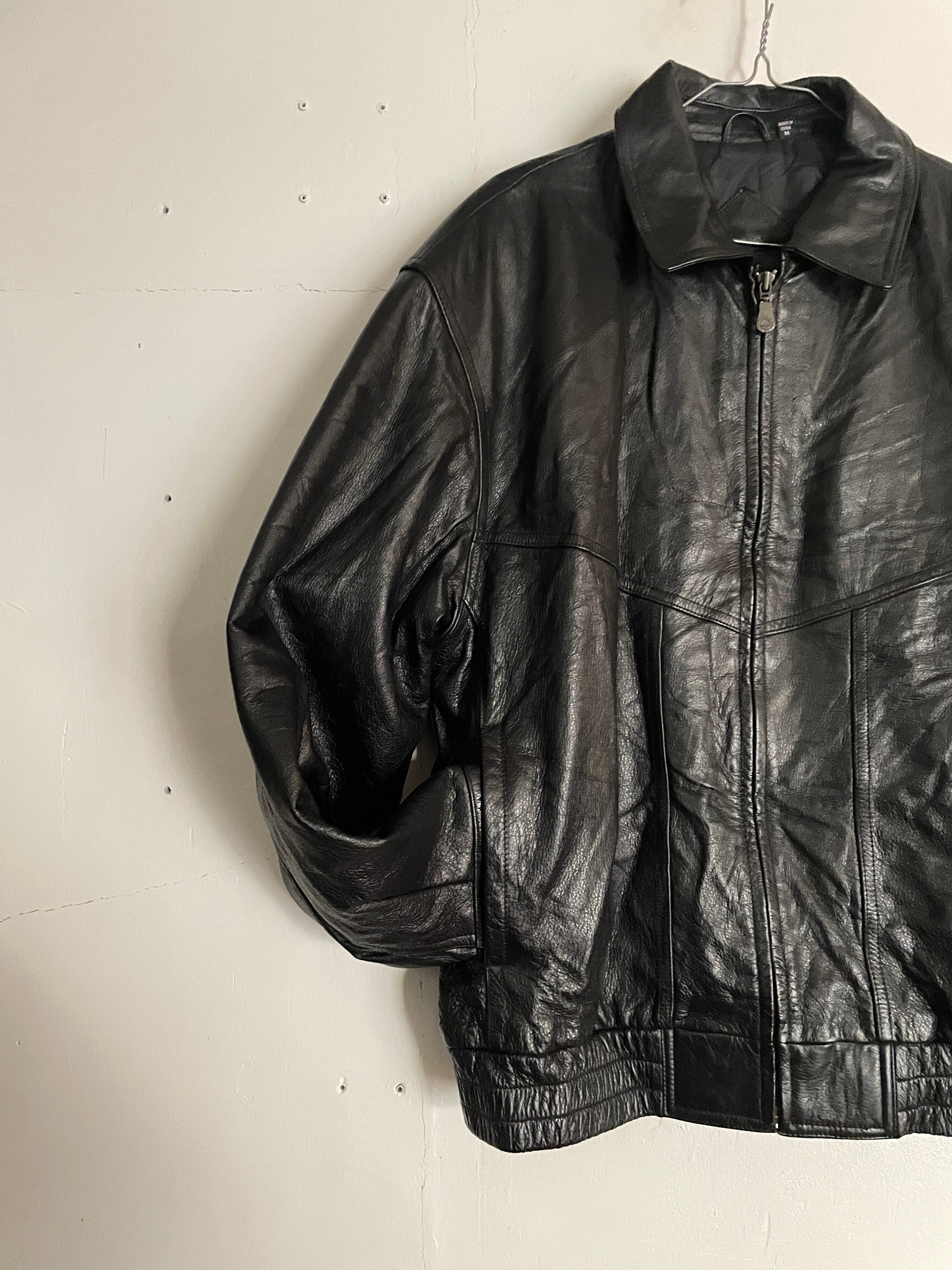 光沢感のあるブラックボディで、一番使いやすいA-2タイプのレザージャケット。もっちりとした上質なレザー素材。レザー特有の良い重量感もあります。ジップタイプなので着脱もしやすく、様々なファッションに取り入れやすレザージャケットかと思います。ゆったりとしたサイズ感なのでインナーにもしっかりと着込めます。今の時期一着は持っておきたいアイテムです。