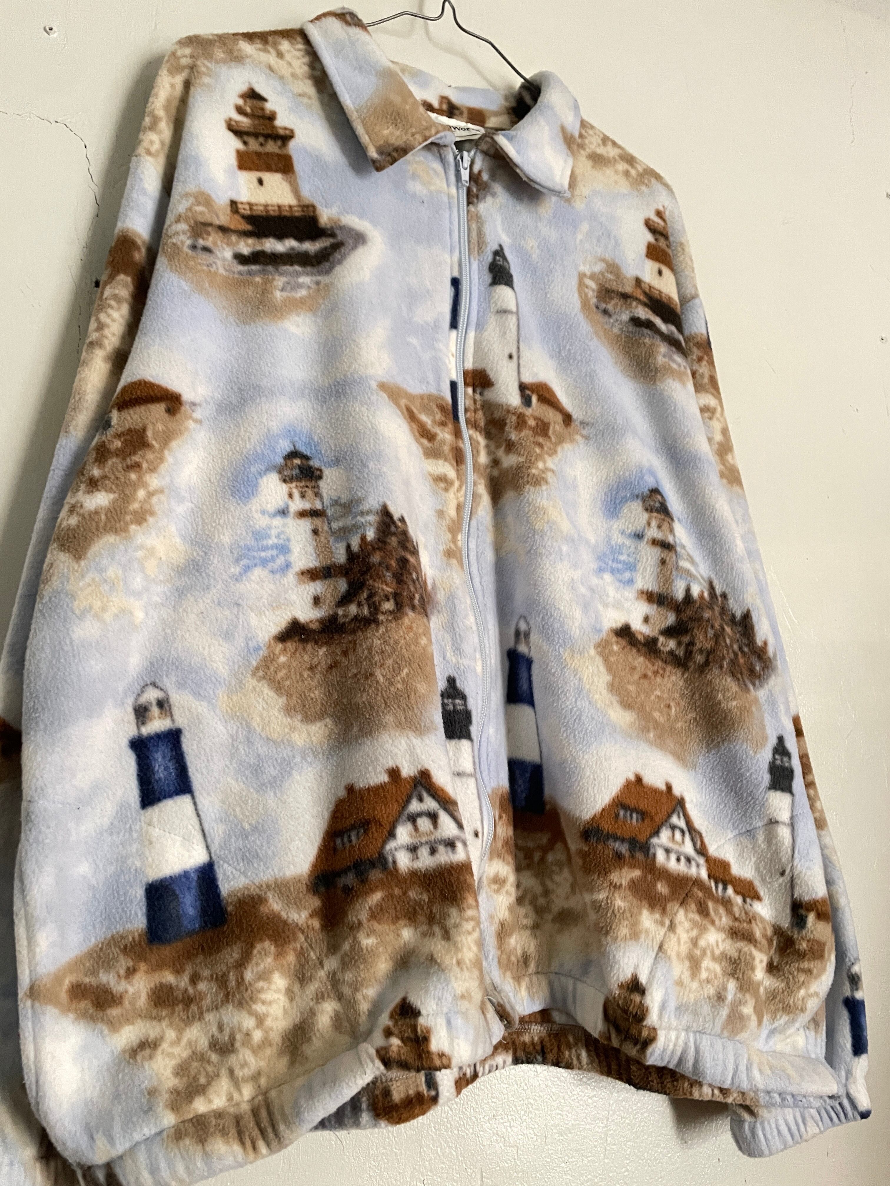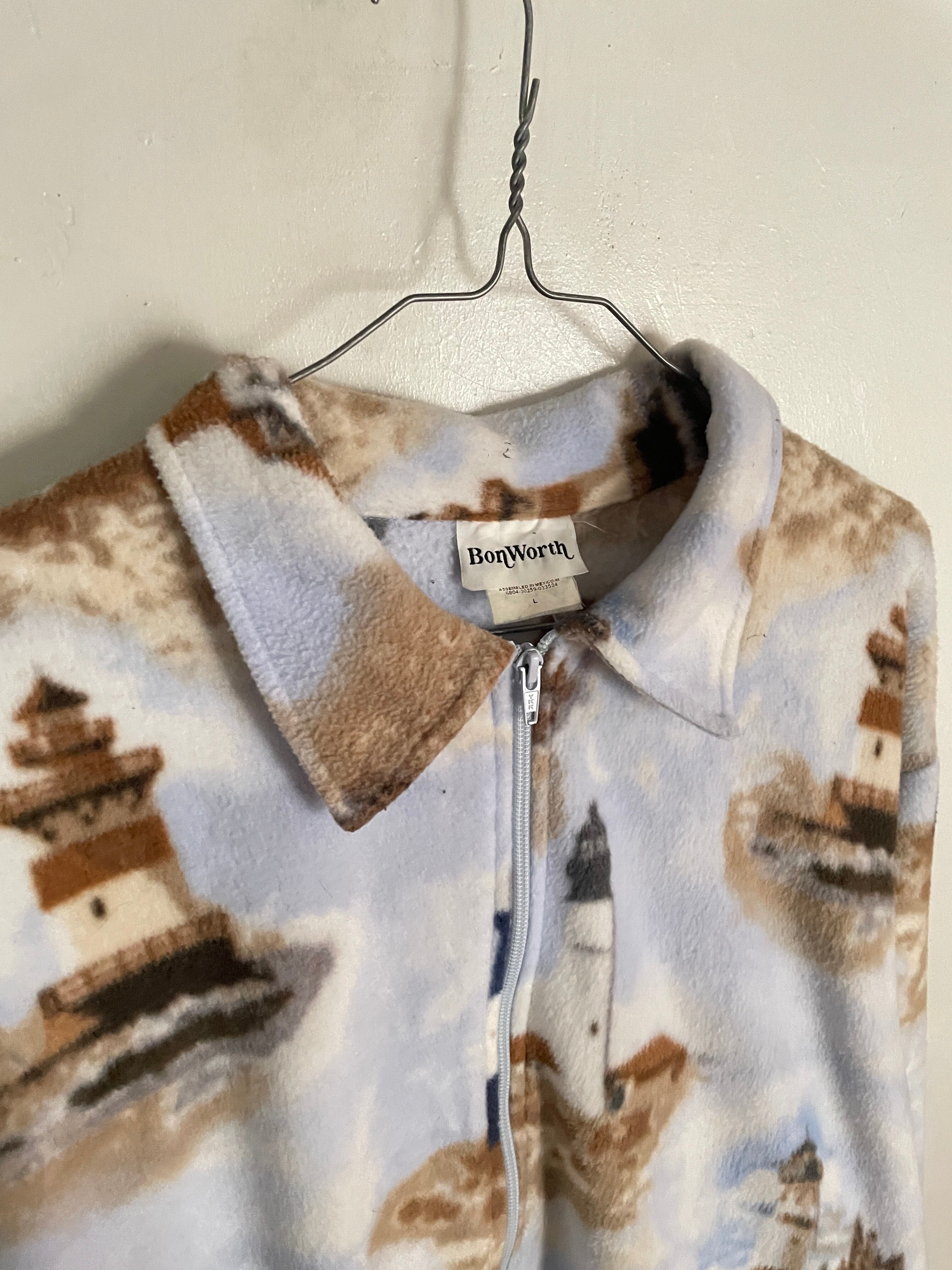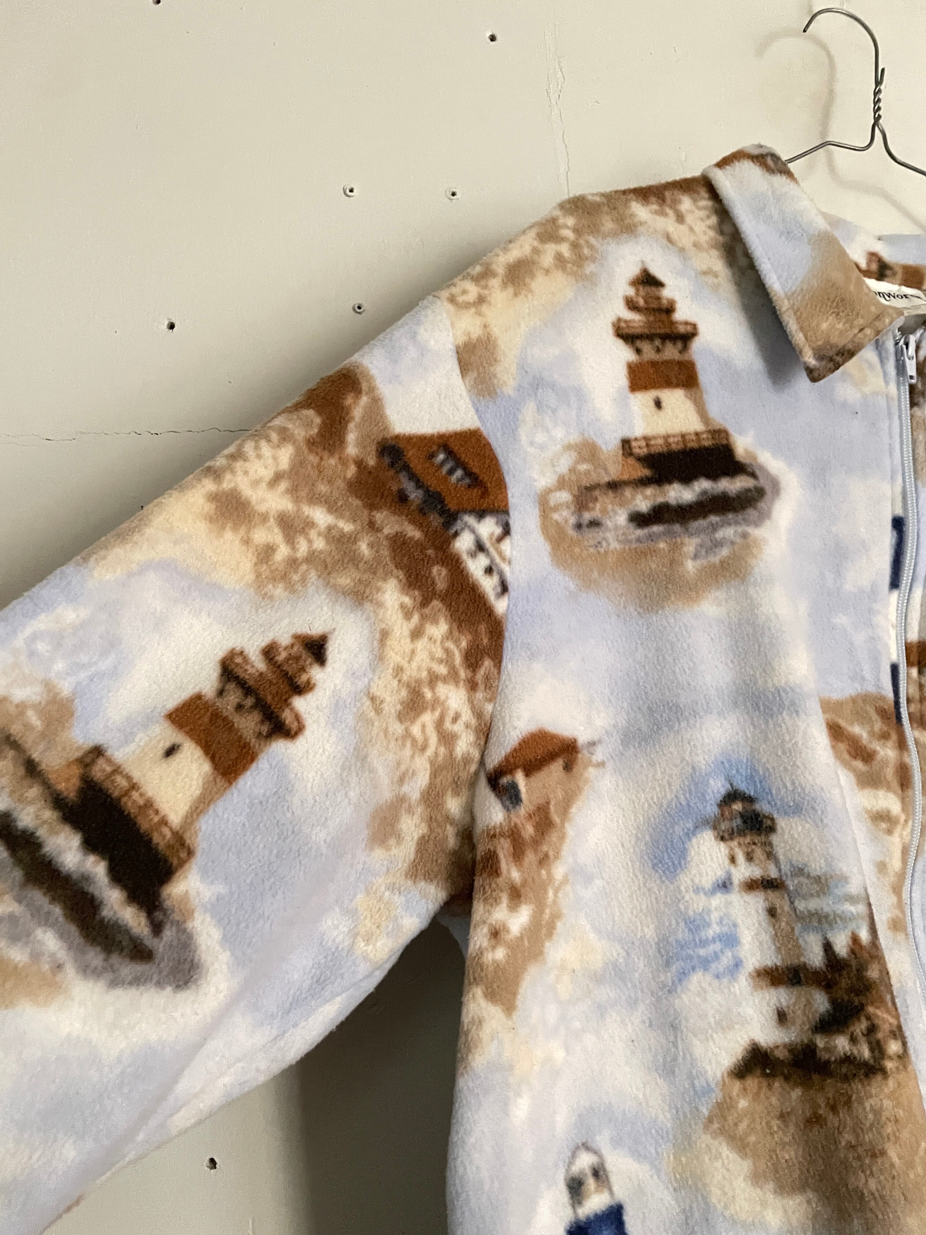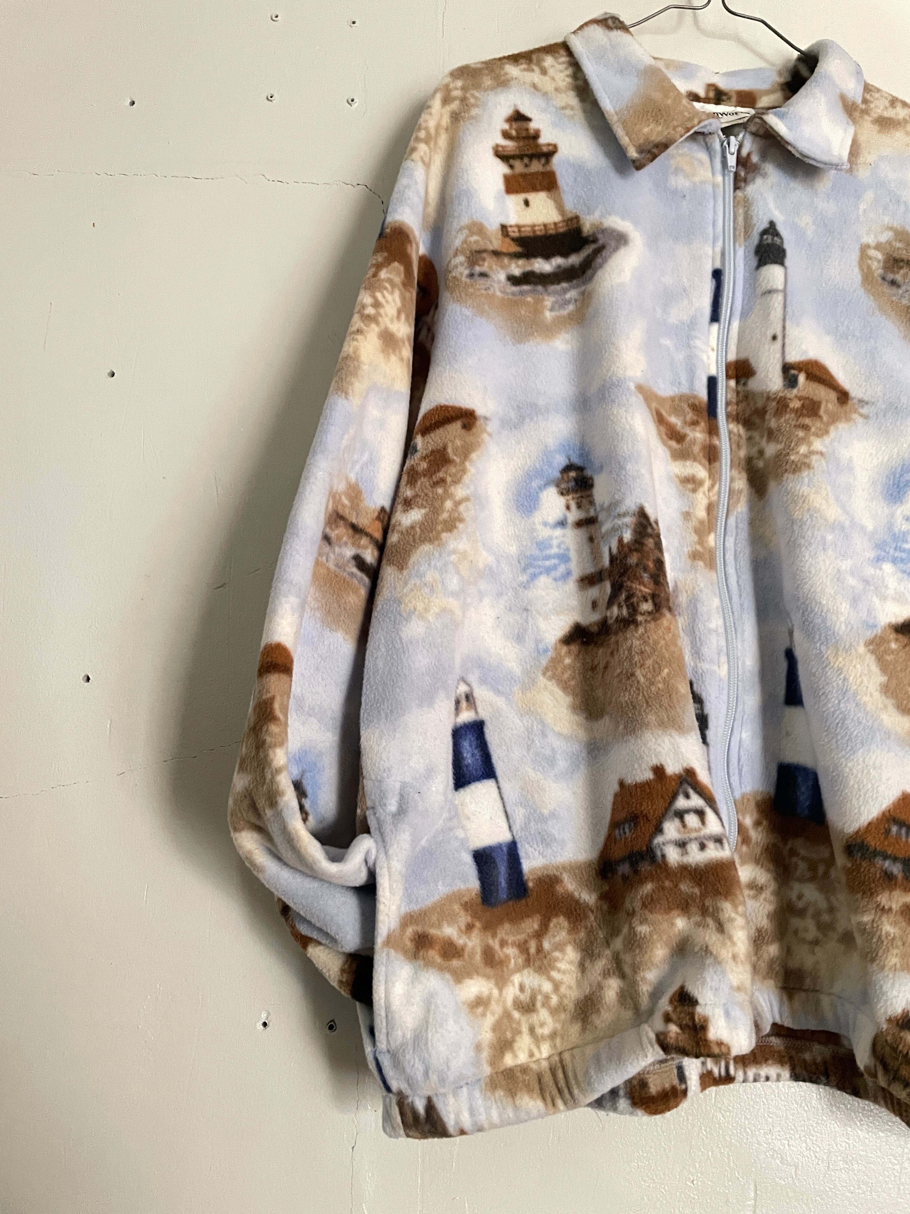 Old BonWorth Lighthouse Pattern Design Zip Fleece Jacket